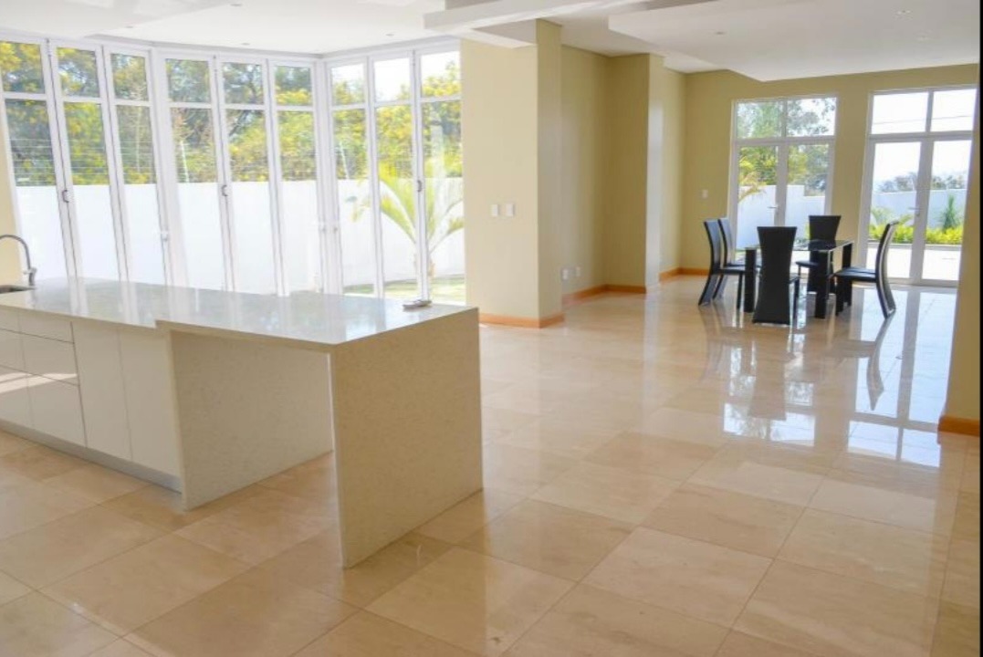 This lavish home of 1130m2 is situated on a 2100m2 stand atop the Waterkloof Heights Hills. With five bedrooms, five bathrooms and a guest toilet this exquisite home home will have the envy of the neighborhood.