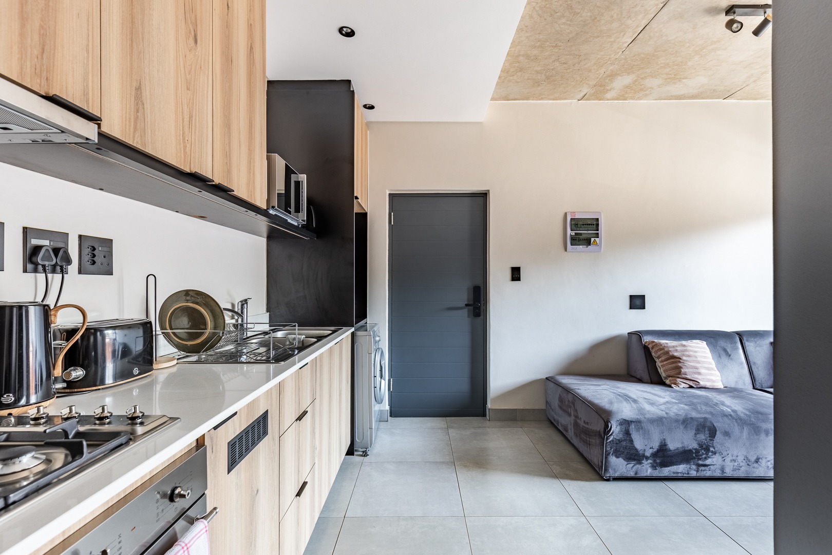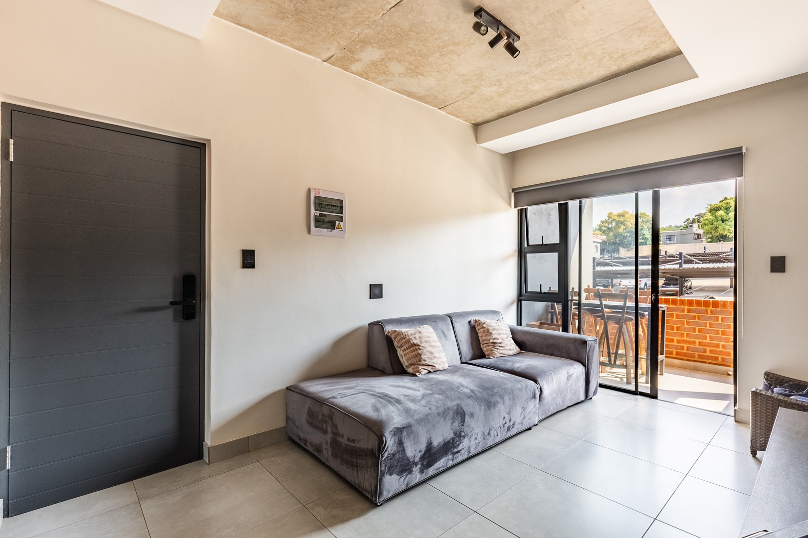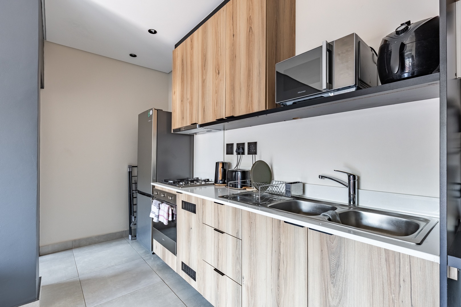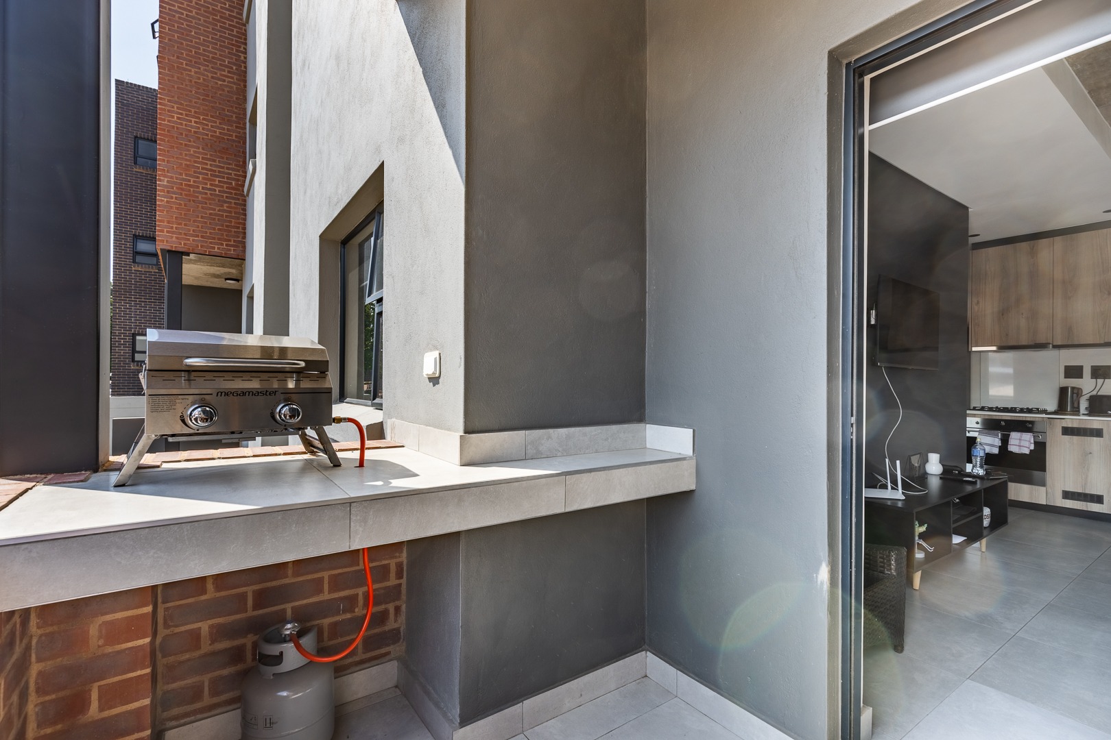 This modern one-bedroom apartment offers a comfortable and stylish living space, complete with an en-suite bathroom. The open-plan living area seamlessly connects to a private balcony, perfect for enjoying outdoor moments. The apartment includes a built-in gas braai for added convenience, ideal for entertaining. The kitchen is designed with contemporary finishes and features ample cupboard space and space for two appliances. Additional amenities include one covered parking space, as well as an extra storage room. The unit is designed with energy efficiency in mind, featuring full backup electricity to ensure uninterrupted power supply. Additionally, it boasts water-efficient systems and includes a backup water supply to guarantee reliability even during shortages.