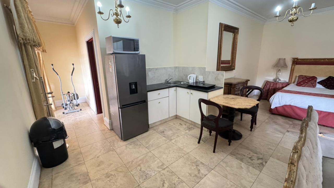 This inviting 62 sqm furnished studio apartment in Waterkloof Ridge, Pretoria, offers a comfortable and distinctive living experience. The open-plan layout seamlessly integrates a spacious living area, a dedicated sleeping space, and a functional kitchenette. Adorned with classic, ornate furnishings and tiled flooring, the unit provides a unique aesthetic. The kitchenette includes a fridge, microwave, and portable stovetop, complemented by air conditioning for comfort. The apartment features one bathroom with a classic clawfoot bathtub and a separate shower. A private balcony or patio offers scenic views and an elegant outdoor space. This property is ideal for a single professional or couple seeking a convenient, lock-up-and-go metropolitan lifestyle. Enhanced security includes 24-hour security, an access gate, and perimeter fencing. Fibre connectivity is available. Enjoy the tranquil surroundings and scenic views from this prime Pretoria location. Key Features: * 1 Bedroom, 1 Bathroom * 62 sqm Furnished Studio * Open-plan Layout * Equipped Kitchenette * Air Conditioning * Private Balcony/Patio * 1 Parking Bay * 24-Hour Security * Fibre Ready * Scenic Views