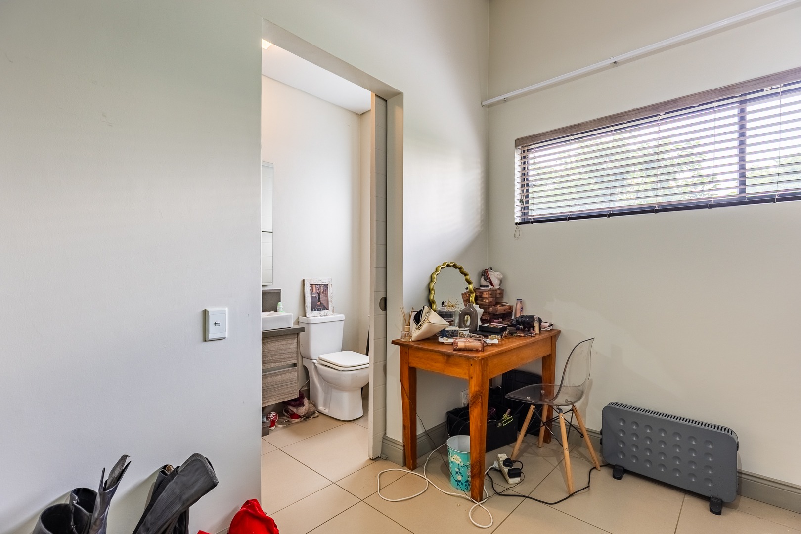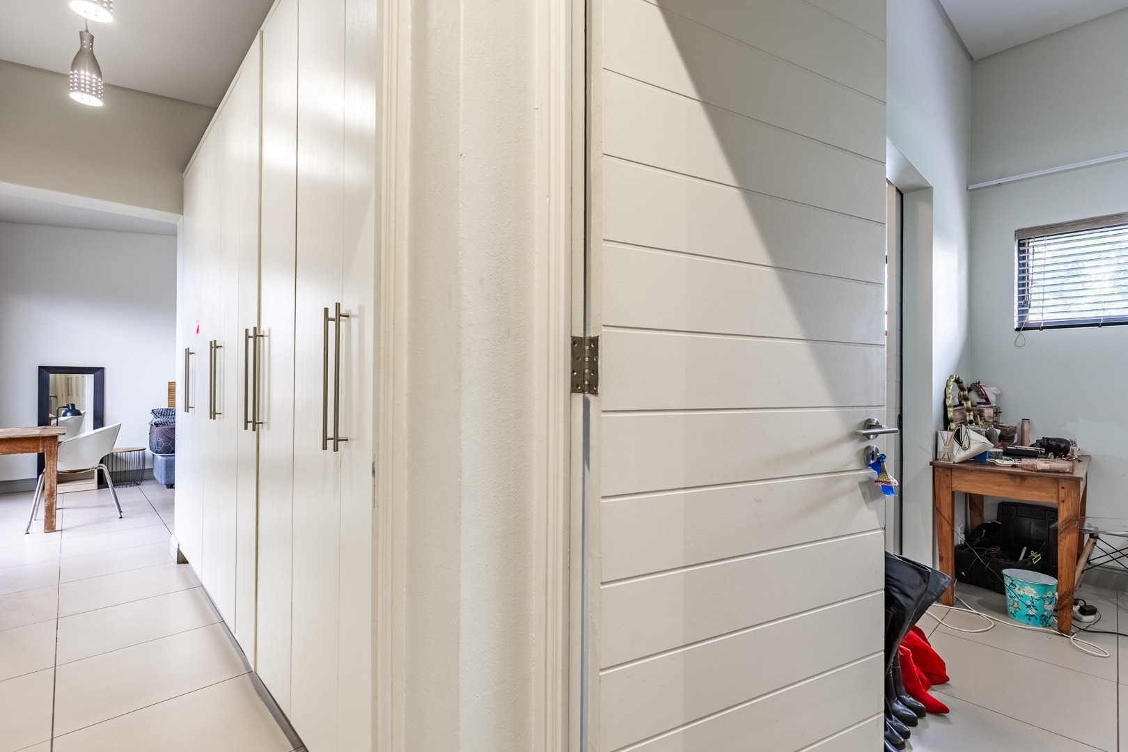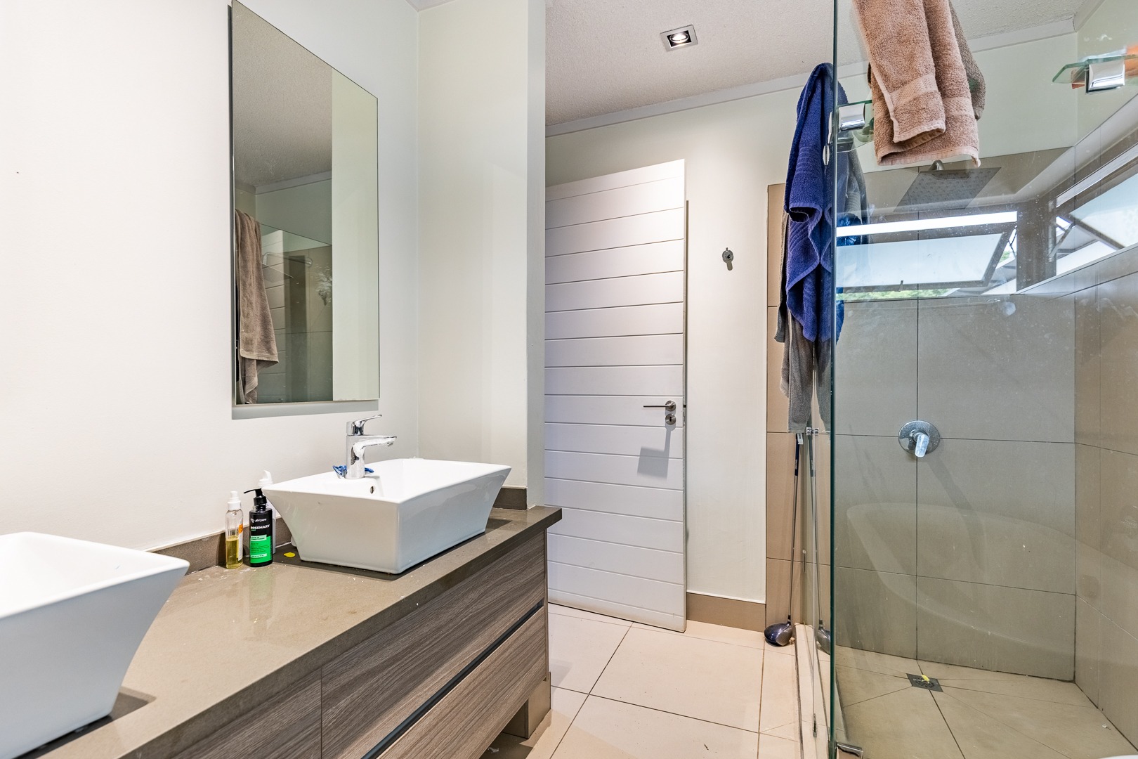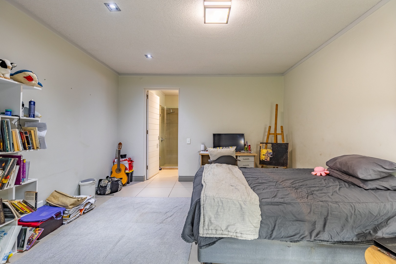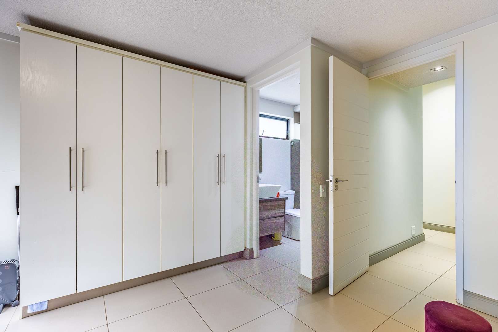 Step into a generous open-plan living and dining area, seamlessly connected to the outdoors by large glass sliding doors. Every room opens up to a meticulously landscaped garden and expansive patio—perfect for entertaining—with a built-in gas braai for effortless outdoor dining. The sleek, contemporary kitchen is equipped with soft-close cabinetry, an electric stove and oven, and a separate scullery for added convenience.Downstairs, you’ll find a spacious en-suite bedroom that can easily serve as a second master suite, complete with built-in cupboards and a luxurious full bathroom featuring double basins. A guest toilet is also located on the ground floor. Upstairs, three more well-sized bedrooms await, each with its own en-suite bathroom. The primary master suite offers abundant cupboard space and a full en-suite bathroom, ideal for relaxing at the end of the day.