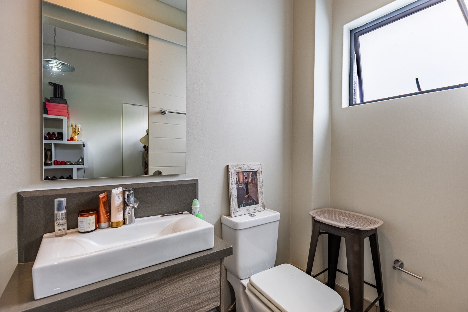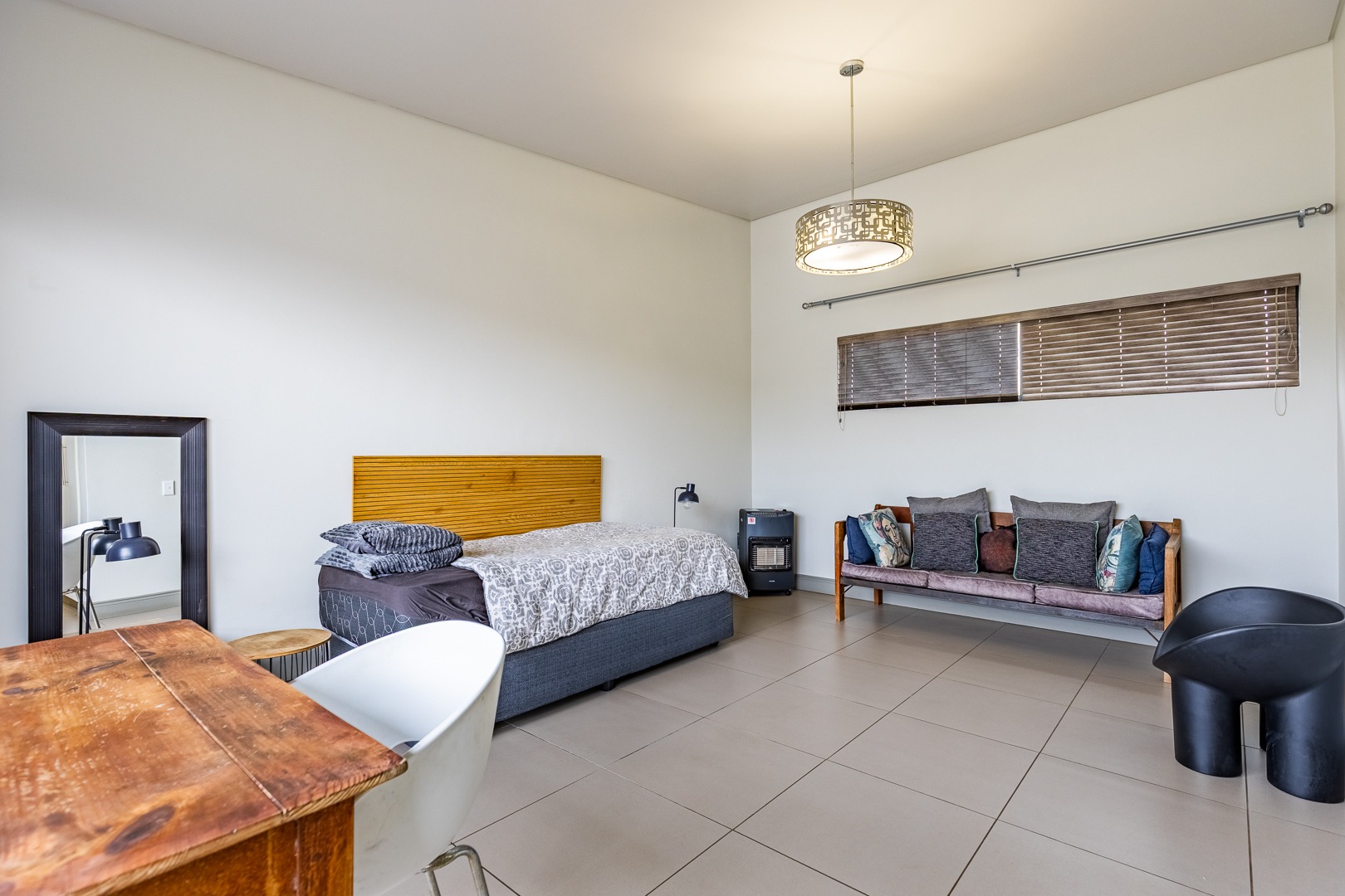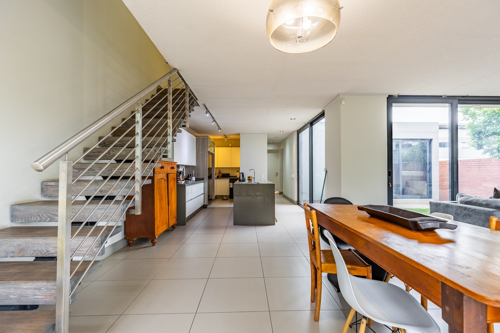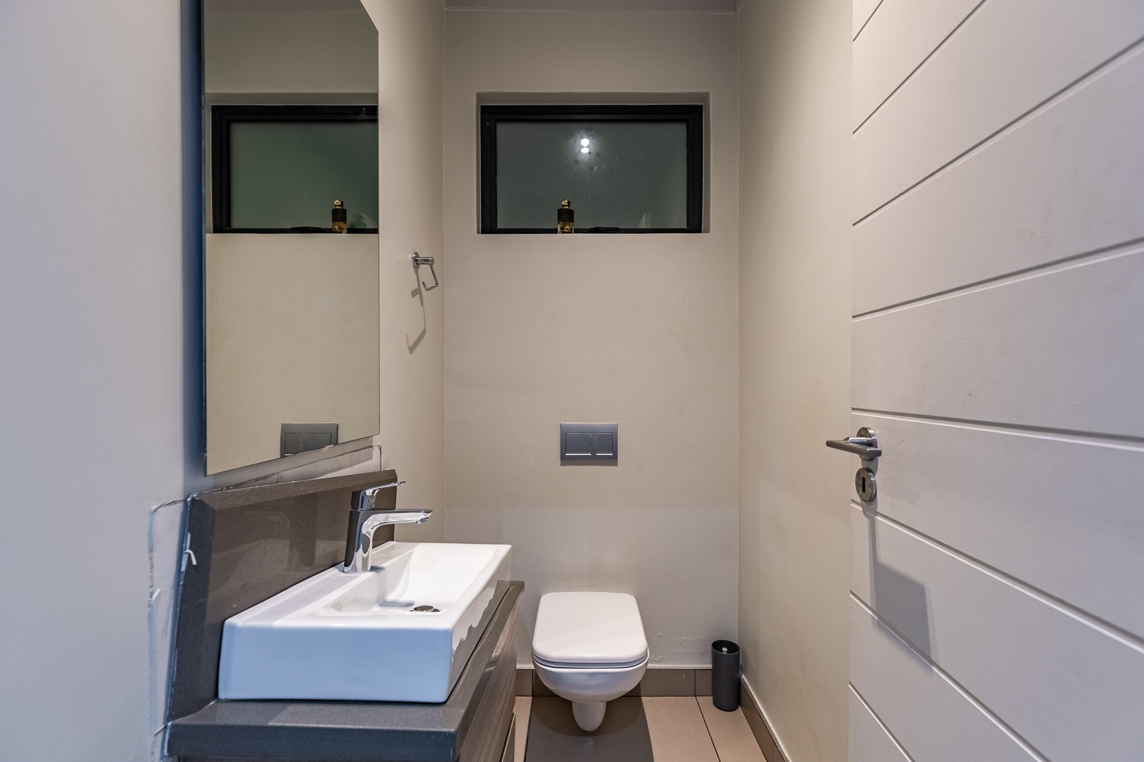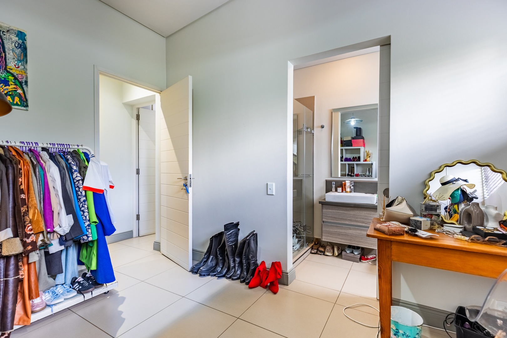 Step into a generous open-plan living and dining area, seamlessly connected to the outdoors by large glass sliding doors. Every room opens up to a meticulously landscaped garden and expansive patio—perfect for entertaining—with a built-in gas braai for effortless outdoor dining. The sleek, contemporary kitchen is equipped with soft-close cabinetry, an electric stove and oven, and a separate scullery for added convenience.Downstairs, you’ll find a spacious en-suite bedroom that can easily serve as a second master suite, complete with built-in cupboards and a luxurious full bathroom featuring double basins. A guest toilet is also located on the ground floor. Upstairs, three more well-sized bedrooms await, each with its own en-suite bathroom. The primary master suite offers abundant cupboard space and a full en-suite bathroom, ideal for relaxing at the end of the day.