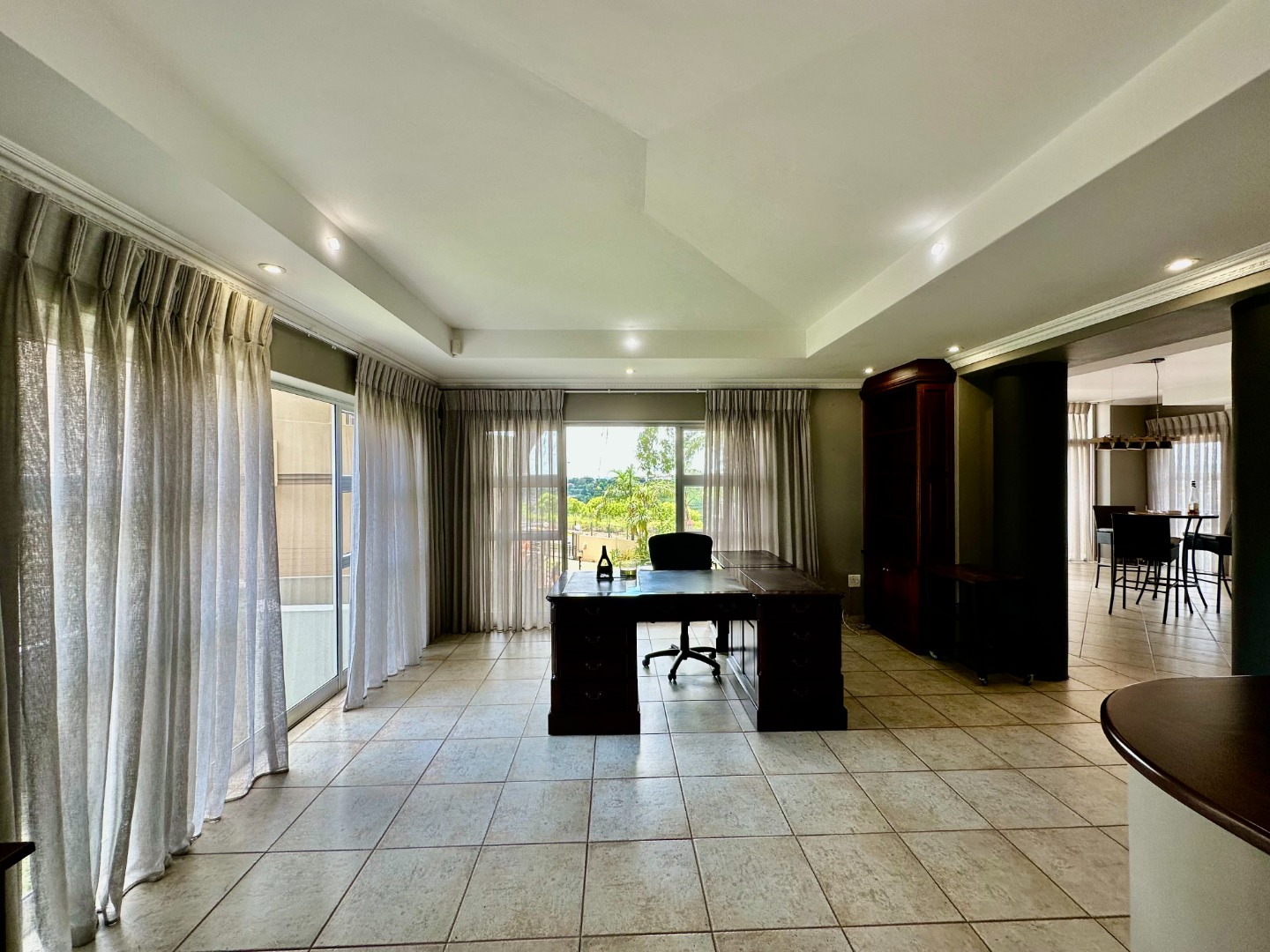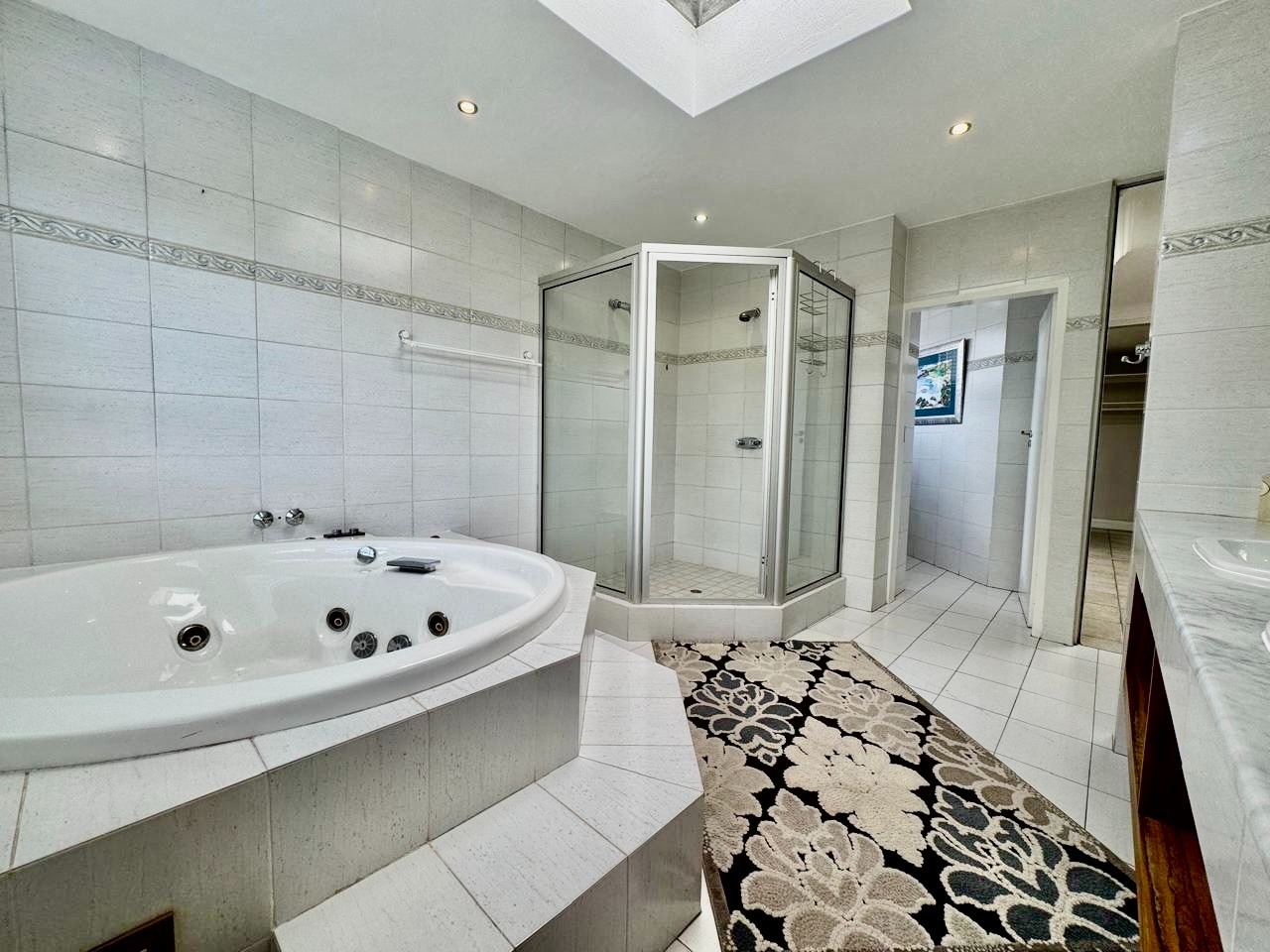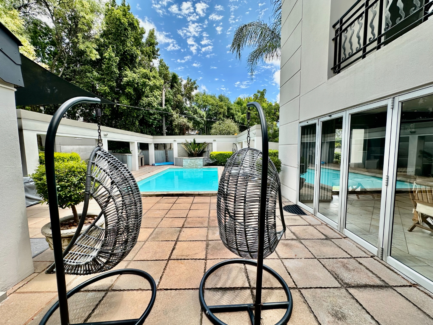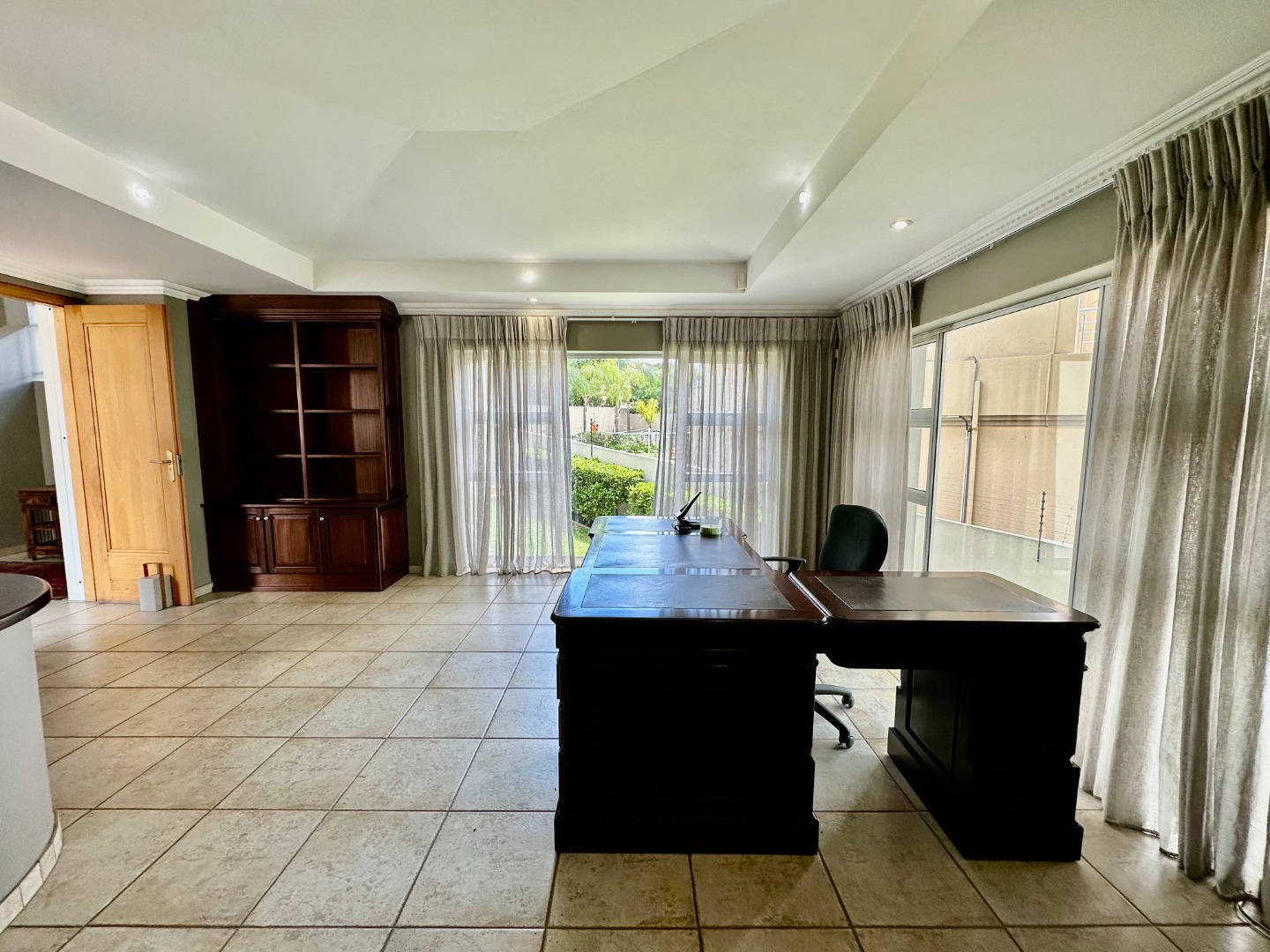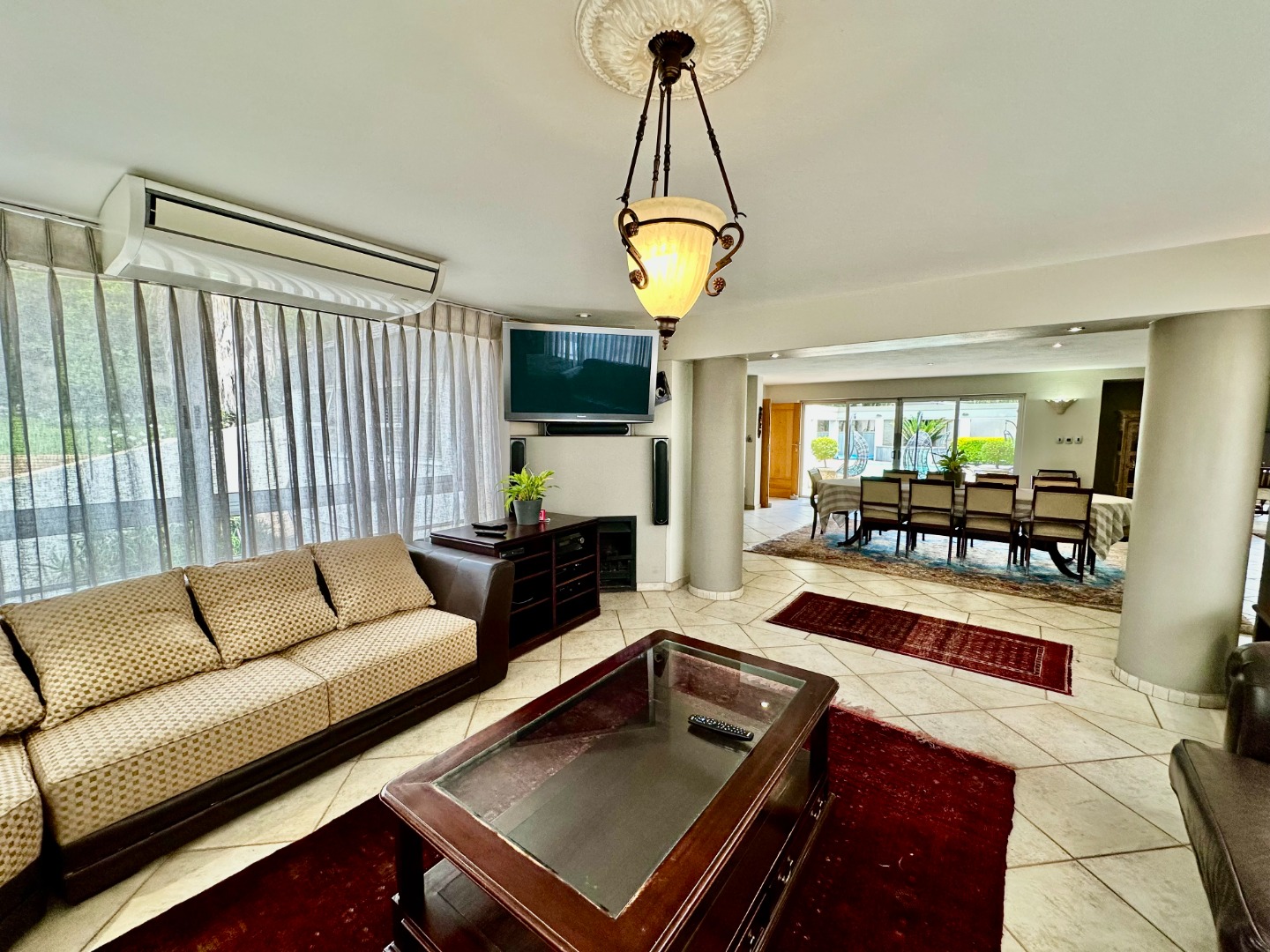 This sophisticated five-bedroom residence offers a premier living experience within a secure, gated community featuring 24-hour security, a comprehensive alarm system, and CCTV surveillance. Perfectly suited for a large family or those who value space and independence, the home is offered fully furnished and includes an additional flatlet and staff quarters.