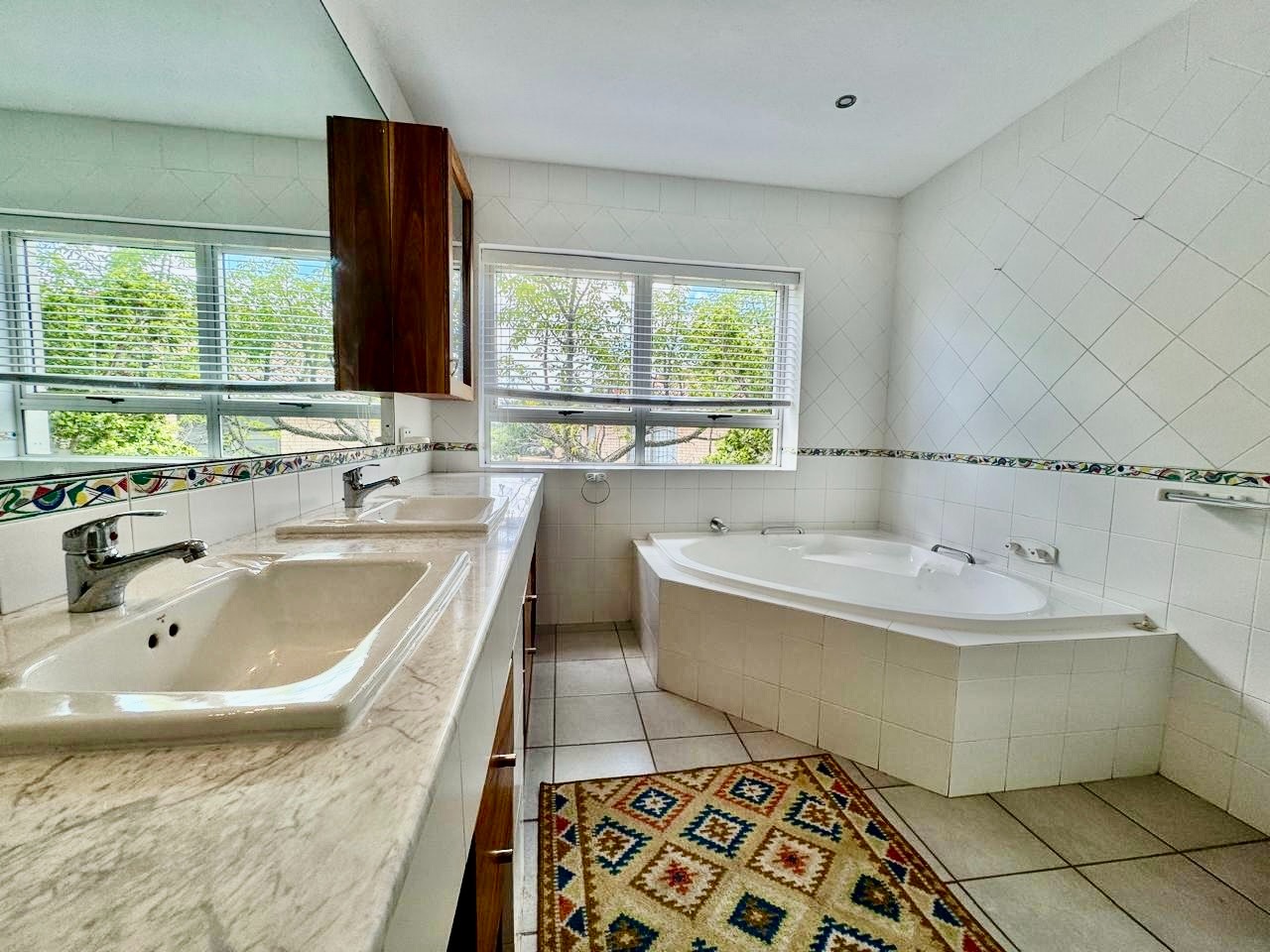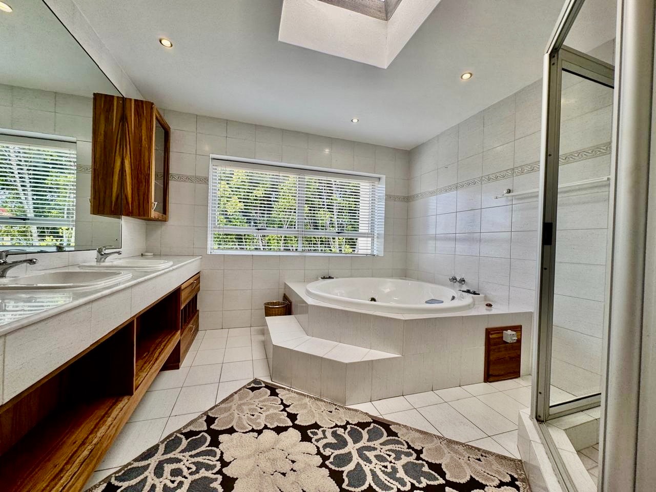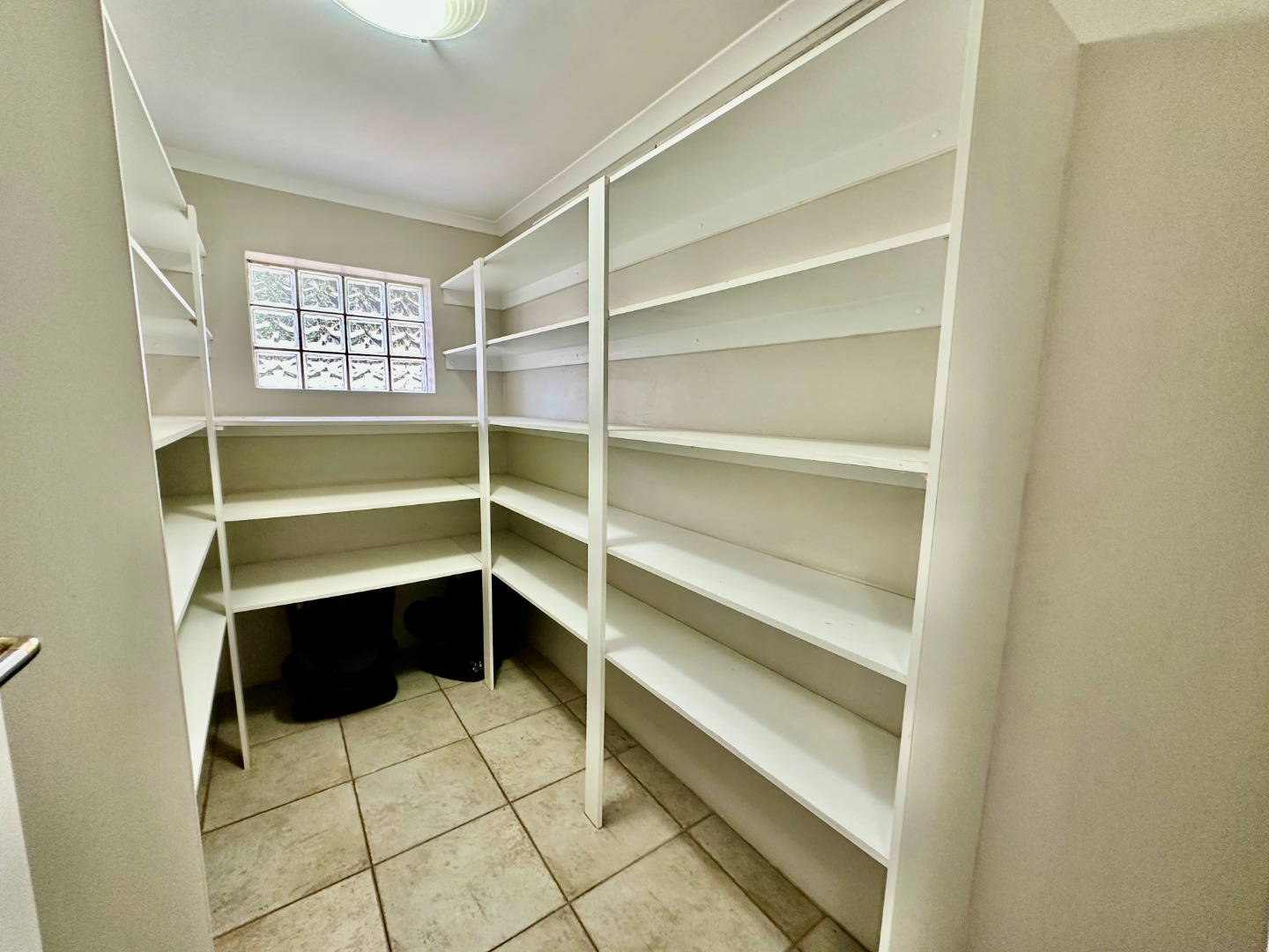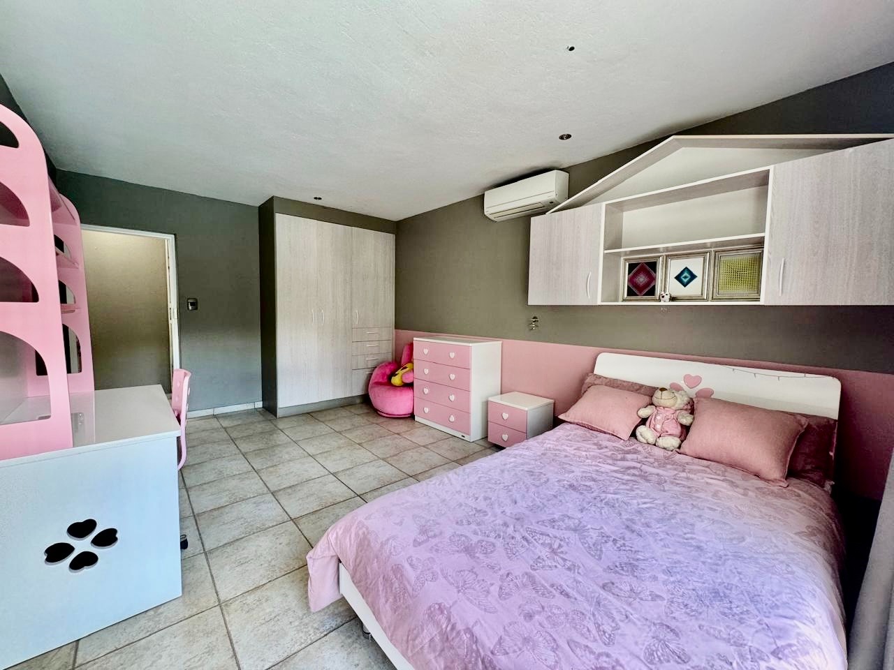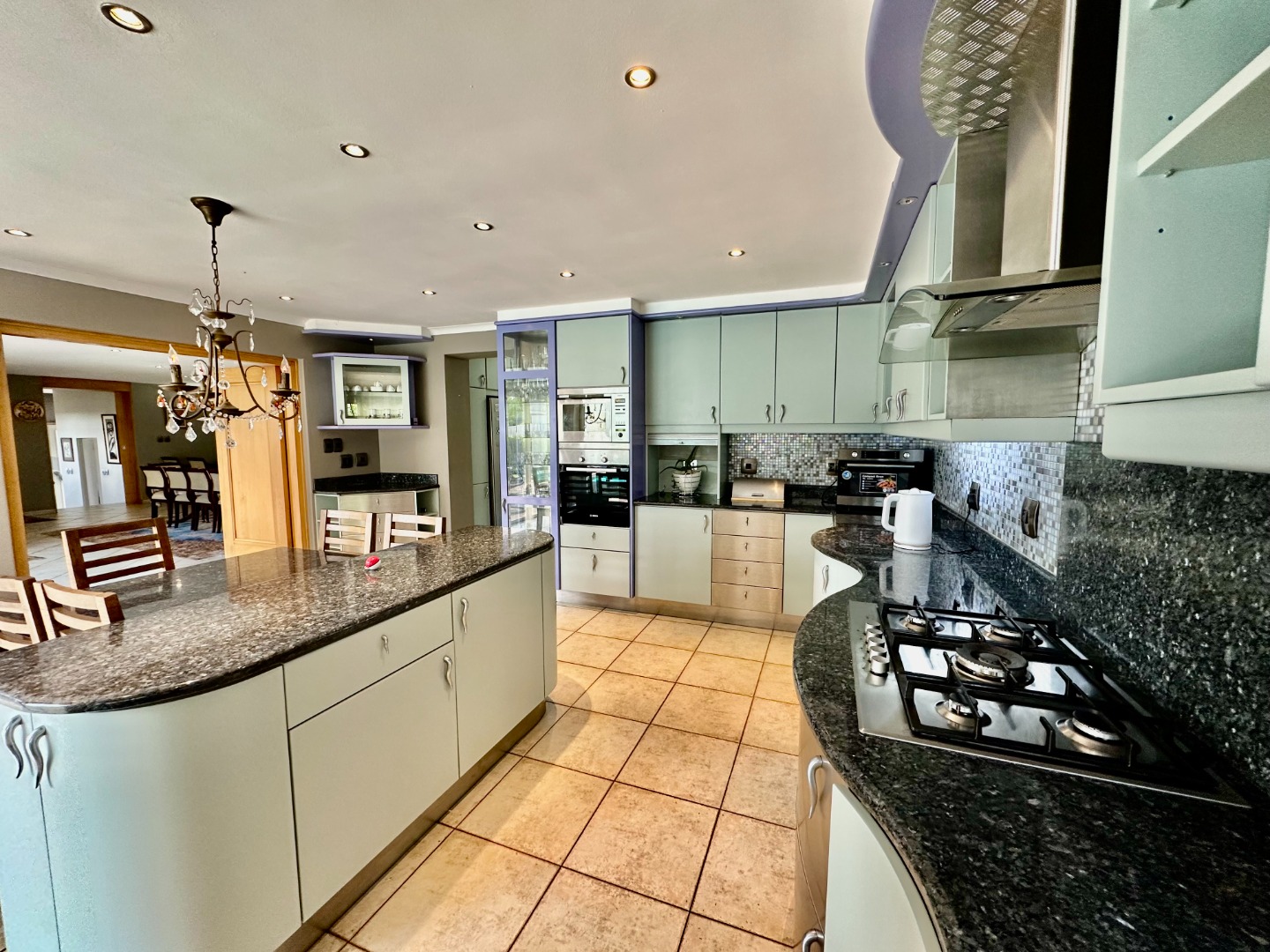 A standout feature of this property is its advanced energy and water infrastructure. The home is fibre-ready and boasts a robust sustainable energy system comprising thirty solar panels and battery inverters to ensure an uninterrupted power supply. The exterior grounds are supported by a borehole, water tanks, and an automated irrigation system, ensuring the garden remains lush throughout the year.