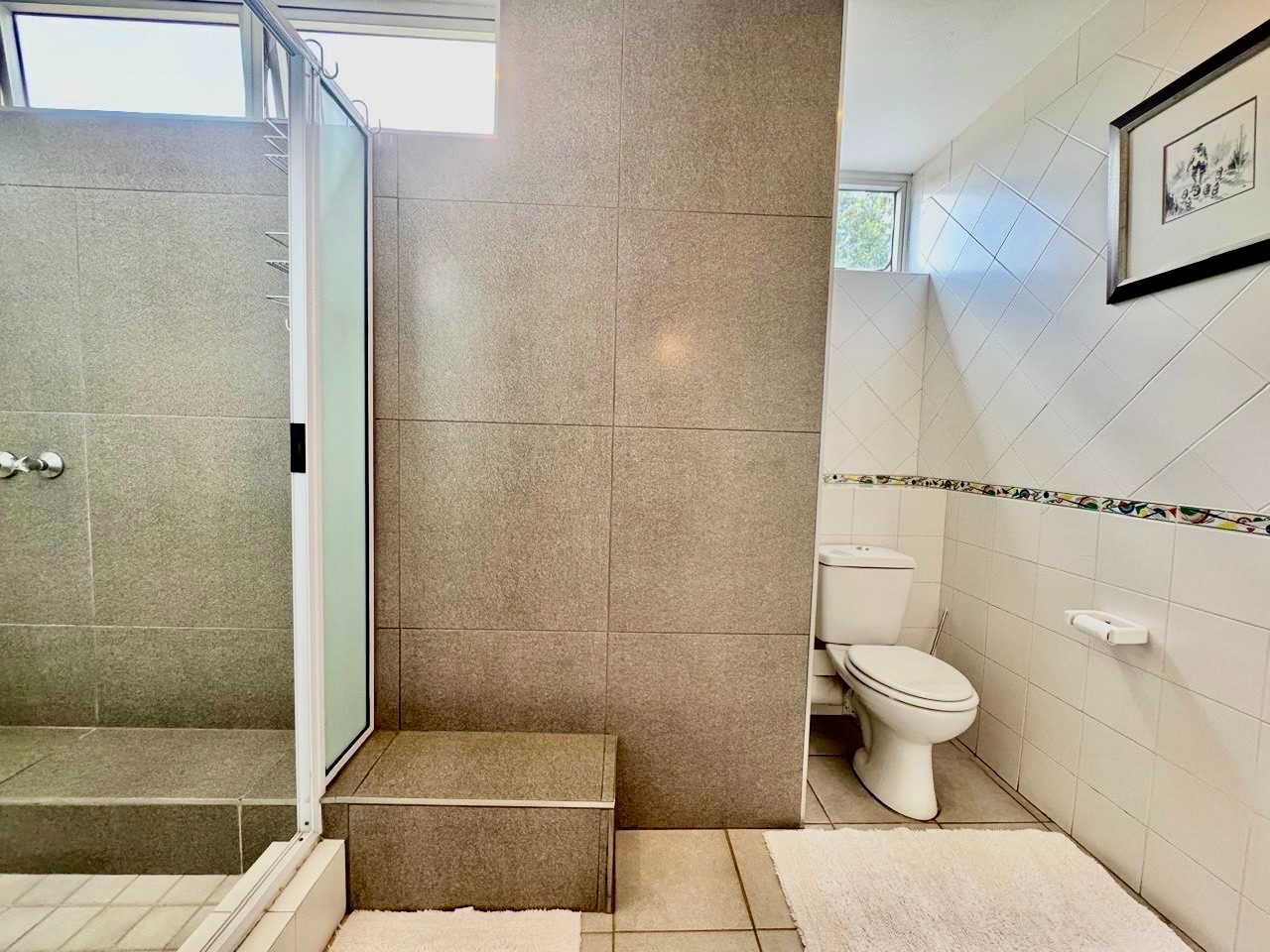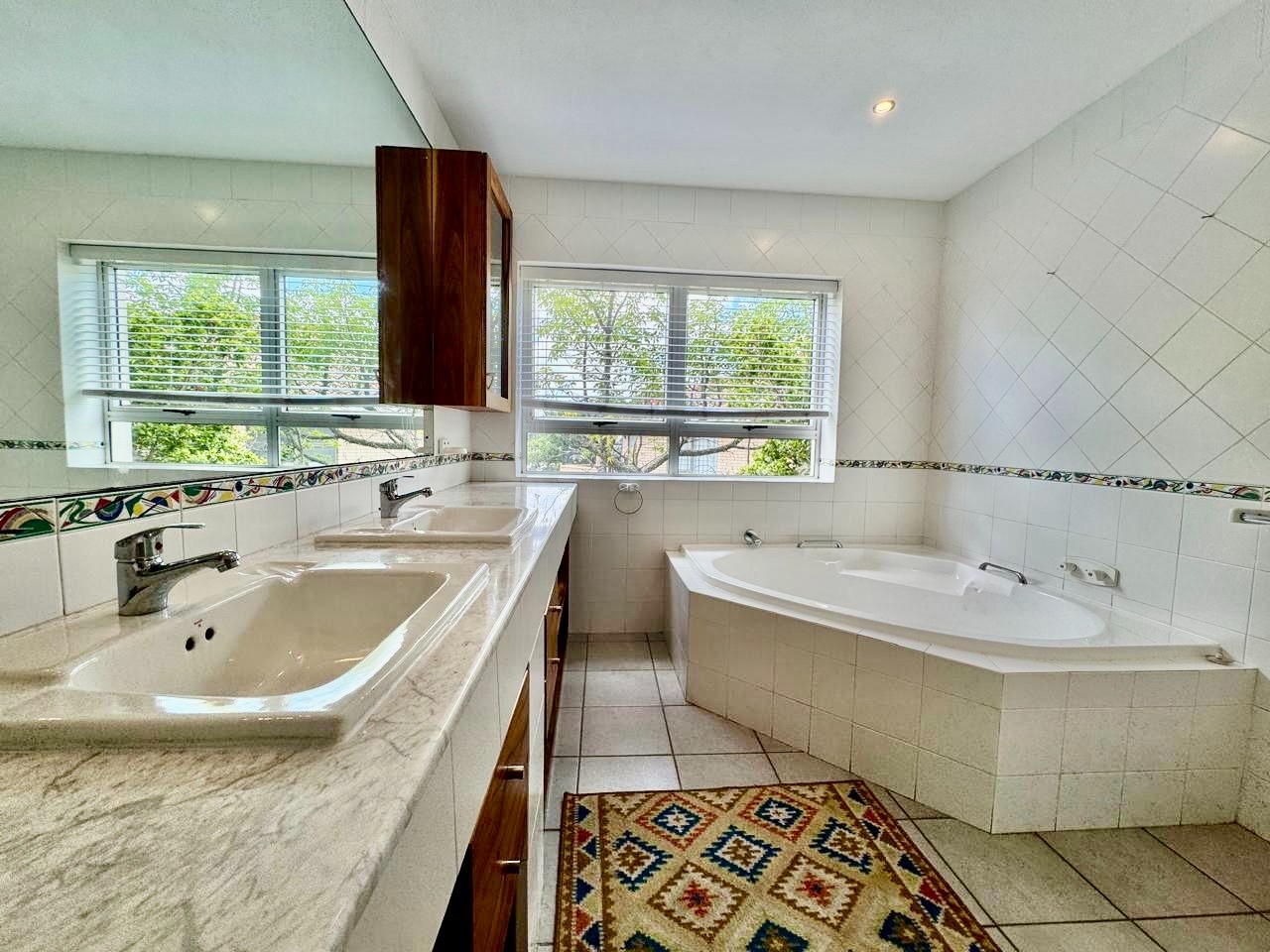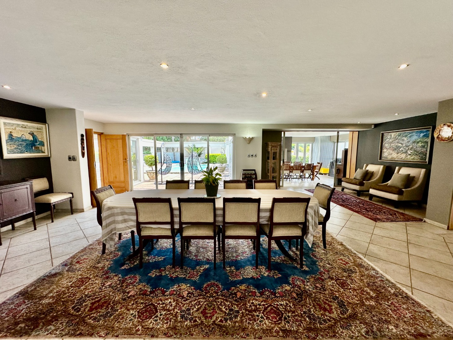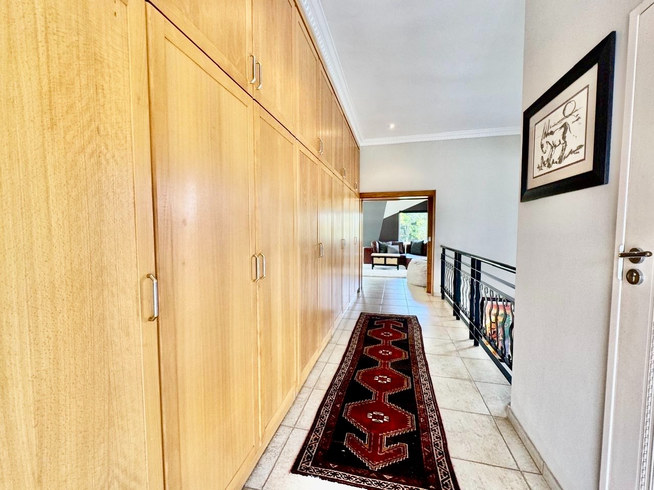 A standout feature of this property is its advanced energy and water infrastructure. The home is fibre-ready and boasts a robust sustainable energy system comprising thirty solar panels and battery inverters to ensure an uninterrupted power supply. The exterior grounds are supported by a borehole, water tanks, and an automated irrigation system, ensuring the garden remains lush throughout the year.