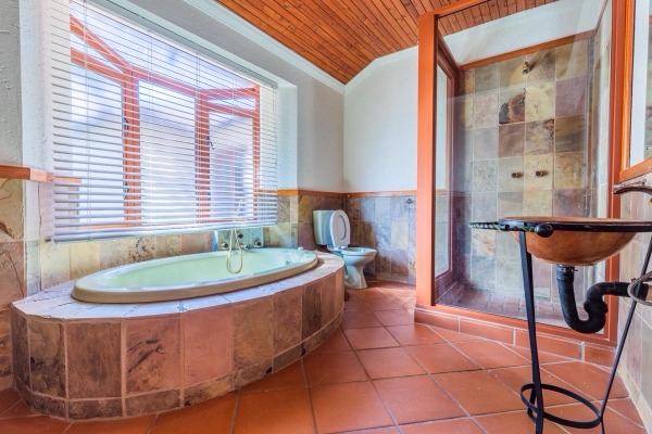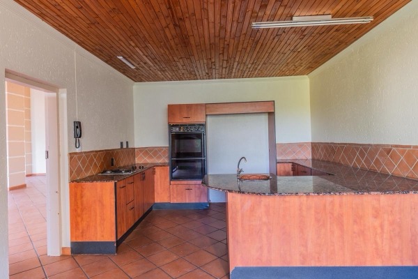 The kitchen is generously sized and finished with granite countertops, offering a breakfast nook, a separate scullery, and a dedicated washing-up area that leads to an enclosed washing line courtyard. A large walk-in pantry adds to the practicality and storage capacity of this well-designed space.