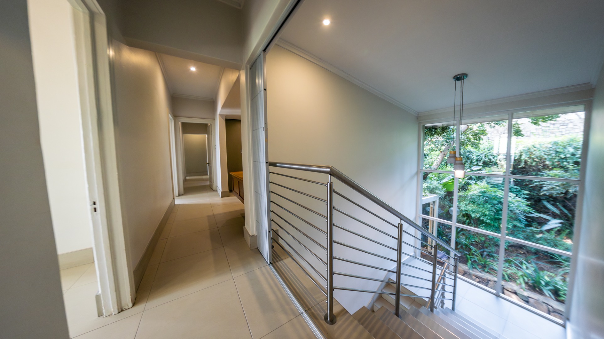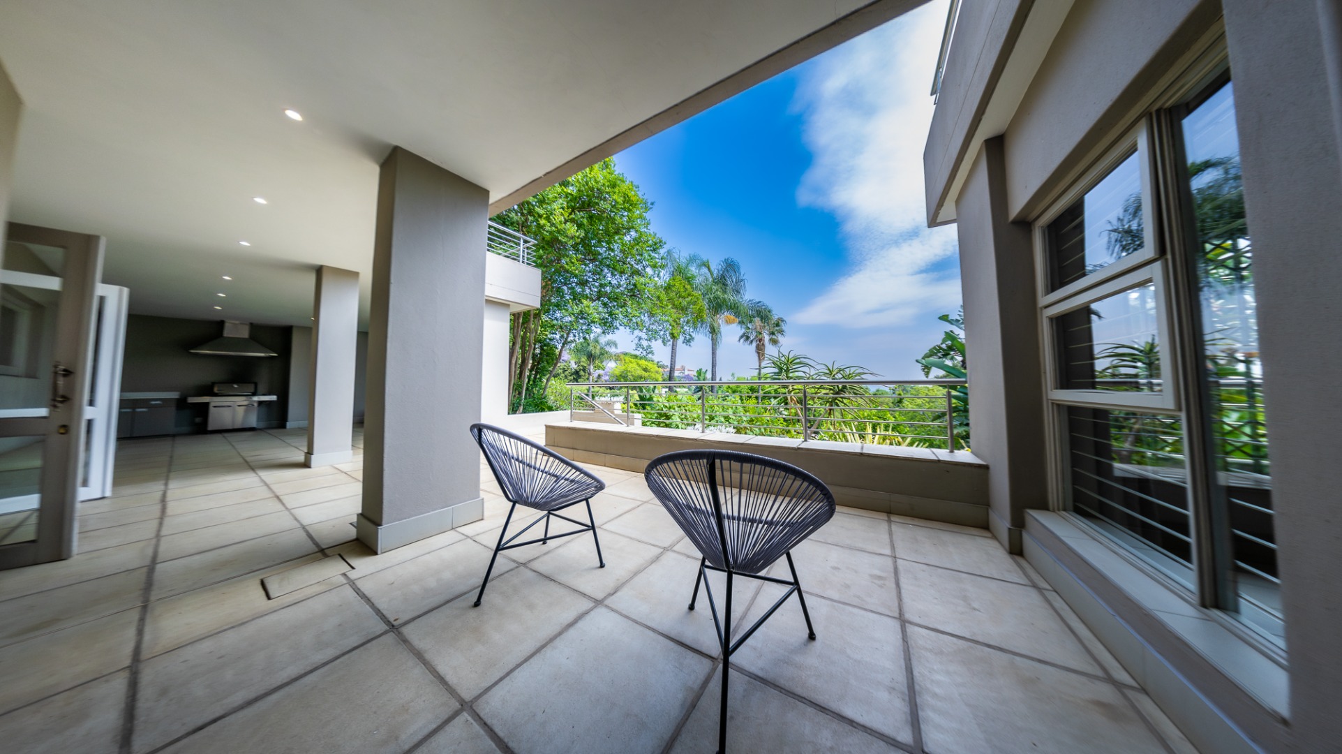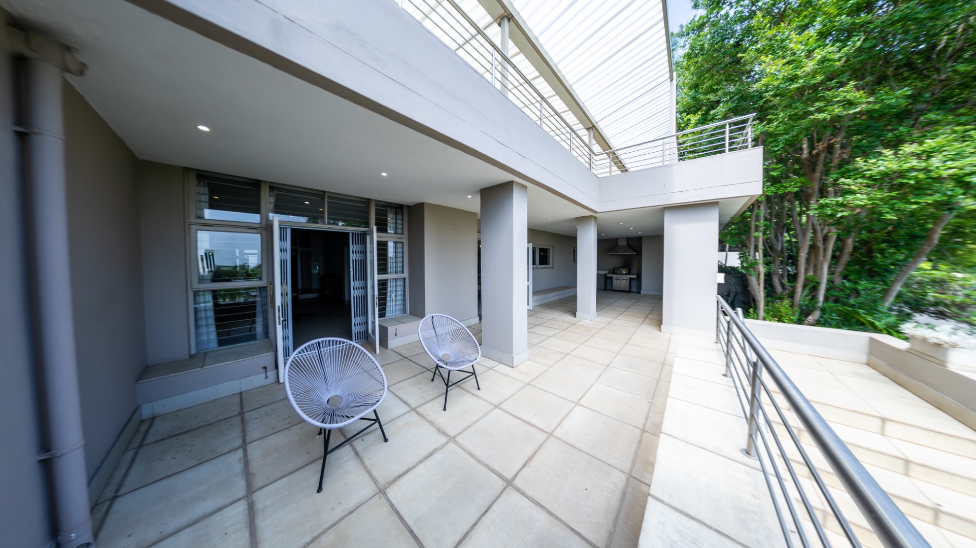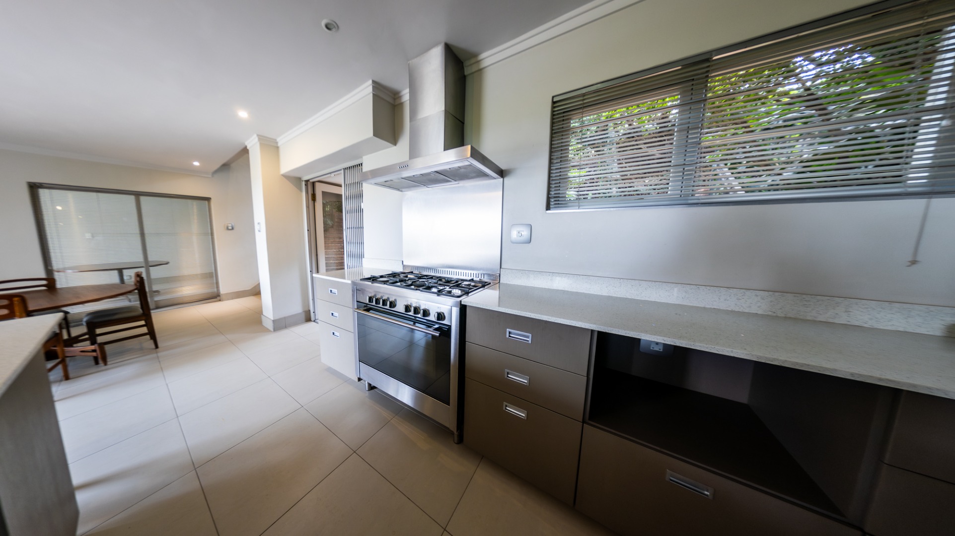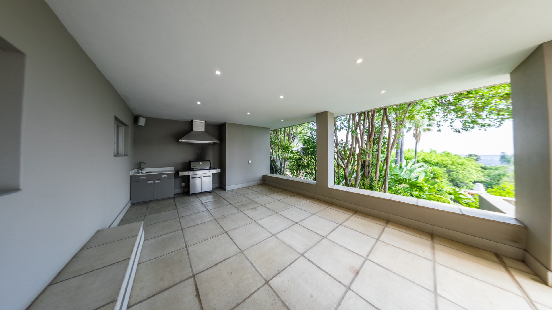 An expansive ground-floor patio features a built-in gas braai for effortless entertaining.
