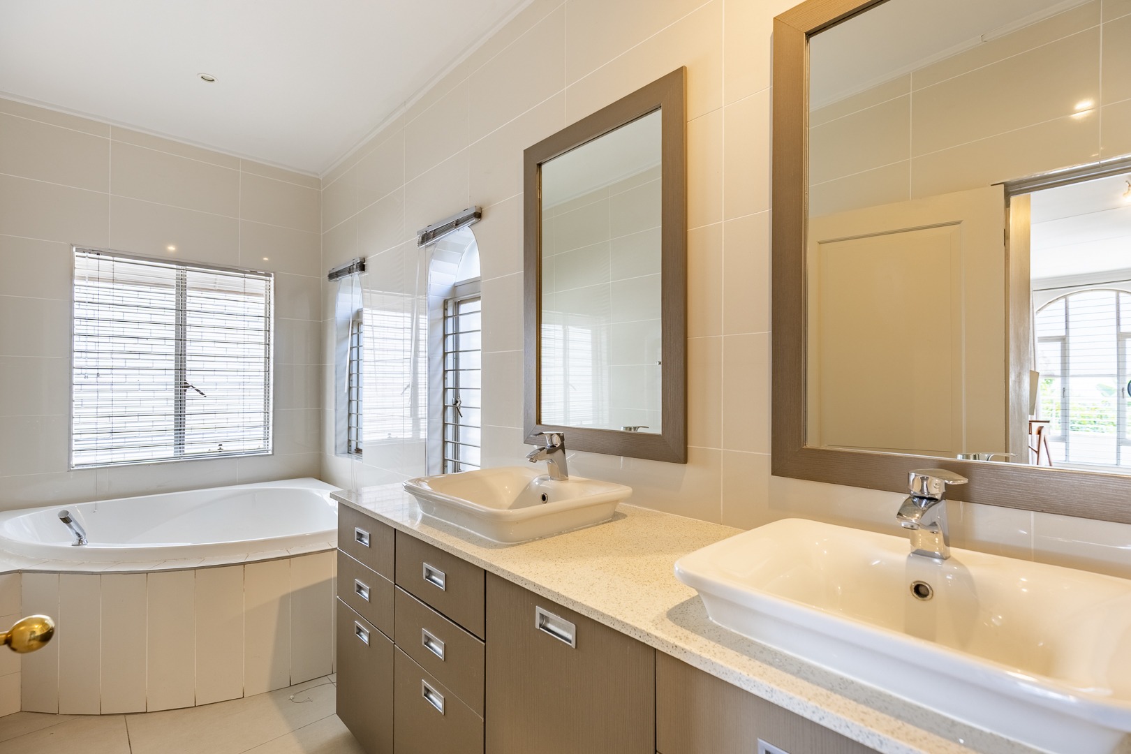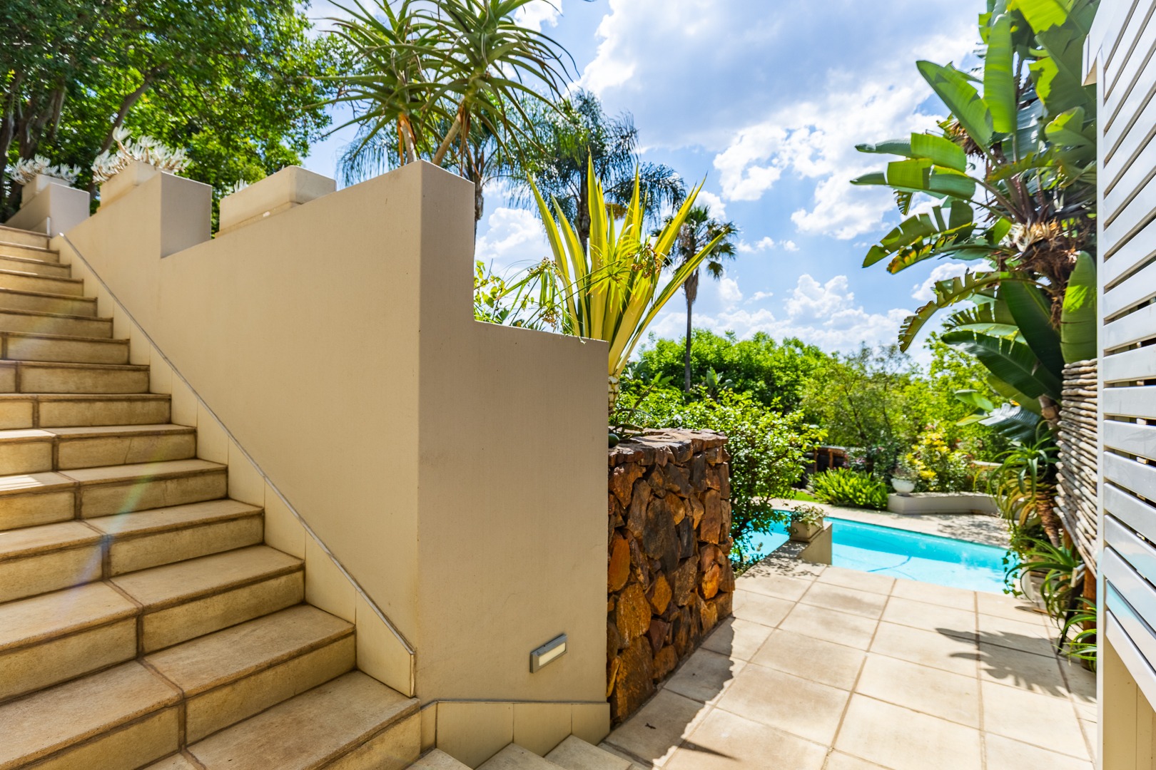 Nestled within the vibrant metropolitan landscape of Pretoria, this distinguished residence in Mooikloof Ridge offers an unparalleled lifestyle of sophistication and comfort. This expansive property, classified for residential rental, presents an exceptional opportunity for those seeking a luxurious living experience. Step into a realm of expansive luxury within this magnificent multi-level residence, boasting an impressive 650 sqm of refined living space. Designed for grand entertaining and serene family life, the home features two sophisticated lounges and three elegant dining rooms, providing abundant space for every occasion. The heart of this abode is its two modern kitchens, one with a stylish island, seamlessly flowing into open-plan living areas bathed in natural light from expansive glass doors. Seven generously proportioned bedrooms and six and a half opulent bathrooms ensure ultimate comfort and privacy for residents and guests alike. The exterior is a private tropical sanctuary, spanning a generous 1650 sqm erf. Discover a sparkling swimming pool, framed by lush, mature tropical gardens, offering a tranquil escape. Multiple balconies and a dedicated covered outdoor entertainment area, or lapa, invite alfresco dining and relaxation amidst the vibrant greenery. With six garages and ample additional parking, this estate caters effortlessly to a discerning lifestyle, perfect for large families or professionals desiring an executive rental in Pretoria. Key Features: * Seven Bedrooms * Six and a Half Bathrooms * Two Modern Kitchens * Three Dining Rooms * Two Lounges * Six Garages * Private Swimming Pool * Lush Tropical Gardens * Covered Outdoor Entertainment Area (Lapa) * Multi-level Architecture