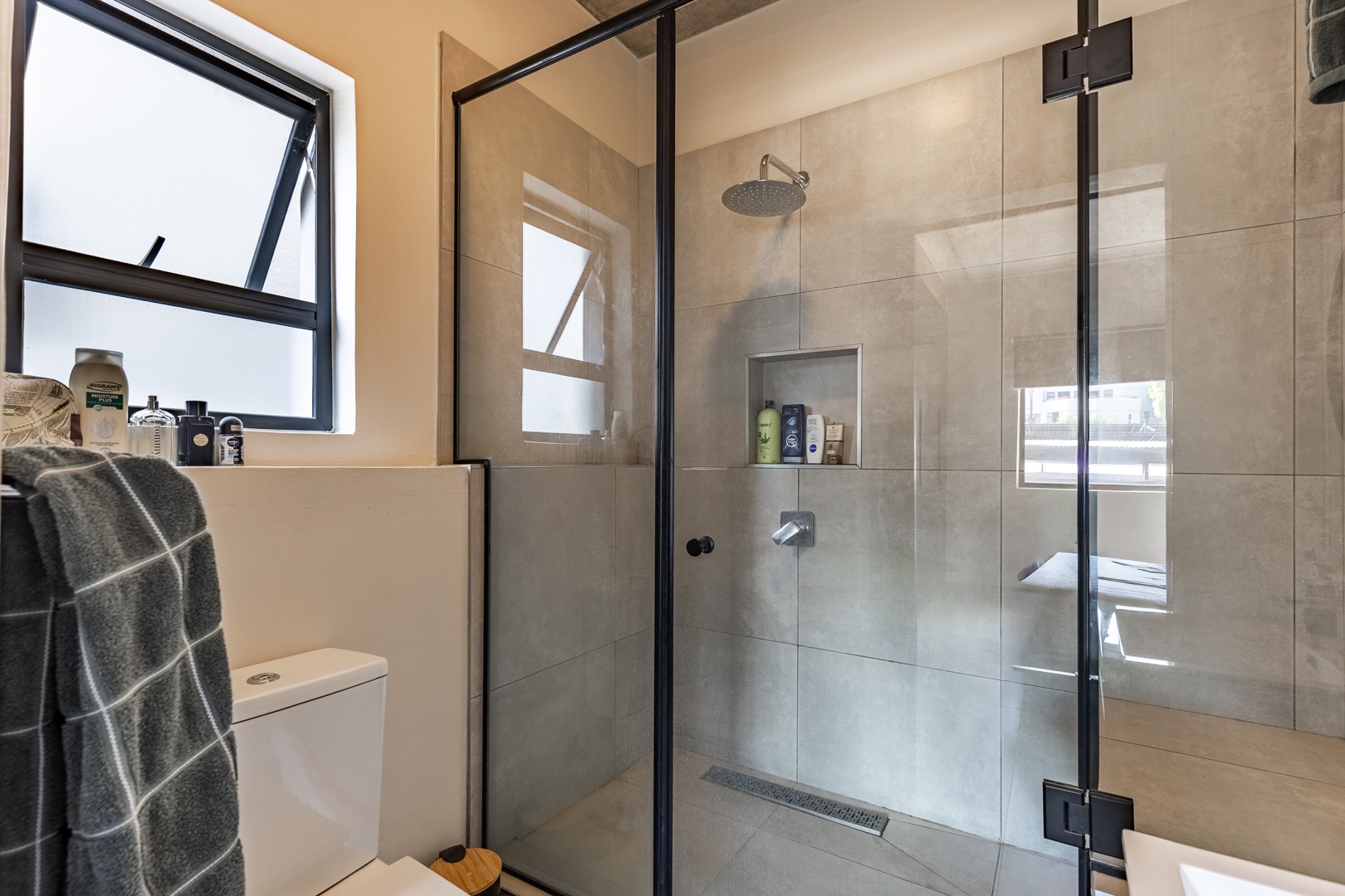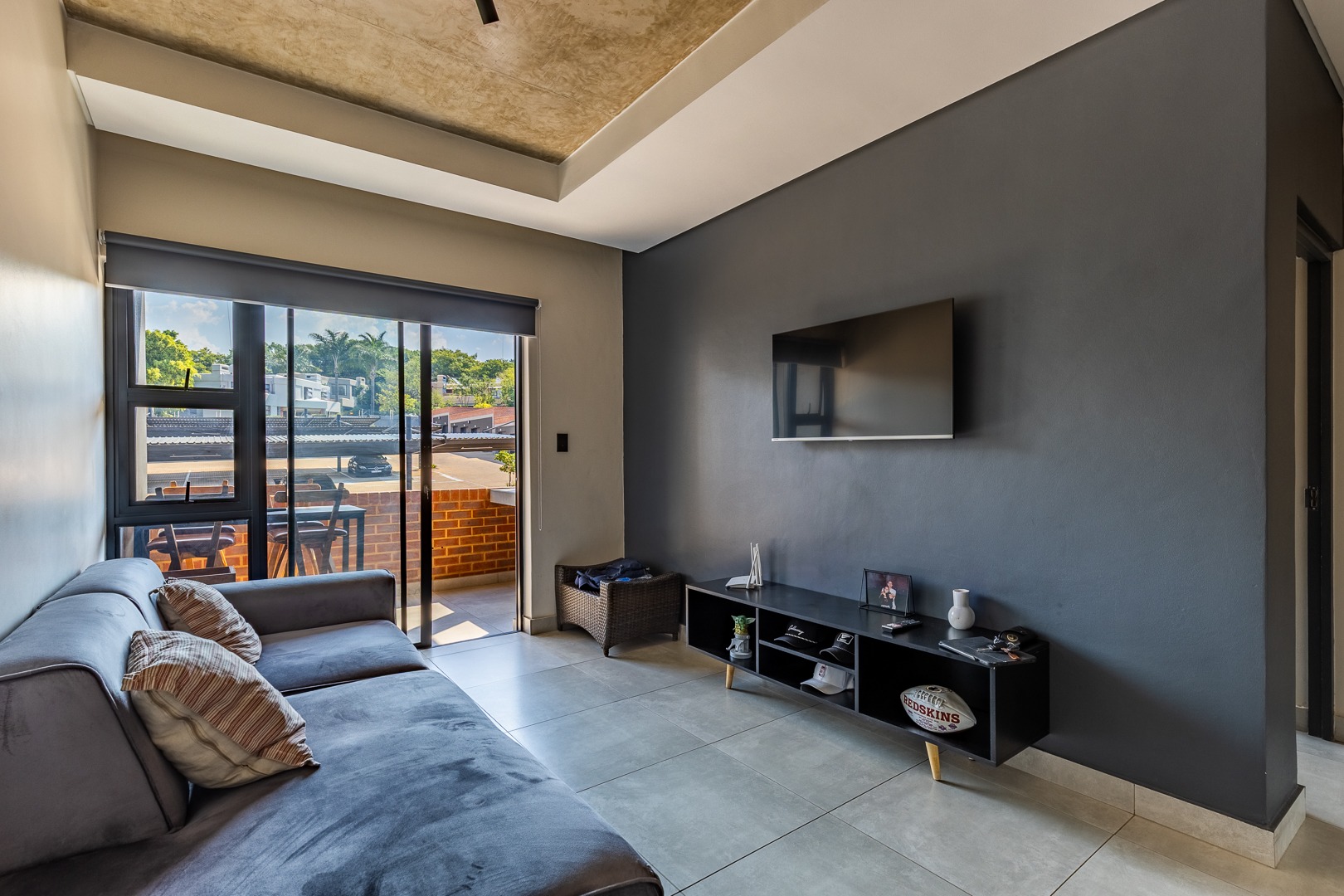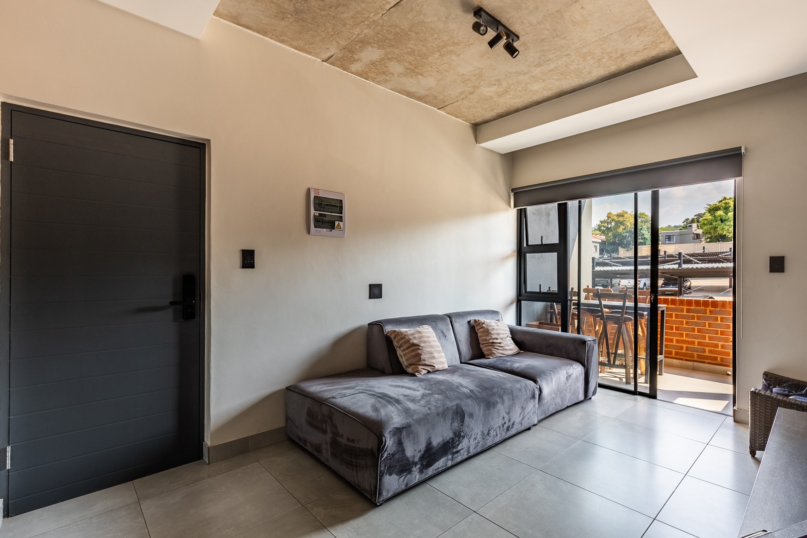 This modern one-bedroom apartment offers a comfortable and stylish living space, complete with an en-suite bathroom. The open-plan living area seamlessly connects to a private balcony, perfect for enjoying outdoor moments. The apartment includes a built-in gas braai for added convenience, ideal for entertaining.