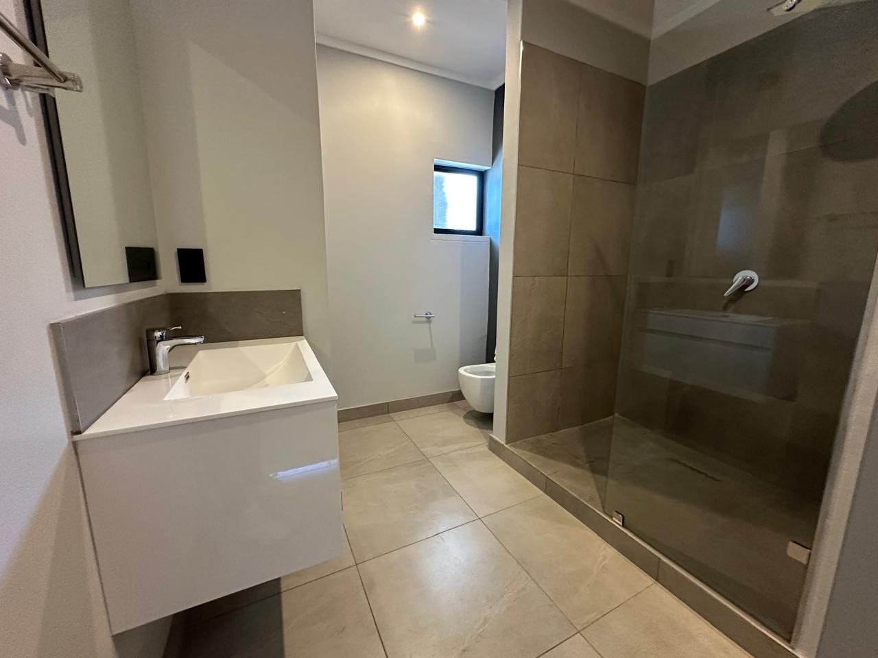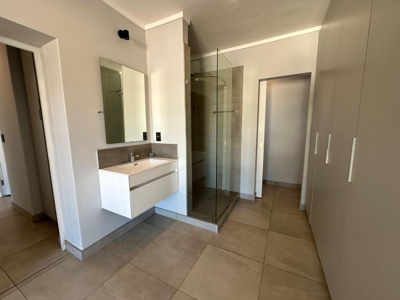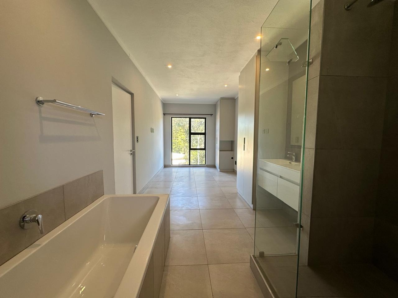 Hey there! Check out this modern 3-bedroom apartment for rent in Waterkloof, Pretoria. This comfy 90 sqm space features a sleek, open-plan living area flowing into a contemporary kitchen. You'll find a built-in oven, gas stovetop, stylish grey cabinetry, and marble-look countertops. Large sliding doors open to a private balcony, perfect for enjoying fresh air and green views. The apartment boasts tiled flooring and recessed lighting, giving it a clean feel. Each of the three bedrooms comes with its own en-suite bathroom, offering everyone their private space – how convenient is that? The bathrooms are modern, with some featuring both a walk-in shower and a bathtub, sleek floating vanities, and neutral tiling. There's even a guest toilet for visitors. Plus, you'll find built-in wardrobes in the bedrooms, providing good storage without cluttering your space. This unfurnished apartment is just waiting for your personal touch. It's a fantastic lock-up-and-go option, ideal for professionals or a small family seeking a hassle-free lifestyle. As part of a complex, you get access to awesome shared amenities like a sparkling pool, a well-equipped gym, and a clubhouse – perfect for unwinding or staying active. Lifts make getting around super easy too! Safety is sorted with 24-hour security, an access gate, and a security post, giving you peace of mind. Plus, the apartment is fibre-ready, so you'll have fast internet for all your streaming and work needs. Waterkloof is a lovely, well-established suburban area in Pretoria, known for its metropolitan vibe and convenient location. Key Features: * 3 Bedrooms, 3 En-suite Bathrooms * Modern Kitchen with Built-in Appliances * Private Balcony with Green Views * Access to Pool, Gym & Clubhouse * 24-Hour Security & Fibre Ready * 90 sqm Floor Size * Unfurnished, Ready for Your Touch