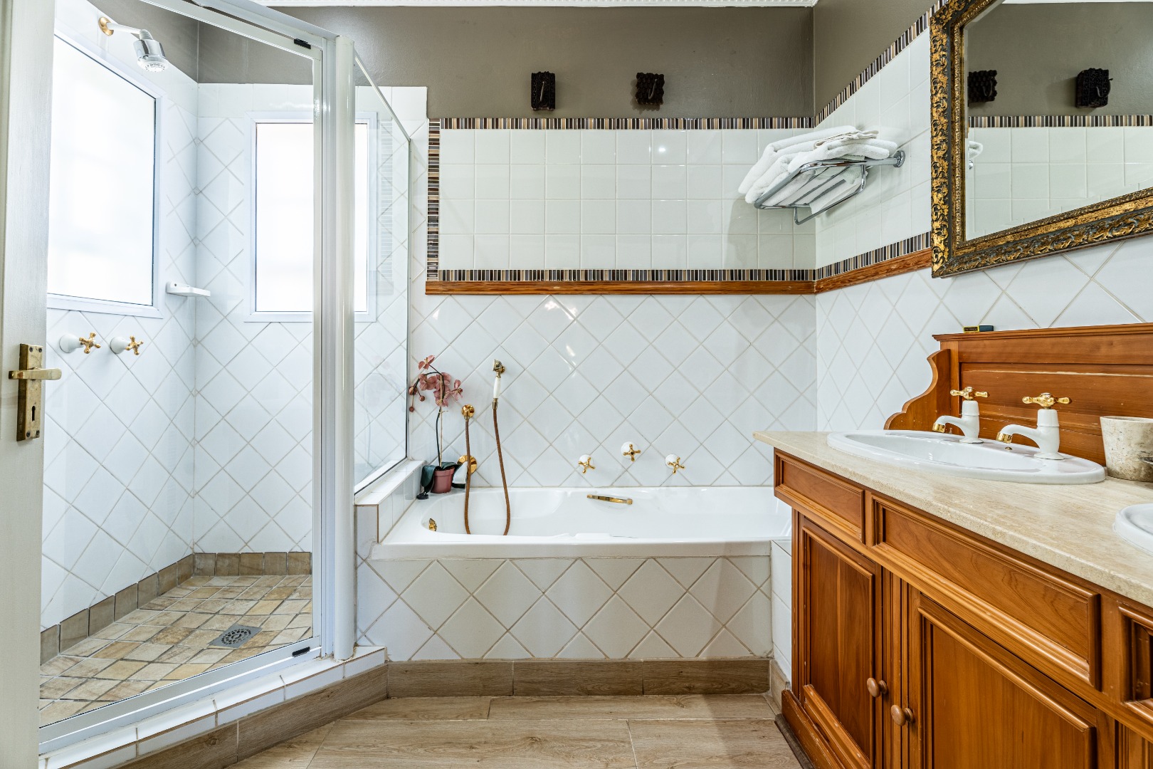 Technological features abound, with air conditioning in all rooms to ensure a comfortable environment throughout the house. Additionally, the property is equipped with an inverter for uninterrupted power supply and fast WiFi, catering to modern lifestyles.