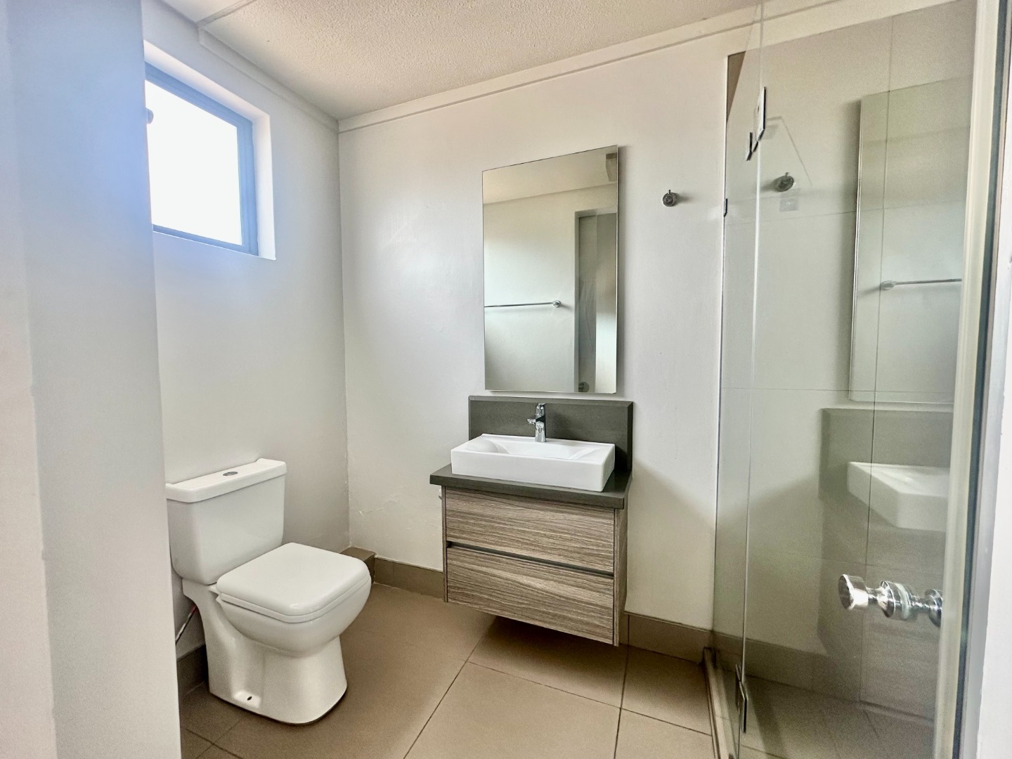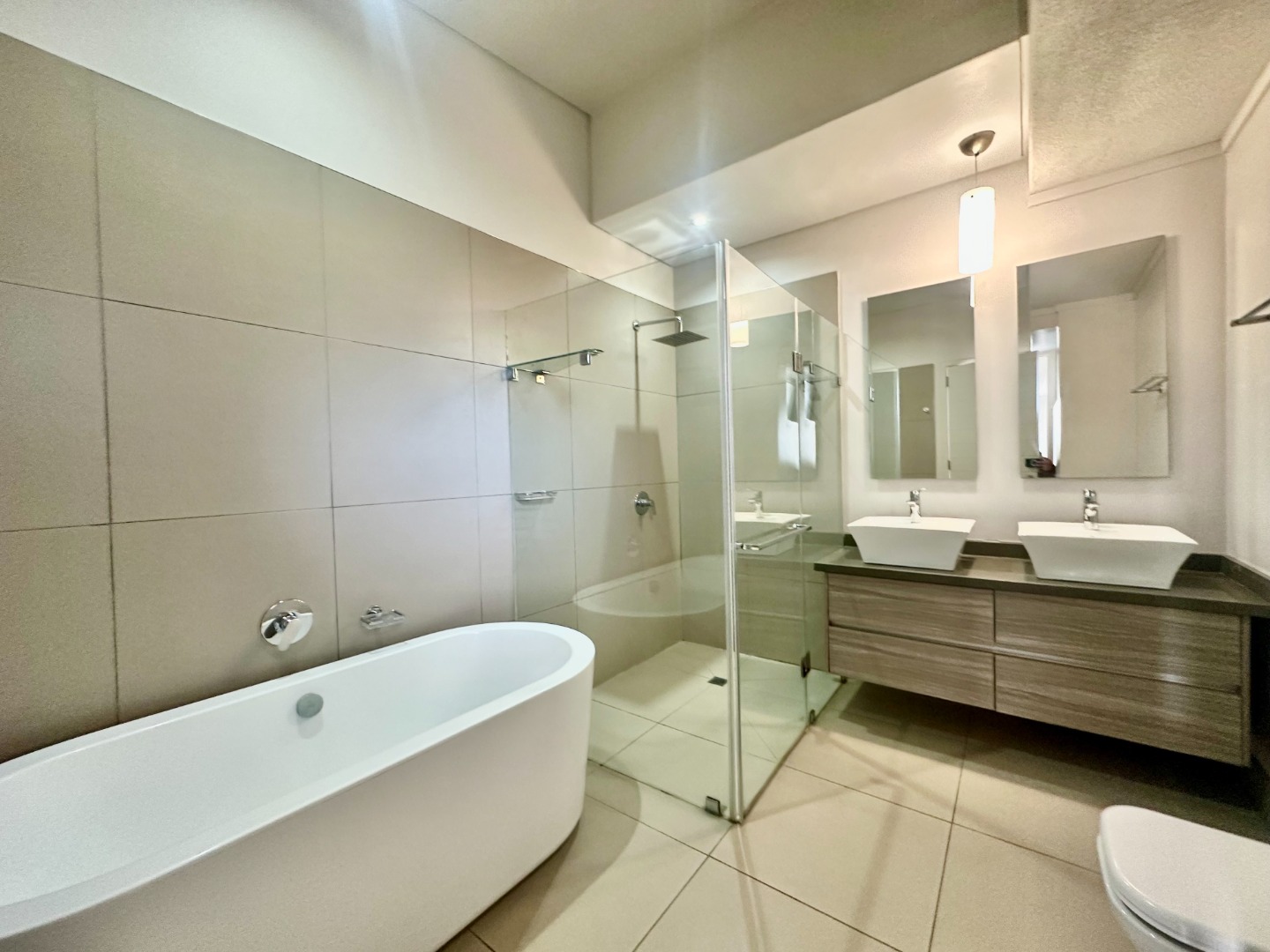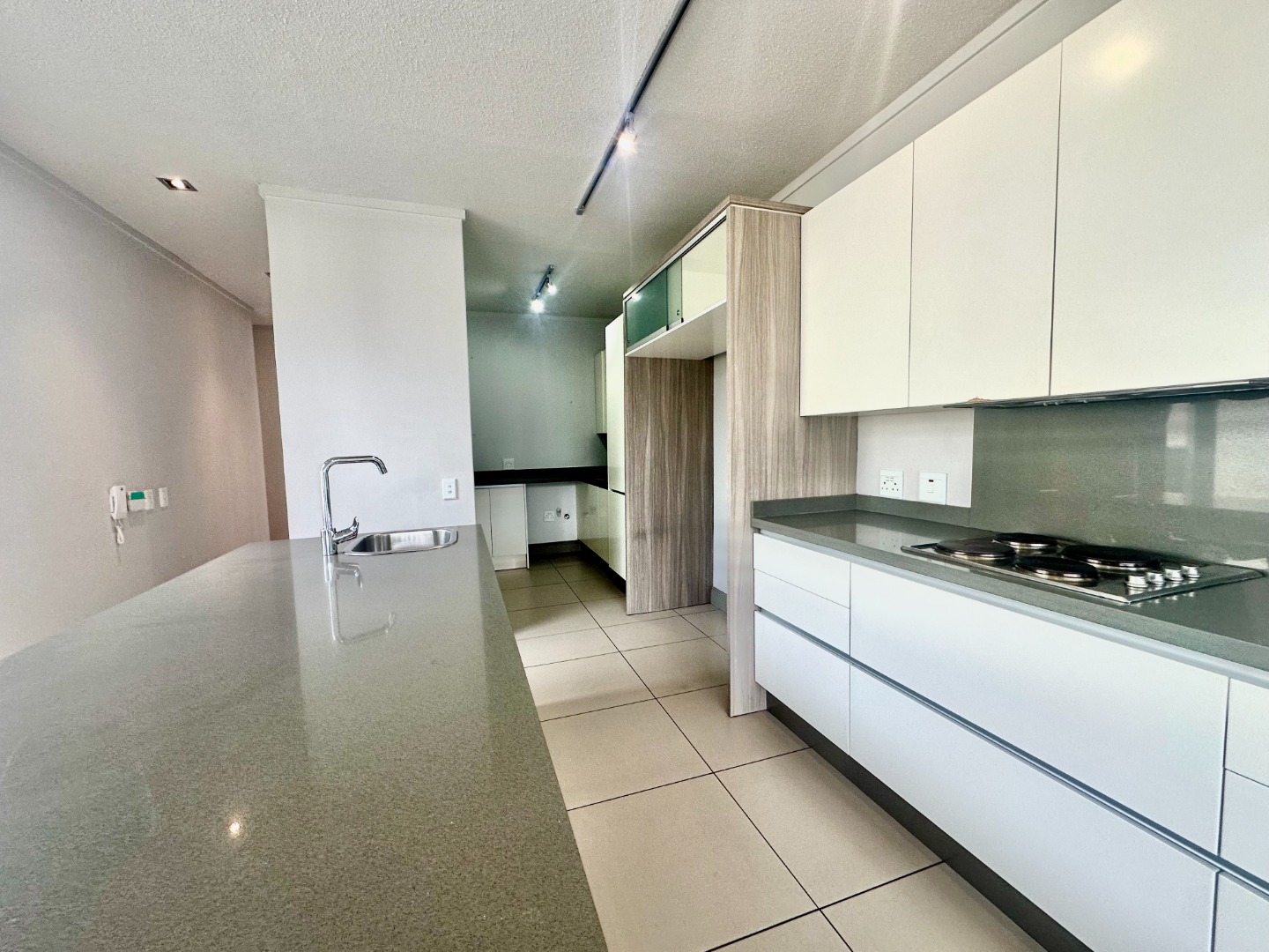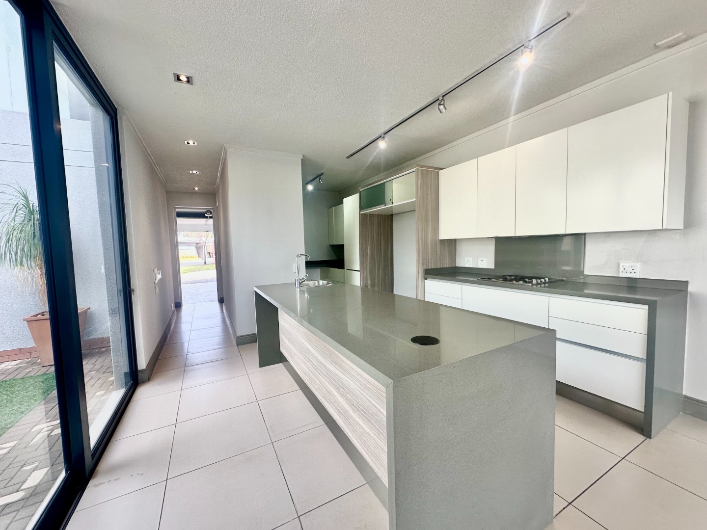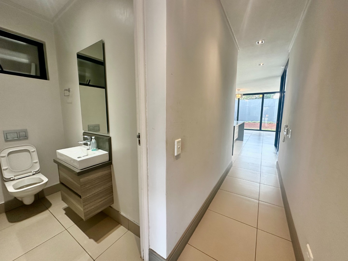 The heart of the home is a sleek, contemporary kitchen equipped with soft-close cabinetry, a quality electric stove and oven, and a separate scullery for added convenience. On the ground floor, a generously sized en-suite bedroom—perfect for guests or extended family—offers built-in wardrobes and a stylish bathroom with double vanities. A guest cloakroom adds to the home’s thoughtful layout and functionality.