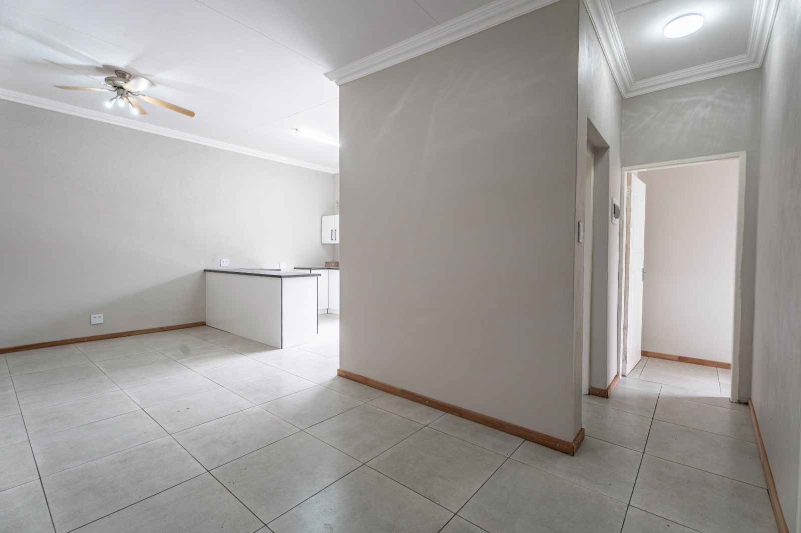 This modern 2 bedroom, 1 bathroom rental property in West Park, Pretoria offers a comfortable and functional living space. The open plan design seamlessly connects the lounge and kitchen areas, creating an inviting atmosphere. The kitchen boasts contemporary white cabinetry, dark countertops, and tiled flooring, providing a sleek and practical space for meal preparation. Large sliding glass doors enhance natural light and provide easy access to the outdoor area. Both bedrooms featuring a built-in wardrobe for convenient storage. The single bathroom is designed for efficiency and comfort.