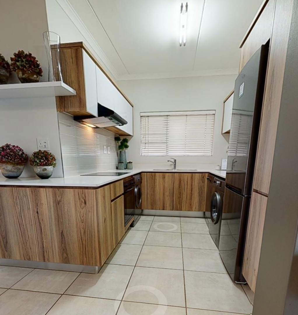 Discover modern living in this inviting 3-bedroom, 2-bathroom rental home, ideally situated within a secure estate in Willow Acres, Pretoria. Spanning 120 sqm of comfortable floor space on a 200 sqm erf, this residence offers a contemporary open-plan layout designed for ease and functionality. The living area seamlessly connects to a modern kitchen, featuring sleek cabinetry, black appliances, and an integrated washing machine, all complemented by durable tiled flooring throughout. The home boasts three well-appointed bedrooms, including an en-suite bathroom for added privacy and convenience. Each bedroom benefits from ample natural light and includes built-in wooden wardrobes, with some featuring integrated bedside shelving and lighting for a stylish touch. The two bathrooms are finished with a modern aesthetic, incorporating floating vanities, showers, and one offering a separate bathtub. This property is perfect for families or professionals seeking a balanced lifestyle. Enjoy a private patio and a garden, with pets allowed, making it a welcoming space for all. Residents also benefit from access to communal amenities within the complex, including a swimming pool and a clubhouse, fostering a vibrant community atmosphere. Security is paramount within this estate, which features 24-hour security, CCTV surveillance, electric fencing, an access gate, a security post, an intercom system, and a security gate, ensuring peace of mind. The home is also fibre-ready, providing high-speed internet connectivity. Two dedicated parking bays are available for residents. Located in Willow Acres, Pretoria, this property offers secure estate living with convenient access to local amenities and transport routes, making it an excellent choice for those seeking comfort and security in a prime South African location. Key Features: * 3 Bedrooms, 2 Bathrooms (1 en-suite) * Modern open-plan living and dining areas * Contemporary kitchen with integrated appliances * Private patio and garden * Access to communal pool and clubhouse * Secure estate with 24-hour security, CCTV, electric fencing * Fibre-ready connectivity * Pet-friendly environment * 2 Dedicated parking bays