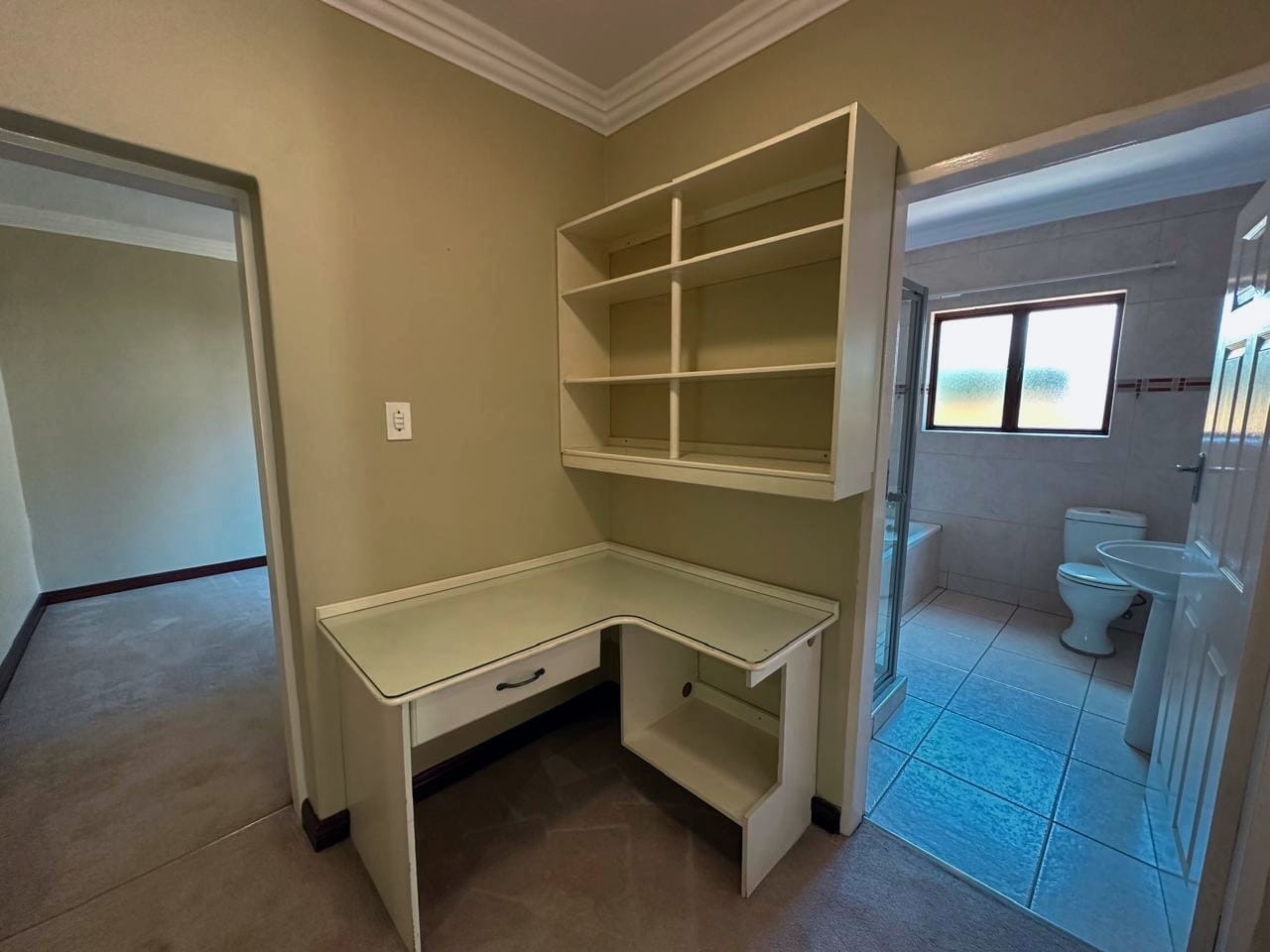 This spacious 3-bedroom, 2.5-bathroom home is available to rent in the highly sought-after Willow Acres Estate, Pretoria. Offering generous living space on a 797 sqm stand, the home features a bright open-plan layout with neutral finishes, tiled floors, recessed lighting, and elegant crown moulding. A striking floor-to-ceiling tiled fireplace creates a warm focal point in the living area, perfect for cozy evenings and relaxed family living.