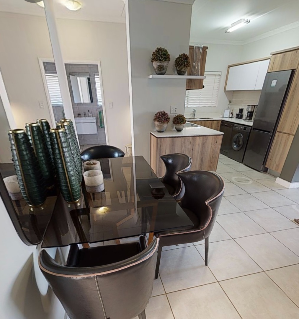 Discover modern estate living in this stylish 3-bedroom, 2-bathroom rental property located in the sought-after Willow Park Manor, Pretoria. This contemporary home spans 130 sqm and features an inviting open-plan layout, seamlessly connecting the lounge, dining area, and a sleek kitchen. The kitchen boasts two-tone cabinetry, white countertops, a subway tile backsplash, and integrated appliances including a washing machine and stovetop, complemented by a practical breakfast bar. Large sliding glass doors fill the living space with natural light and provide direct access to a private patio, perfect for relaxation. The residence offers three comfortable bedrooms, with the main bedroom featuring an en-suite bathroom for added privacy. Both bathrooms are designed with modern aesthetics, showcasing grey tiling, floating vanities, and glass-enclosed showers, with one also including a bathtub. Bedrooms are equipped with built-in wardrobes and integrated bedside shelving with lighting, ensuring ample storage and convenience. Tiled flooring throughout the home ensures easy maintenance and a clean finish. Ideal for professionals or families, this property offers a desirable lifestyle within a secure estate. Residents can enjoy access to communal amenities such as a swimming pool and clubhouse, fostering a vibrant community atmosphere. Pets are allowed, making it a welcoming home for your furry companions. The property includes two dedicated parking bays, adding to its practicality. Security is paramount, with features including a security complex, 24-hour security, security post, access gate, electric fencing, CCTV surveillance, and an intercom system, providing peace of mind. The home is also fibre-ready, ensuring high-speed internet connectivity. Situated in a suburban setting, this estate offers a tranquil environment while remaining conveniently close to urban amenities. Key Features: * 3 Bedrooms, 2 Bathrooms (1 En-suite) * Modern Open-Plan Living Area * Stylish Kitchen with Integrated Appliances * Private Patio and Garden * Estate Amenities: Pool & Clubhouse * Secure Complex with 24-Hour Security * Fibre Ready * Pets Allowed * 2 Parking Bays