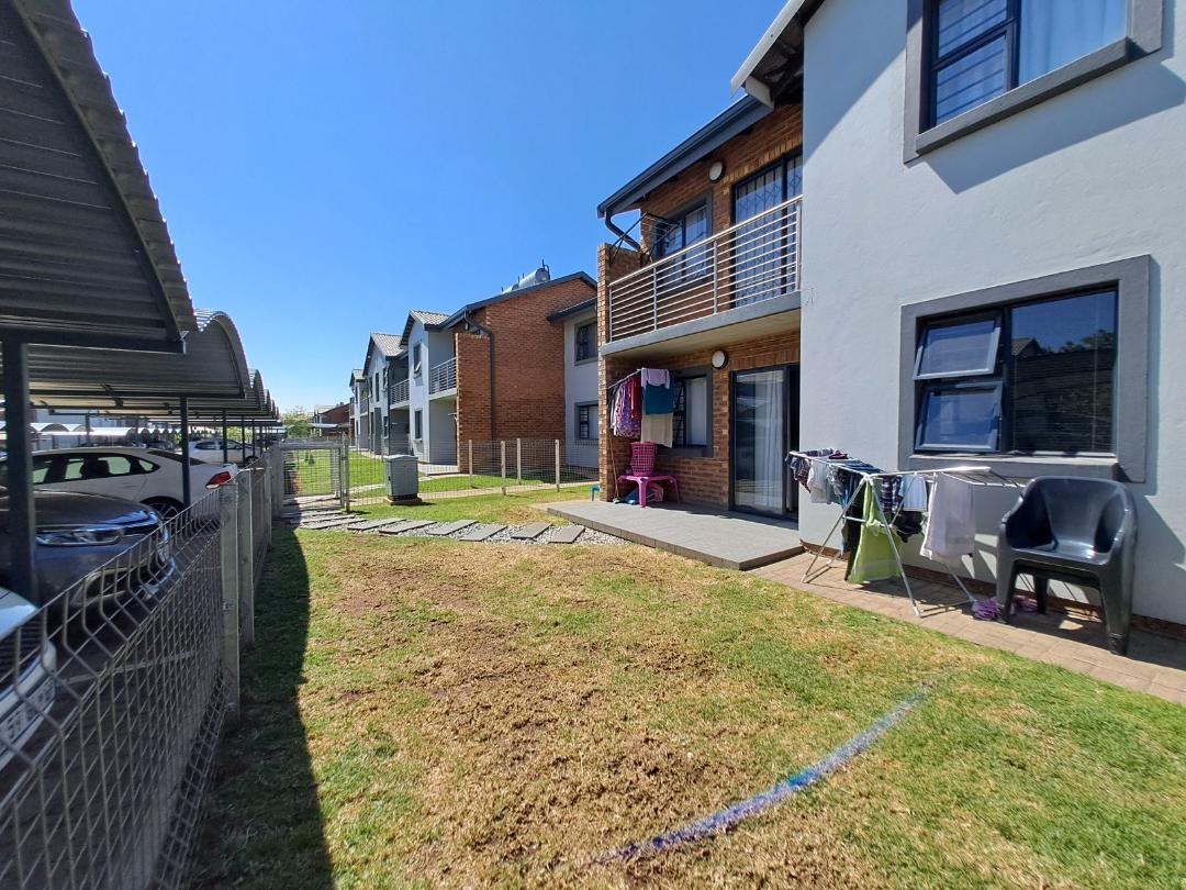 Key Features include: 3 Bedrooms, 2 Bathrooms (1 en-suite), 94m2 Floor Size, Modern Kitchen with Built-in Appliances, Open-Plan Lounge with Tiled Flooring, Private Patio and Garden, Two Dedicated Parking Bays, 24 Hour Security Complex, Built-in Wardrobes, Suburban Willow Park Location.