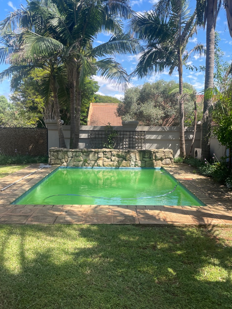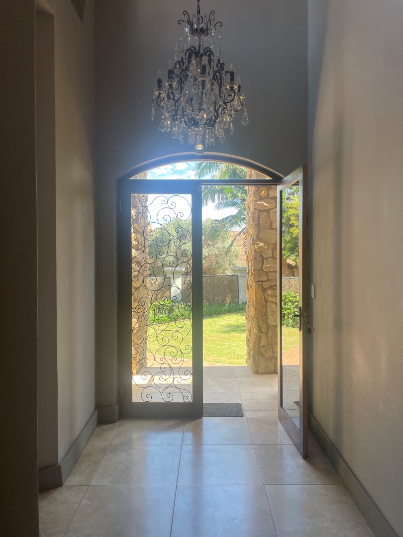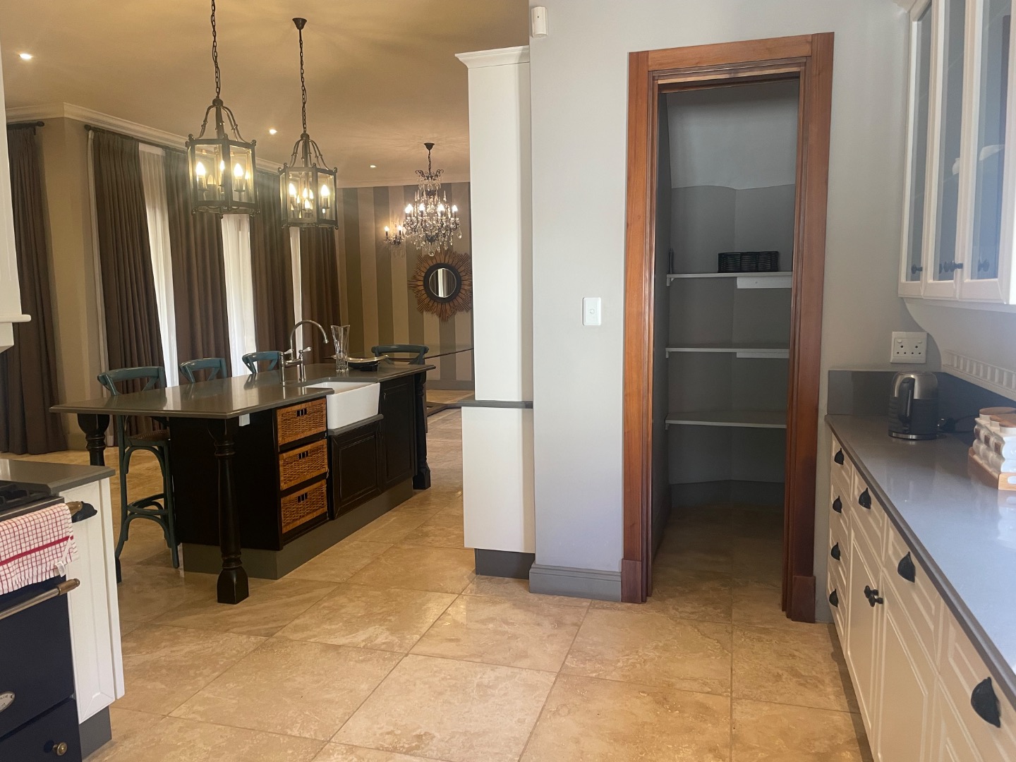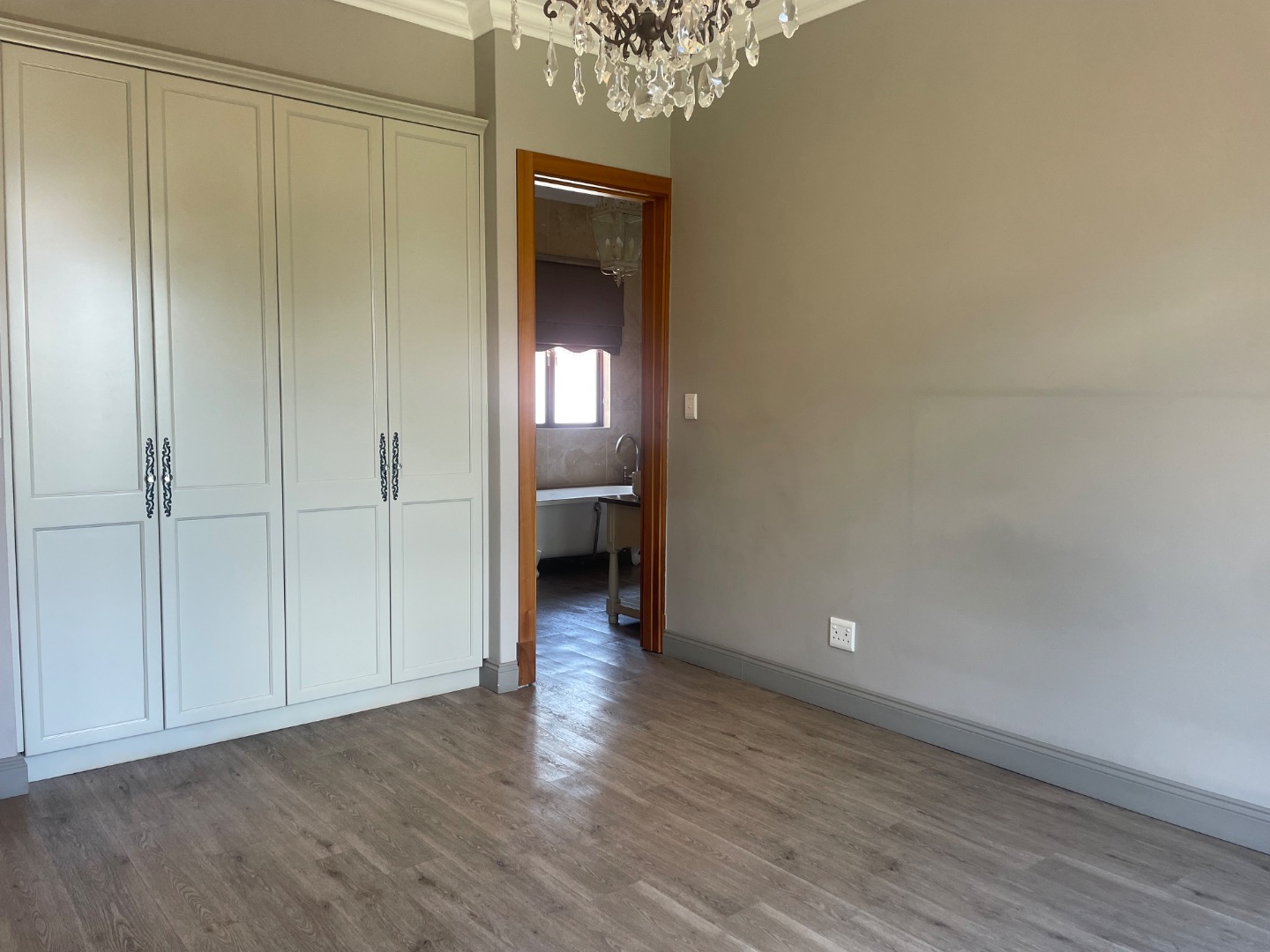 Outdoor living is a true highlight, featuring a sparkling swimming pool and a beautiful outdoor entertainment area complete with a built-in braai, perfect for hosting family and friends. The area opens onto a meticulously maintained landscaped lawn, creating a tranquil and private setting ideal for relaxation and leisure.