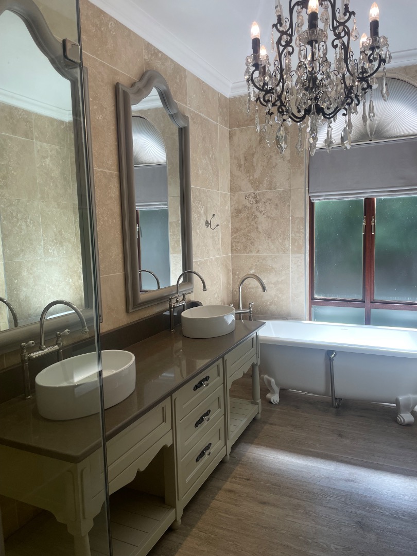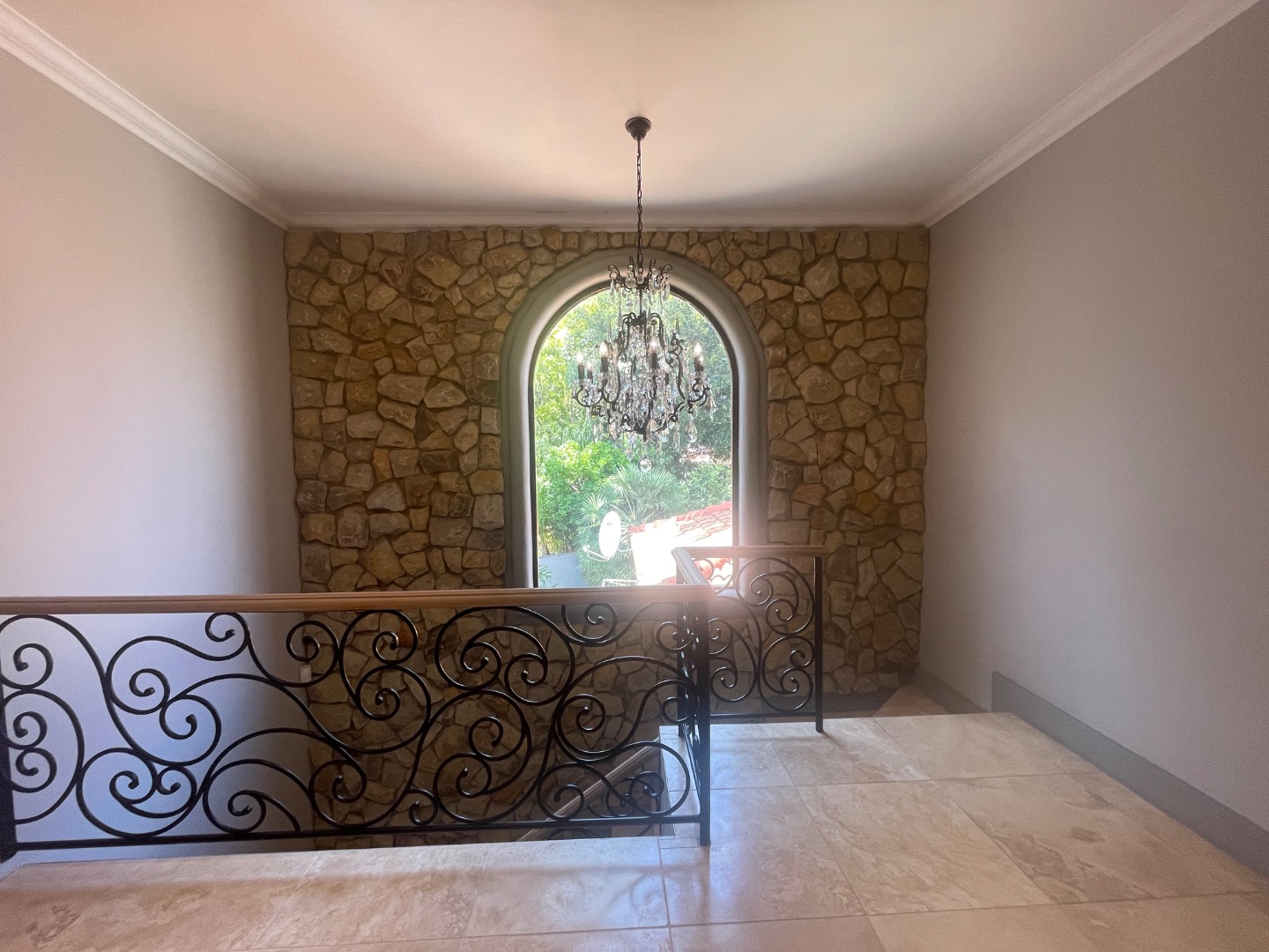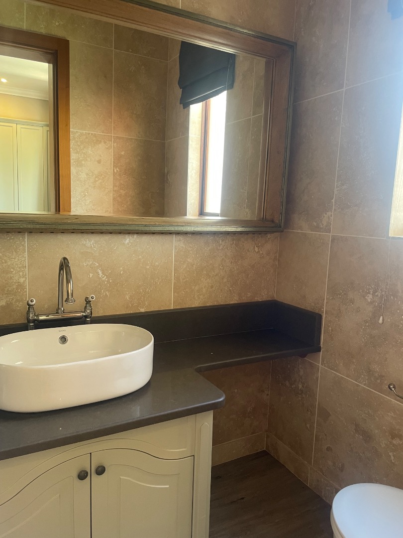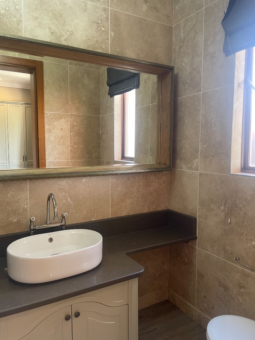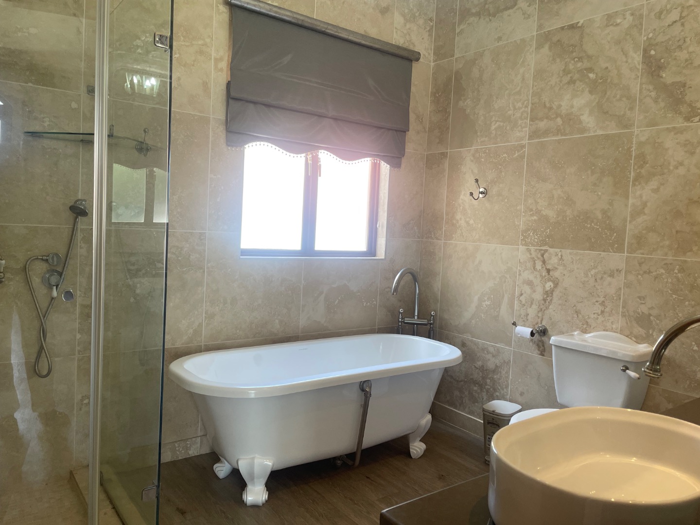 Outdoor living is a true highlight, featuring a sparkling swimming pool and a beautiful outdoor entertainment area complete with a built-in braai, perfect for hosting family and friends. The area opens onto a meticulously maintained landscaped lawn, creating a tranquil and private setting ideal for relaxation and leisure.
