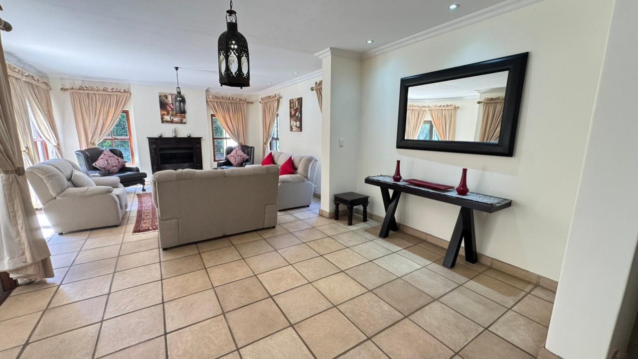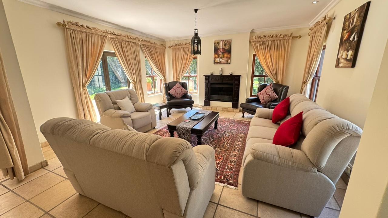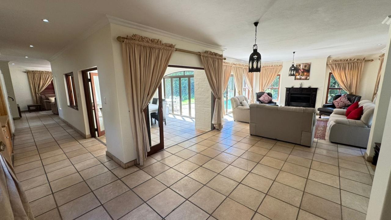 Step inside, and you'll discover a generously proportioned, fully furnished interior that's perfect for grand entertaining and comfortable family living. The expansive open-plan layout connects three distinct lounge areas and a dedicated dining room, all bathed in abundant natural light. The durable tiled flooring and elegant decor create a welcoming ambiance, perfect for relaxing by the fireplace or enjoying a meal with loved ones.