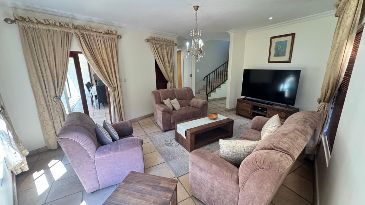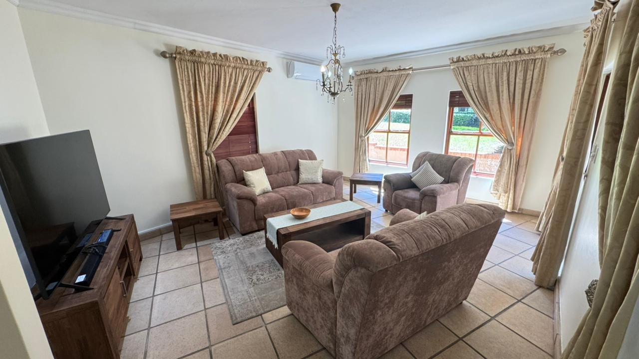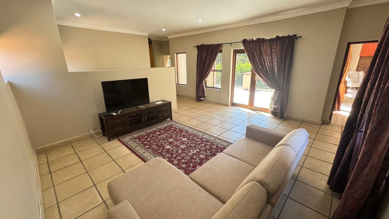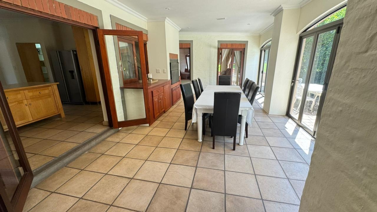 Step inside, and you'll discover a generously proportioned, fully furnished interior that's perfect for grand entertaining and comfortable family living. The expansive open-plan layout connects three distinct lounge areas and a dedicated dining room, all bathed in abundant natural light. The durable tiled flooring and elegant decor create a welcoming ambiance, perfect for relaxing by the fireplace or enjoying a meal with loved ones.
