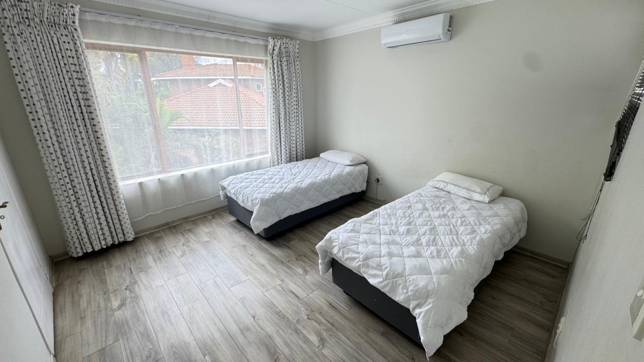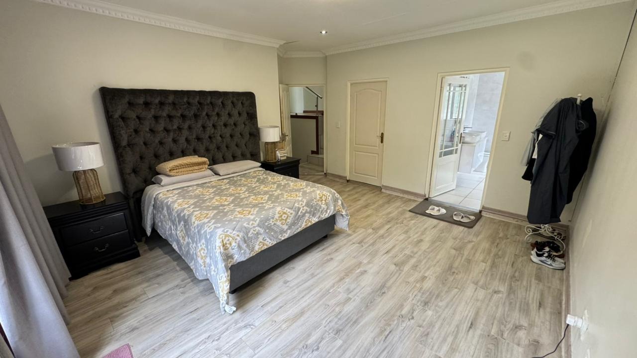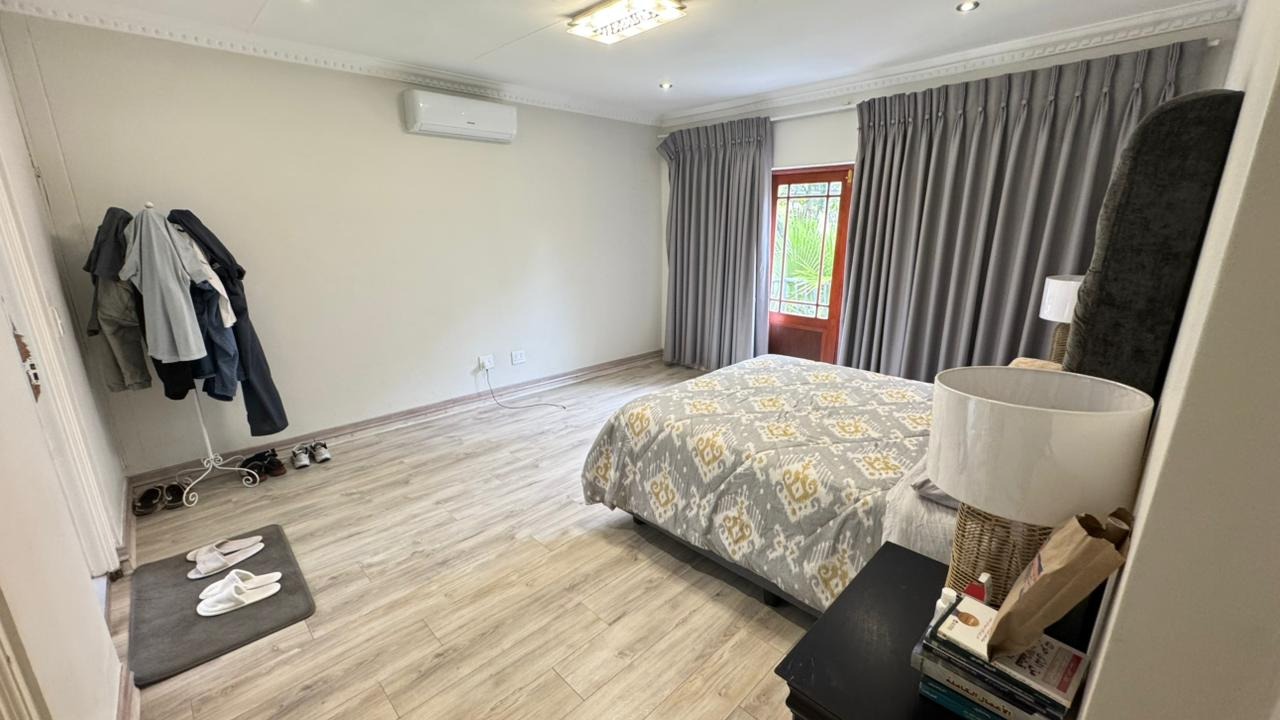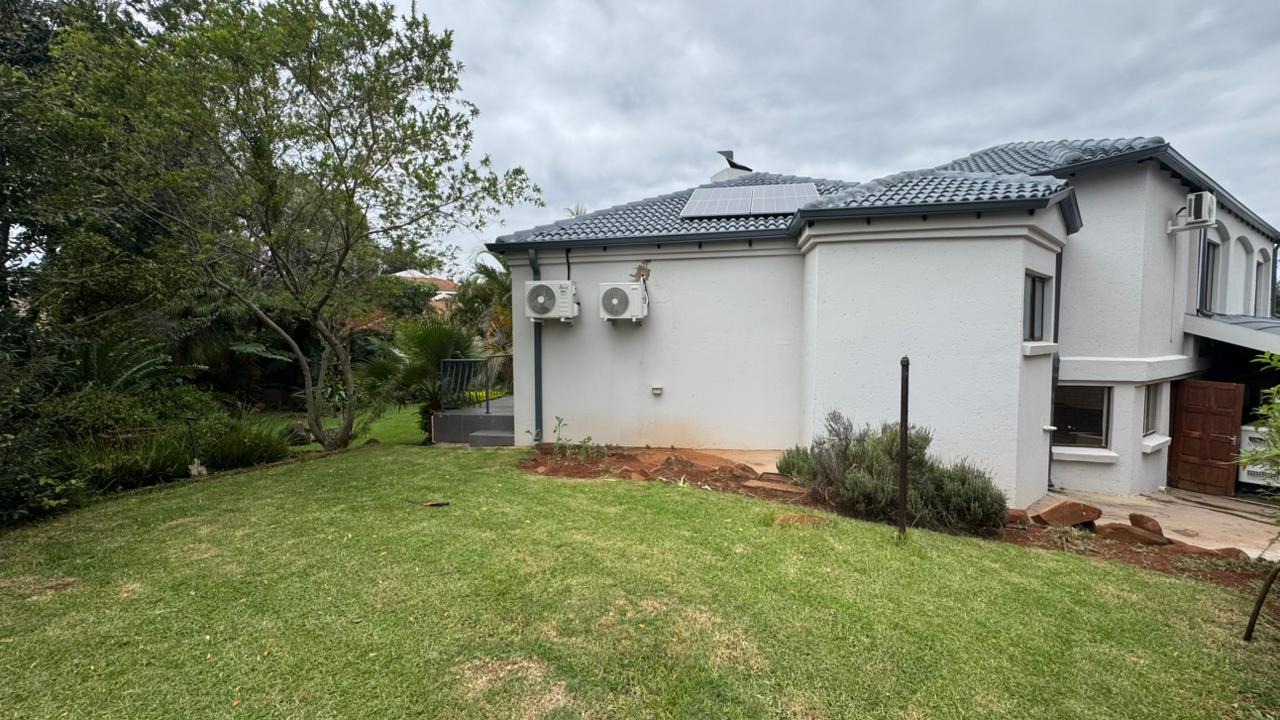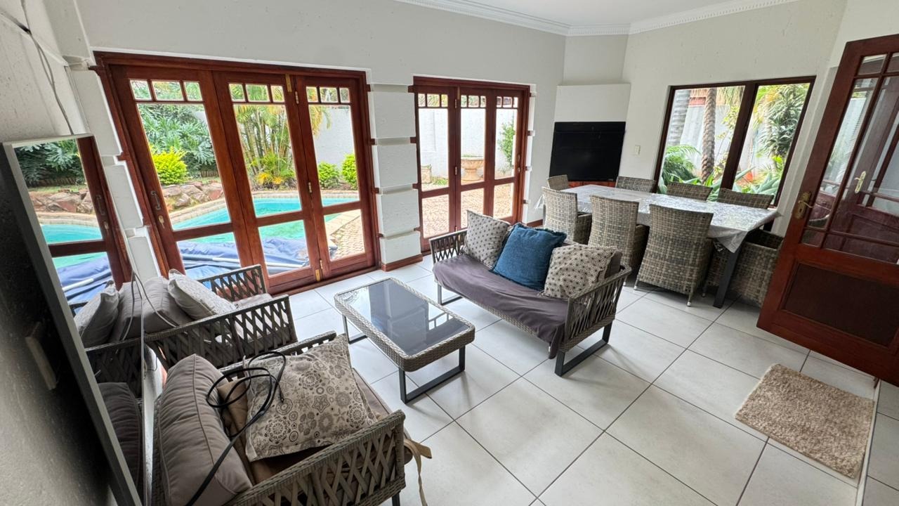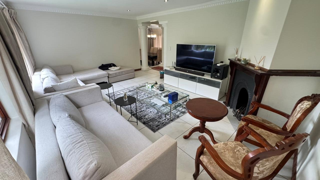 The residence boasts four generously proportioned bedrooms and 2.5 luxurious bathrooms, including an ensuite, providing private havens for relaxation. Step outside to your private oasis, featuring a delightful patio, a shimmering pool, and a beautifully landscaped garden. The built-in braai and dedicated braai room promise unforgettable al fresco gatherings, while air conditioning and a charming fireplace ensure year-round comfort.