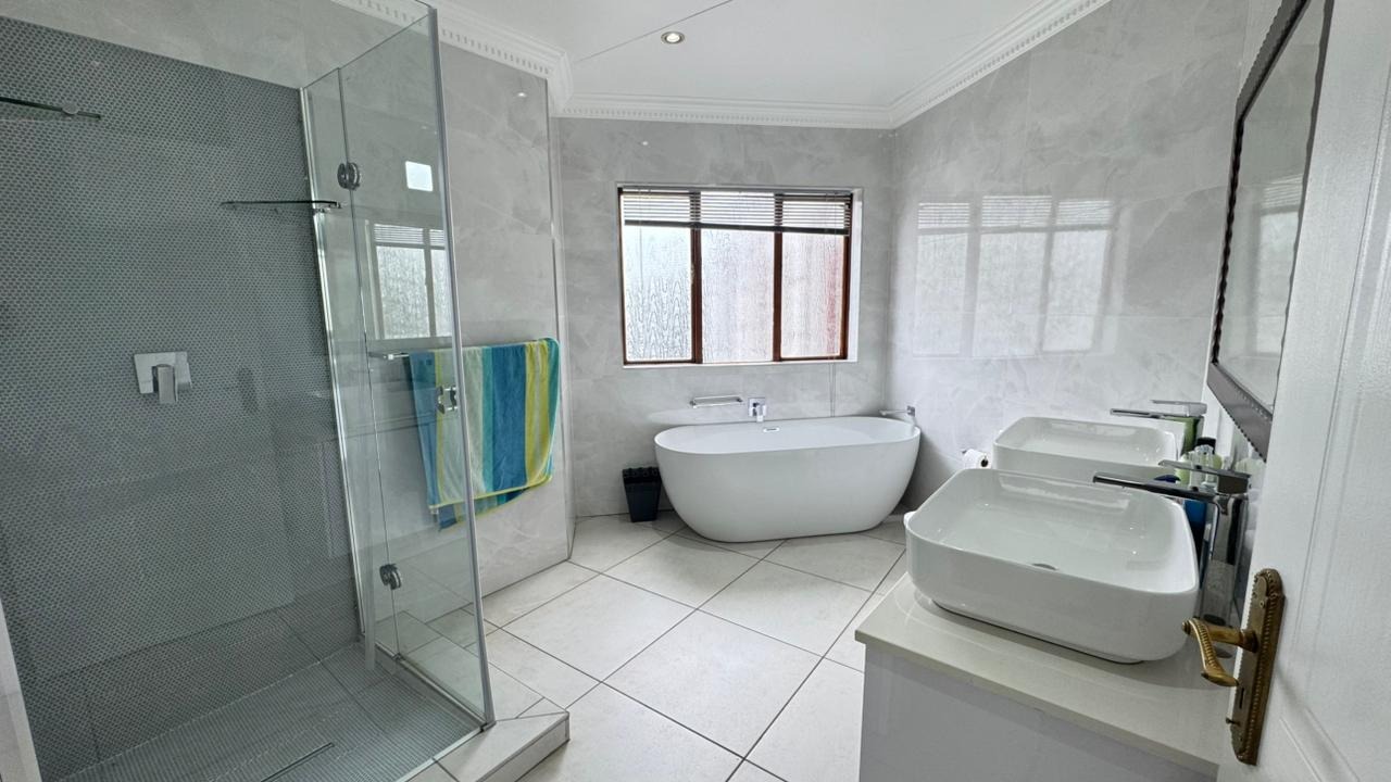 Spanning an impressive 340 square meters on a generous 930 square meter erf, this home is designed for grand entertaining and intimate family moments. Discover two elegant dining rooms, two expansive lounges, and a dedicated family TV room, each space meticulously crafted for comfort and style. A well-appointed kitchen, complete with a convenient pantry, forms the heart of this exceptional abode, complemented by an inviting entrance hall and a practical guest toilet.