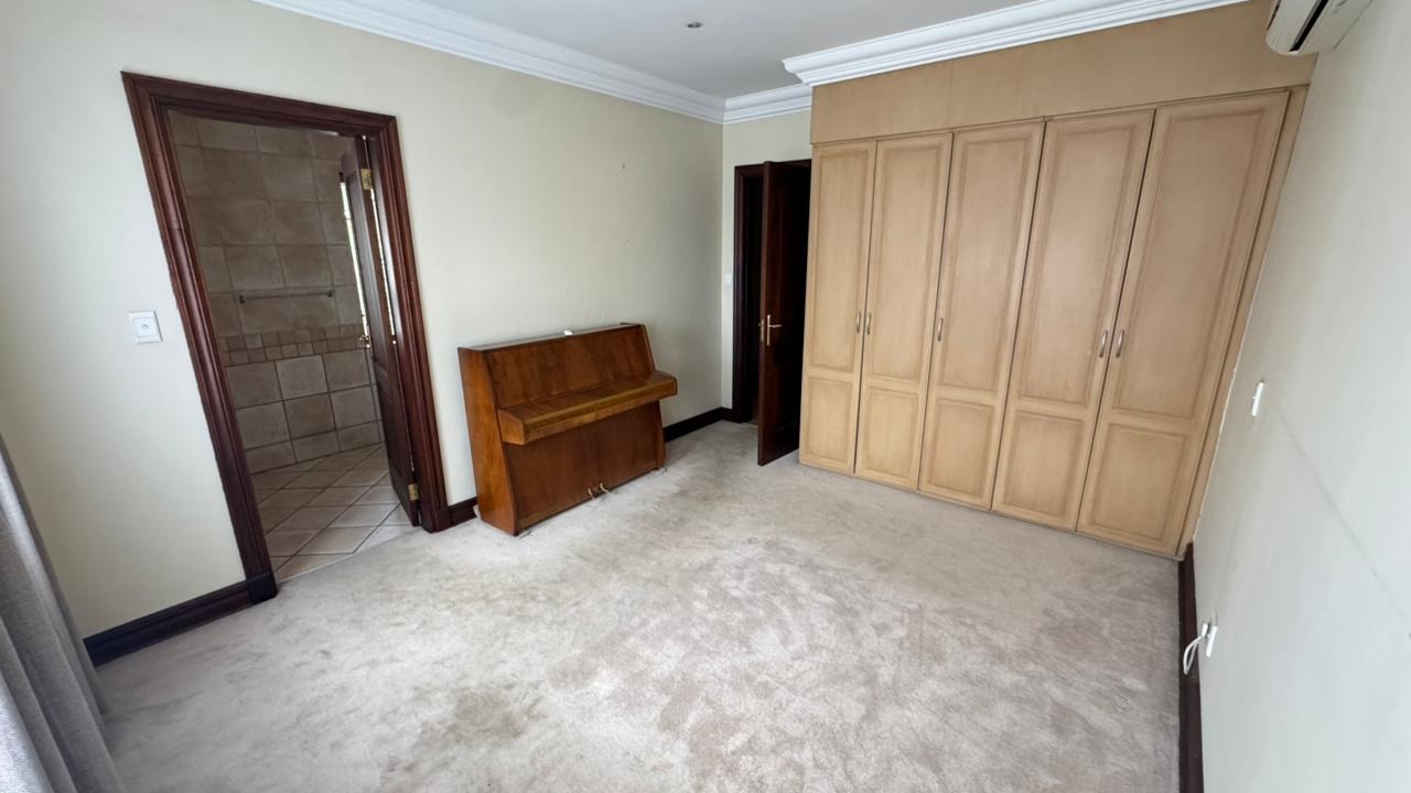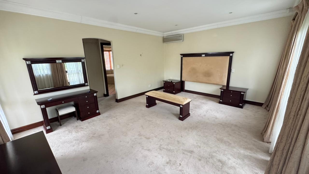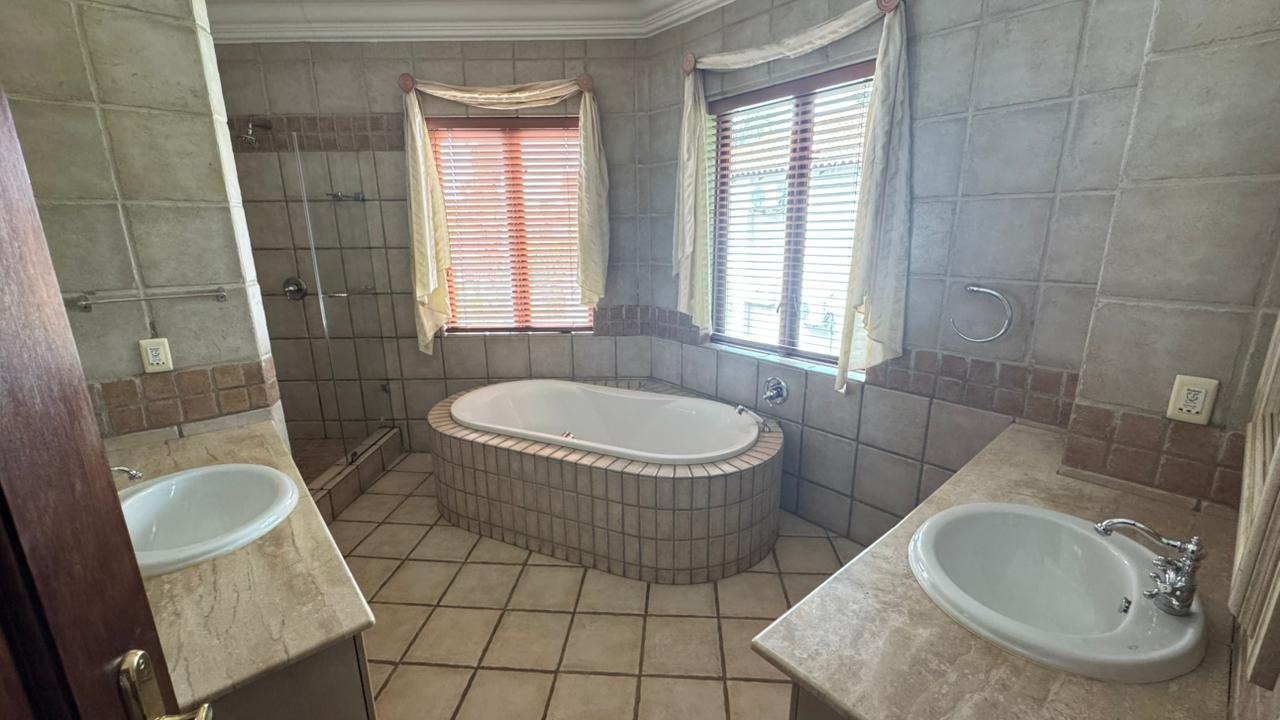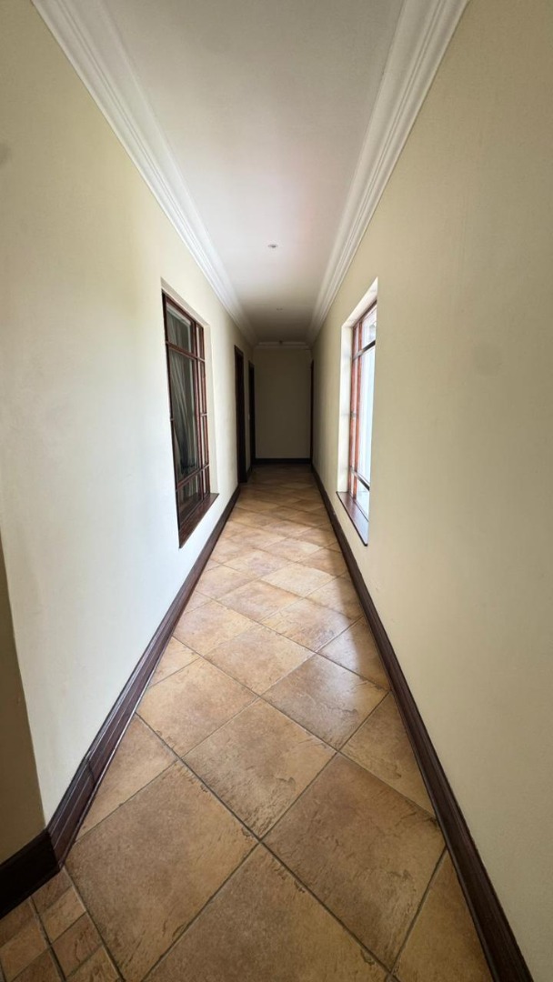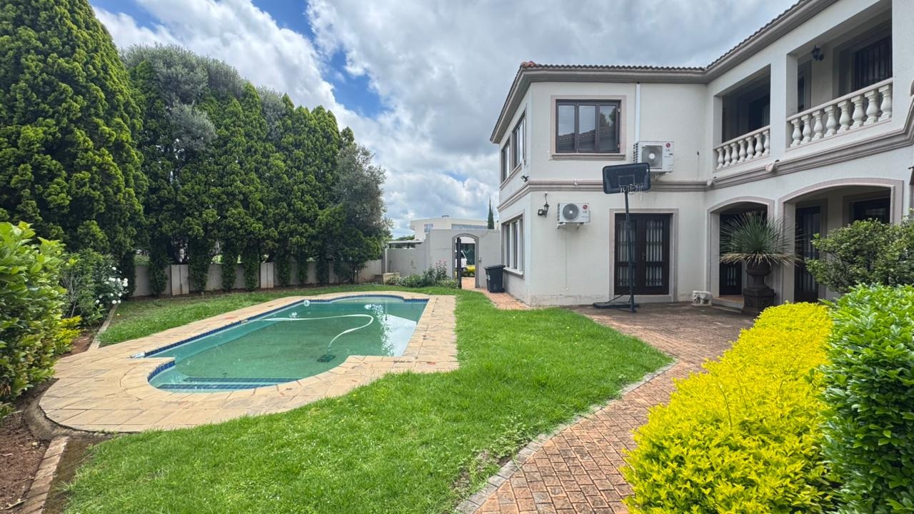 Discover an unparalleled lifestyle within the prestigious Woodhill Estate, Pretoria, where this magnificent 5-bedroom, 5.5-bathroom residence awaits its next discerning tenant. Upon entry, a grand foyer with soaring ceilings and an ornate wrought iron staircase sets a tone of sophisticated elegance. The expansive 650 sqm interior boasts three luxurious lounges, two formal dining areas, and a dedicated family TV room, all featuring a blend of polished hardwood and elegant tiled flooring, complemented by architectural archways and crown molding. A well-appointed kitchen with a pantry and a private study cater to every need. Designed for grand living and entertaining, this unfurnished home offers ample space for families or professionals to personalise. Enjoy the private swimming pool, built-in braai, and a meticulously maintained garden from the comfort of your patio or multiple balconies. Practical amenities include four garages, staff quarters with outside toilets, a laundry room, and generous storage. Residing within a premier golf and country club estate, residents benefit from exclusive access to a gym, golf course, clubhouse, squash, and tennis courts. Security is paramount, with 24-hour surveillance, CCTV, access gates, security gates, and burglar bars ensuring peace of mind. Modern conveniences such as fibre connectivity and a battery inverter provide seamless, uninterrupted living. Woodhill offers an exclusive, secure environment, renowned for its championship golf course and family-friendly amenities, making it one of Pretoria's most sought-after addresses. Key Features: * 5 Bedrooms, 5.5 Bathrooms (3 En-suite) * 4 Garages & Additional Parking * Private Swimming Pool & Built-in Braai * Access to Golf Course, Gym, Tennis & Squash Courts * 24-Hour Security Estate with CCTV * Fibre Connectivity & Battery Inverter * Dedicated Study & Staff Quarters * Multiple Lounges & Dining Areas