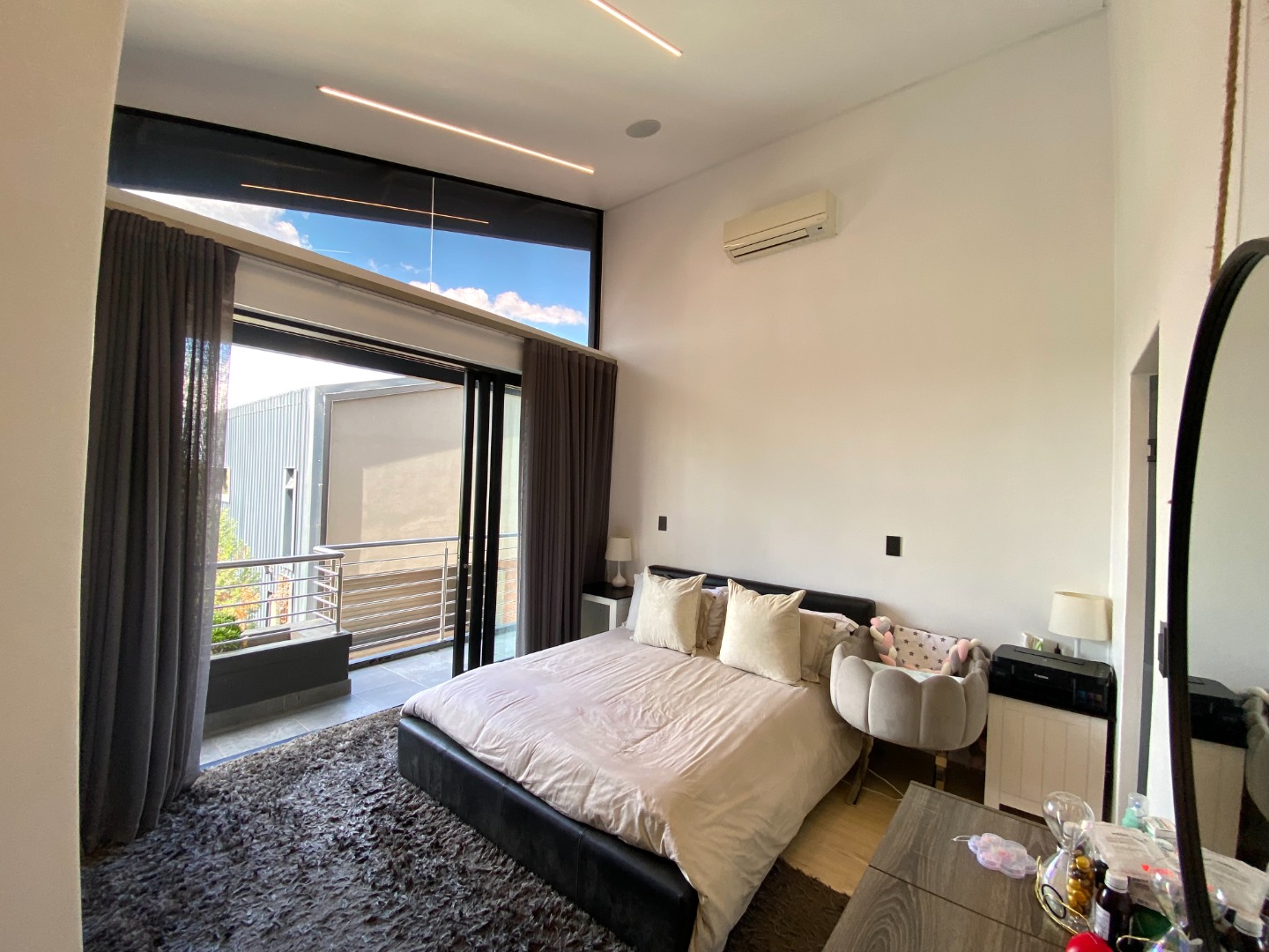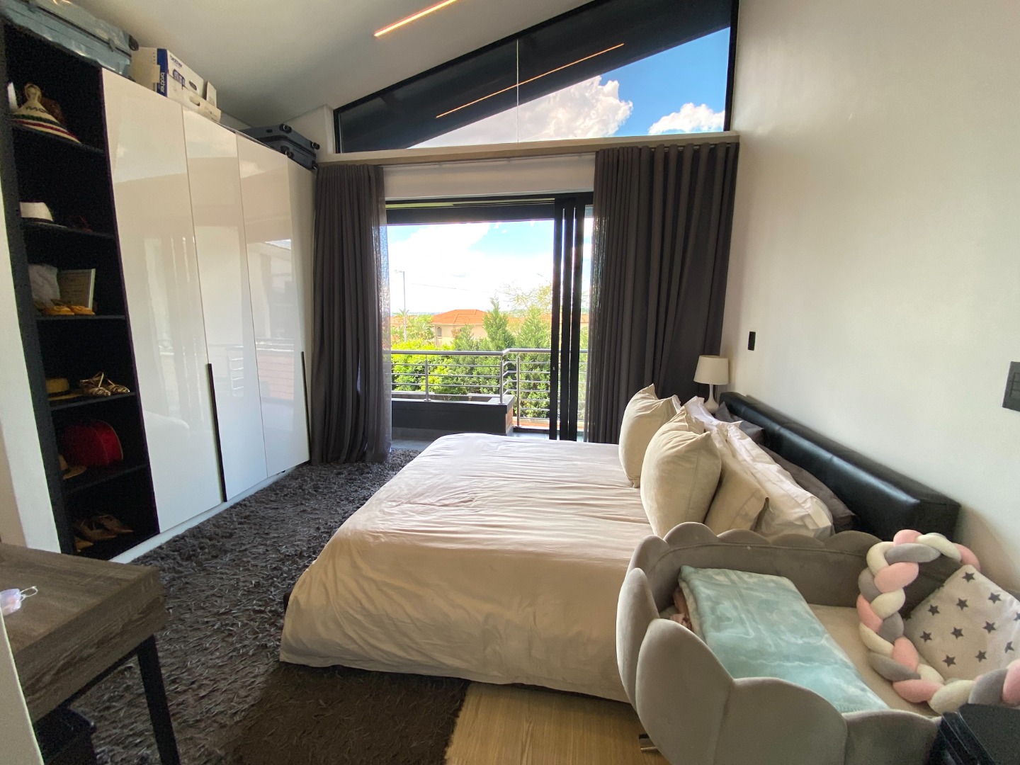 The sleeping quarters are equally impressive, with three generously sized bedrooms, each enjoying abundant natural light and equipped with air-conditioning. The master suite features an en suite bathroom with a full setup, offering a private retreat. All three bedrooms have access to a private balcony, adding to the sense of space and tranquility. A shared bathroom is available for the other two bedrooms, and a cozy pyjama lounge with its own balcony provides the perfect space to unwind in privacy.