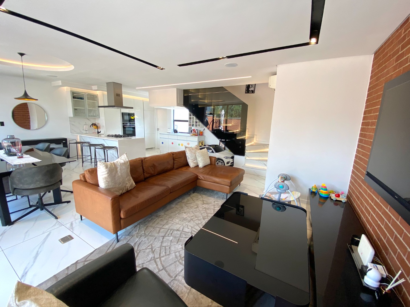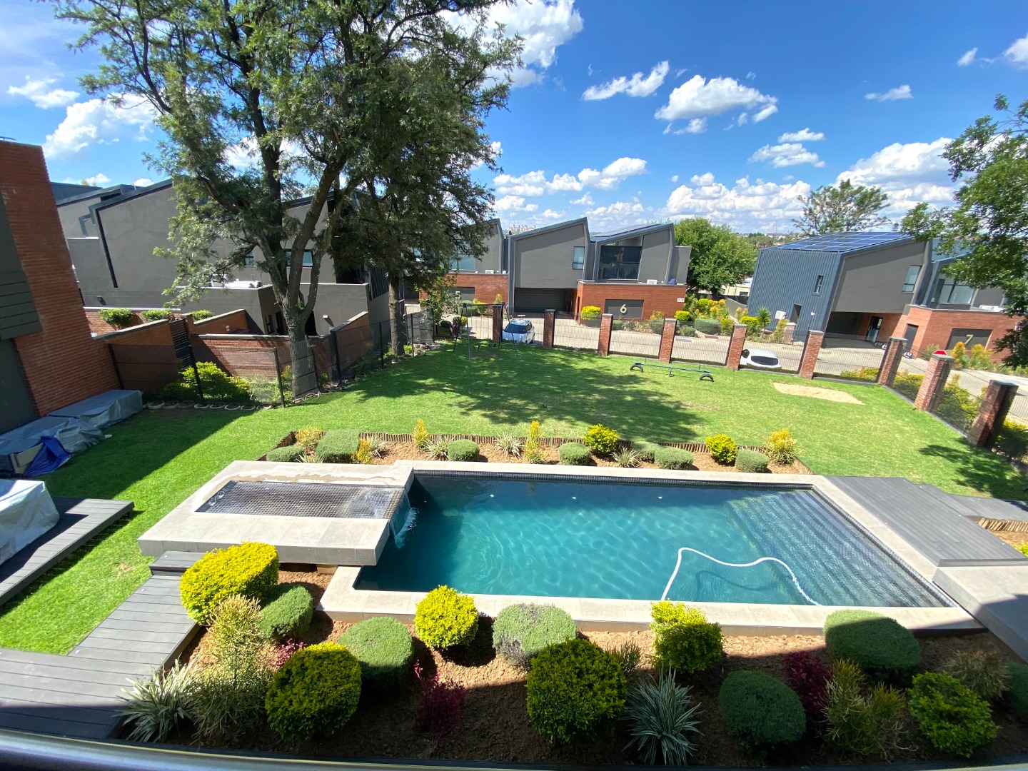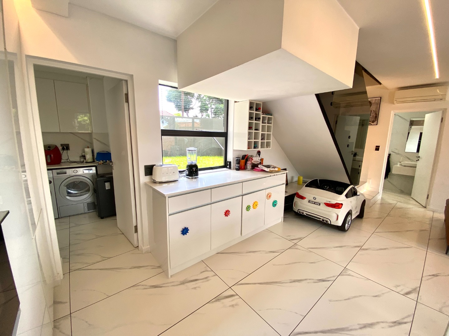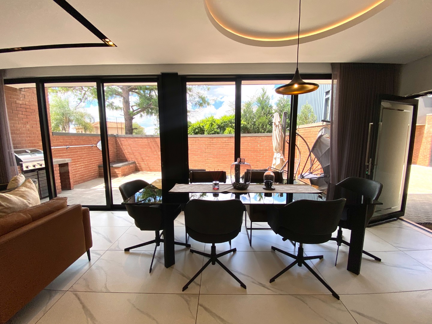 This impressive property for rent is designed for modern living, starting with a spacious and open-plan living area. The lounge is air-conditioned for year-round comfort and features automated curtains for added convenience. A cozy gas fireplace enhances the ambiance, perfect for those cooler evenings. The kitchen seamlessly flows into the living and dining areas, offering a gas stove, ample storage, and a separate scullery with space for three appliances. The outdoor space complements the home with a splash pool and built-in gas braai, ideal for entertaining family and friends. A guest toilet and a two-car garage add to the practicality of this beautiful home. The property also benefits from solar power and a backup inverter, making it both energy-efficient and sustainable.