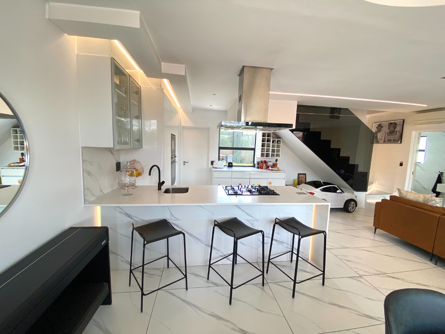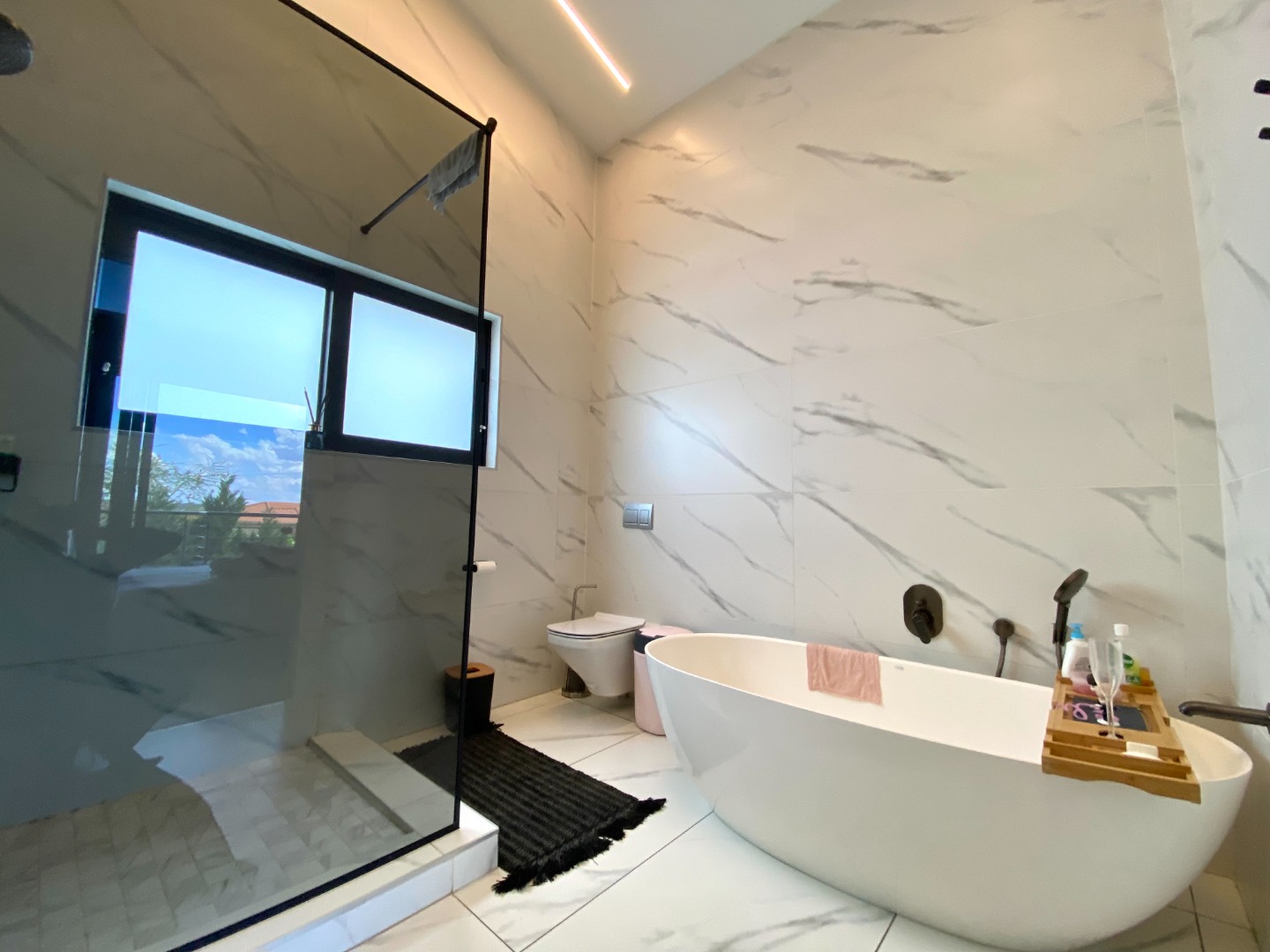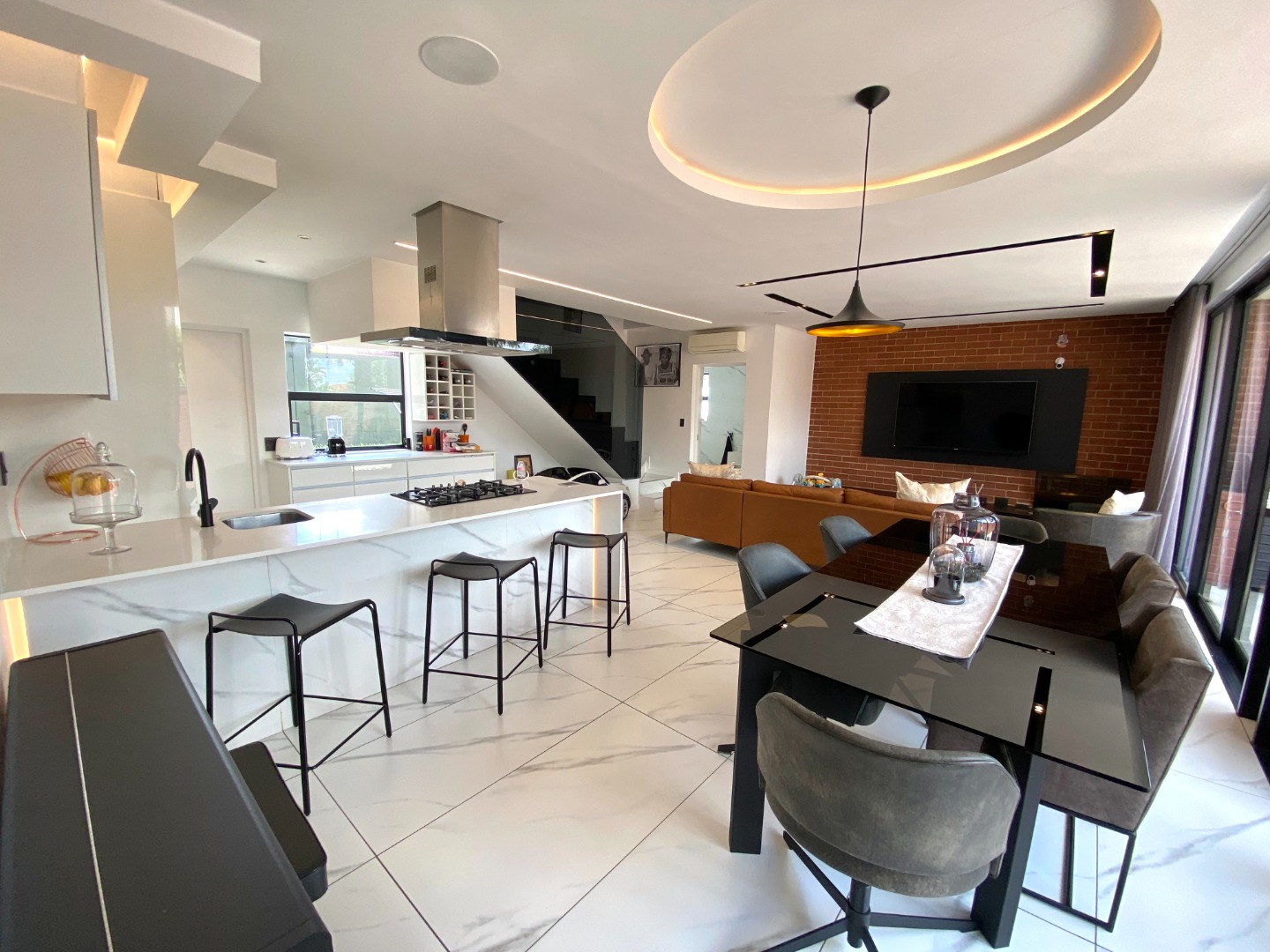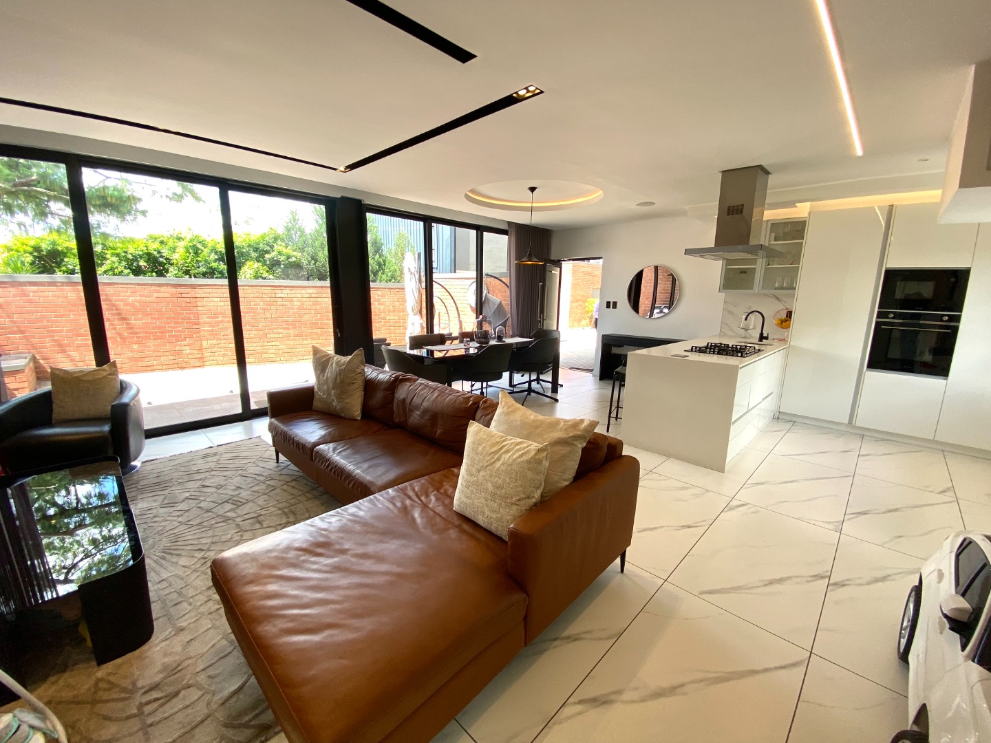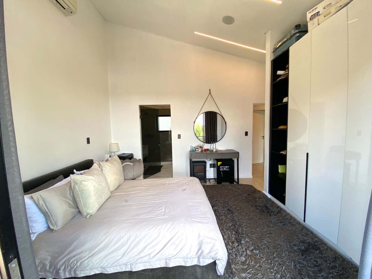 This impressive property for rent is designed for modern living, starting with a spacious and open-plan living area. The lounge is air-conditioned for year-round comfort and features automated curtains for added convenience. A cozy gas fireplace enhances the ambiance, perfect for those cooler evenings. The kitchen seamlessly flows into the living and dining areas, offering a gas stove, ample storage, and a separate scullery with space for three appliances. The outdoor space complements the home with a splash pool and built-in gas braai, ideal for entertaining family and friends. A guest toilet and a two-car garage add to the practicality of this beautiful home. The property also benefits from solar power and a backup inverter, making it both energy-efficient and sustainable.