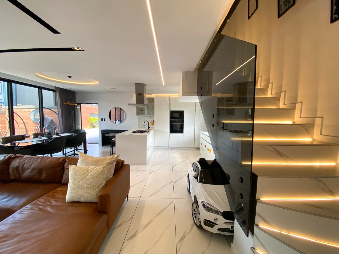 This impressive property for rent is designed for modern living, starting with a spacious and open-plan living area. The lounge is air-conditioned for year-round comfort and features automated curtains for added convenience. A cozy gas fireplace enhances the ambiance, perfect for those cooler evenings. The kitchen seamlessly flows into the living and dining areas, offering a gas stove, ample storage, and a separate scullery with space for three appliances. The outdoor space complements the home with a splash pool and built-in gas braai, ideal for entertaining family and friends. A guest toilet and a two-car garage add to the practicality of this beautiful home. The property also benefits from solar power and a backup inverter, making it both energy-efficient and sustainable.