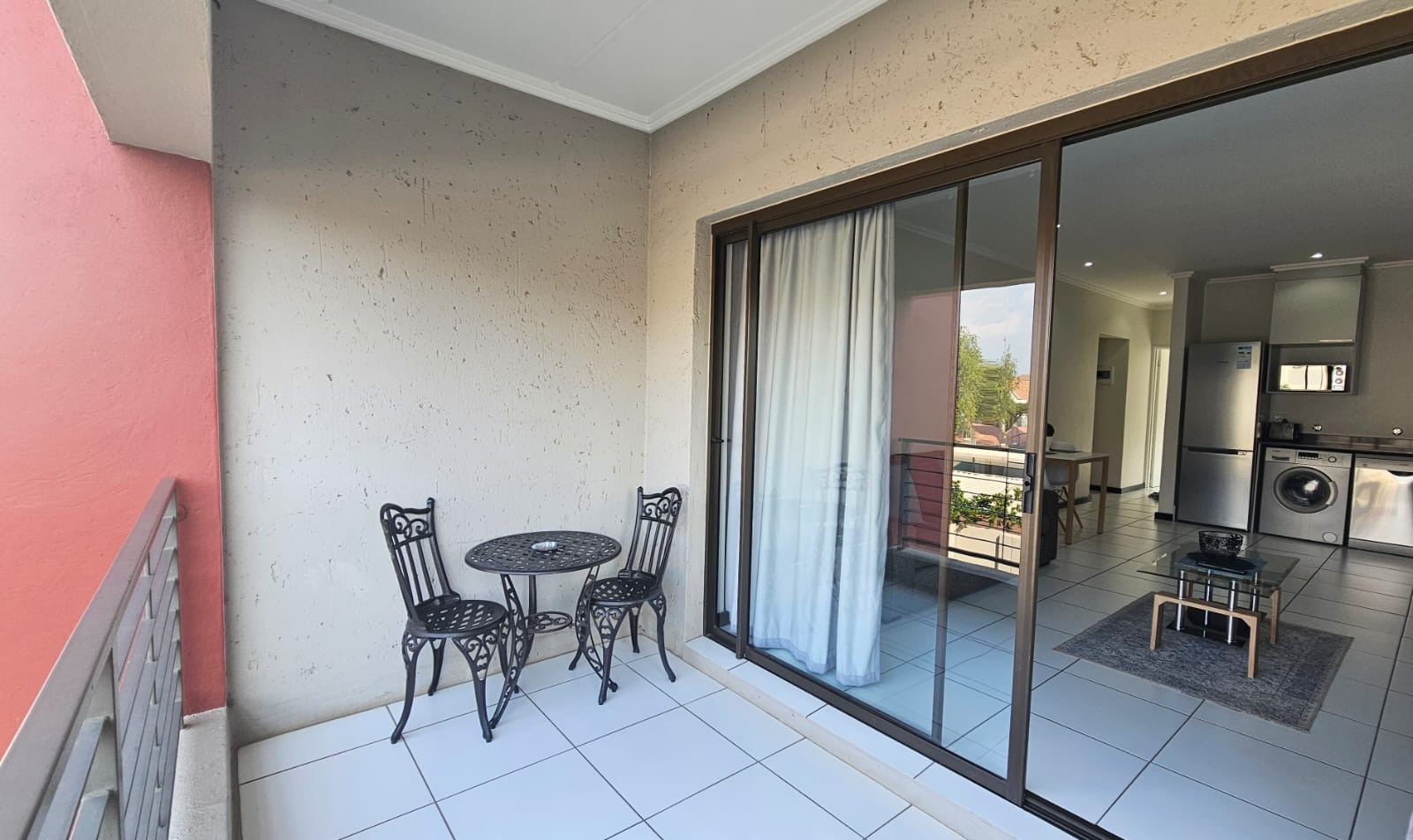 Enjoy the outdoors on your private balcony, accessible via large sliding glass doors from the living area. This tiled space is perfect for a bistro set, offering a tranquil spot to relax. The property includes one dedicated parking bay, adding to its practicality.