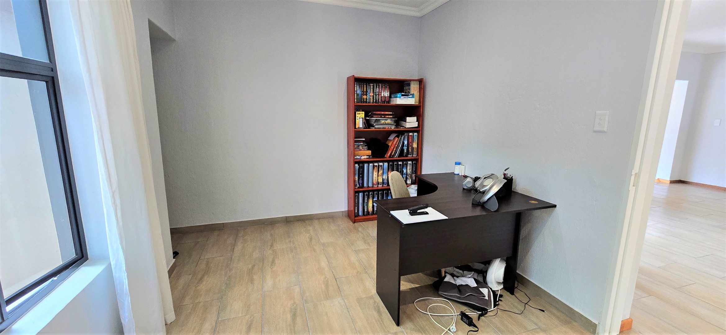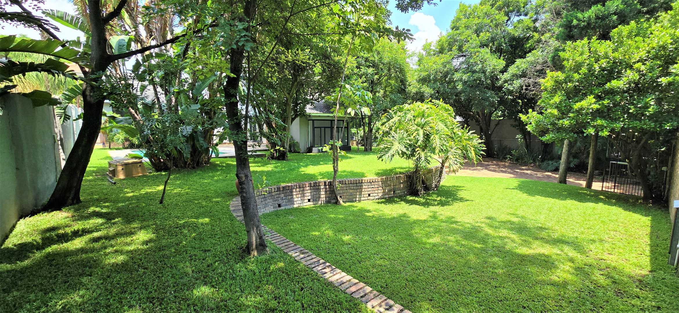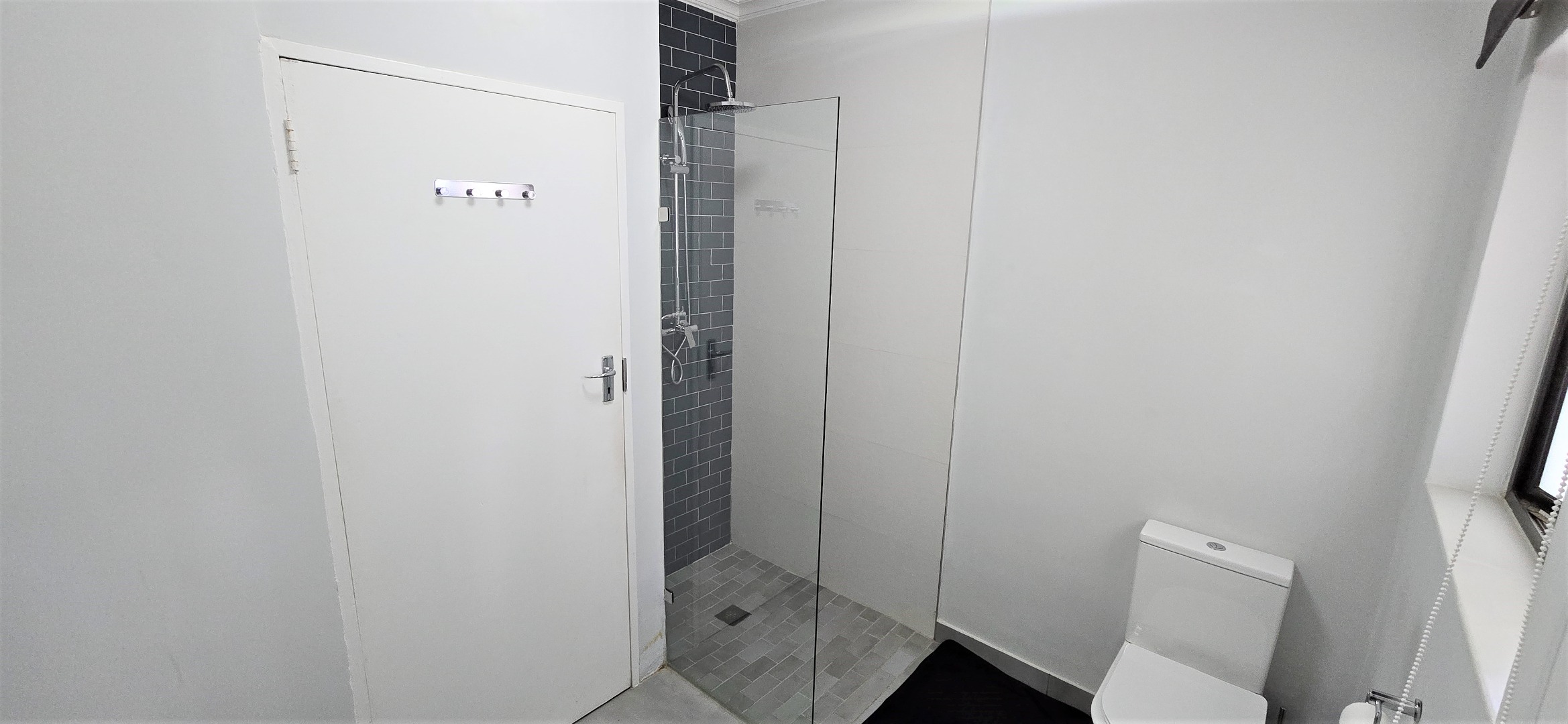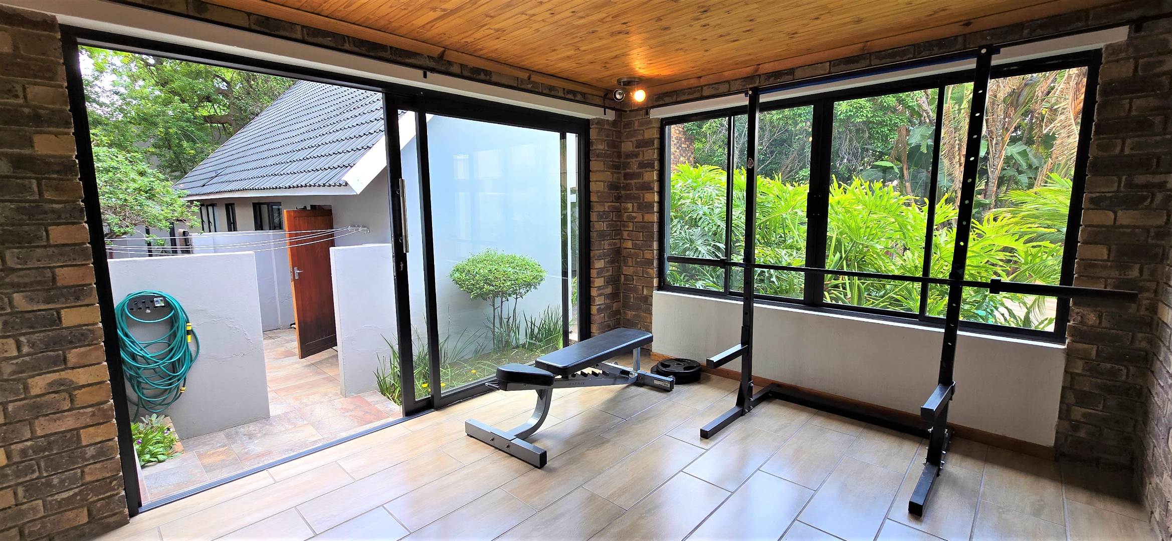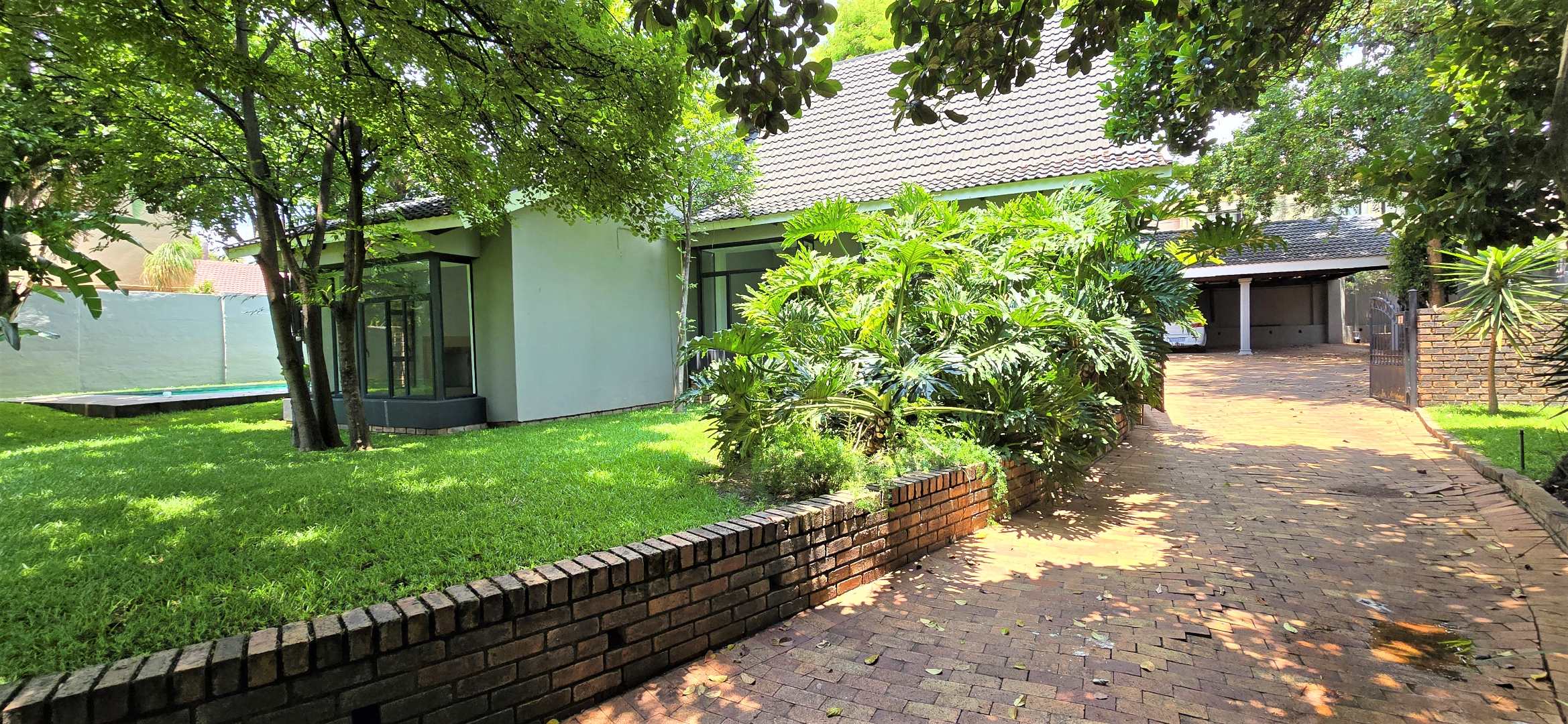 This inviting tropical home offers a spacious and modern living experience in the highly sought-after suburb of Lonehill. The main residence features two well-appointed bedrooms and two bathrooms, complemented by a separate back building that includes a third bedroom and bathroom—ideal for guests, a home office, or a private flatlet. Designed with a stylish open-plan, split-level layout, the home provides distinct yet connected living zones that flow seamlessly between the dining room, and family TV room. The modern kitchen stands out with its two-tone cabinetry, light countertops, large island with a gas hob and built-in oven, and ample storage space. Throughout the living areas, durable tiled flooring and recessed lighting enhance the home’s modern appeal.