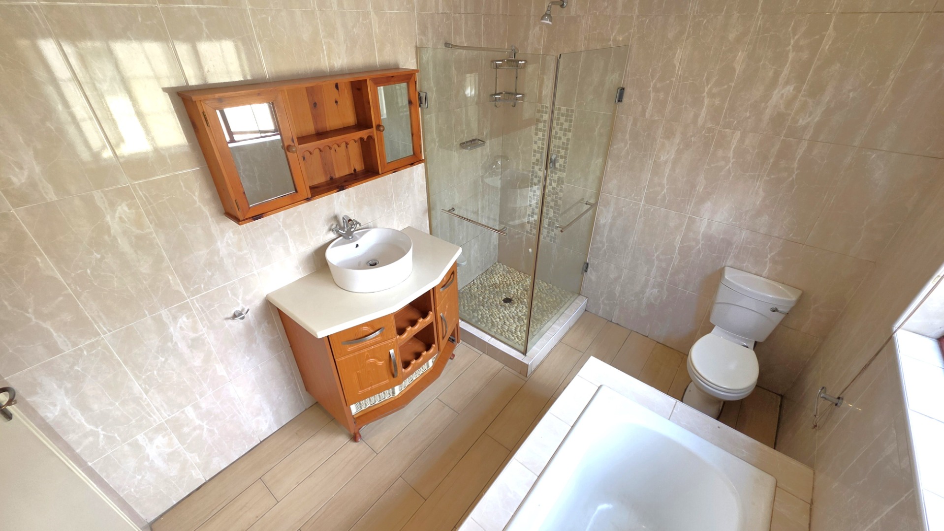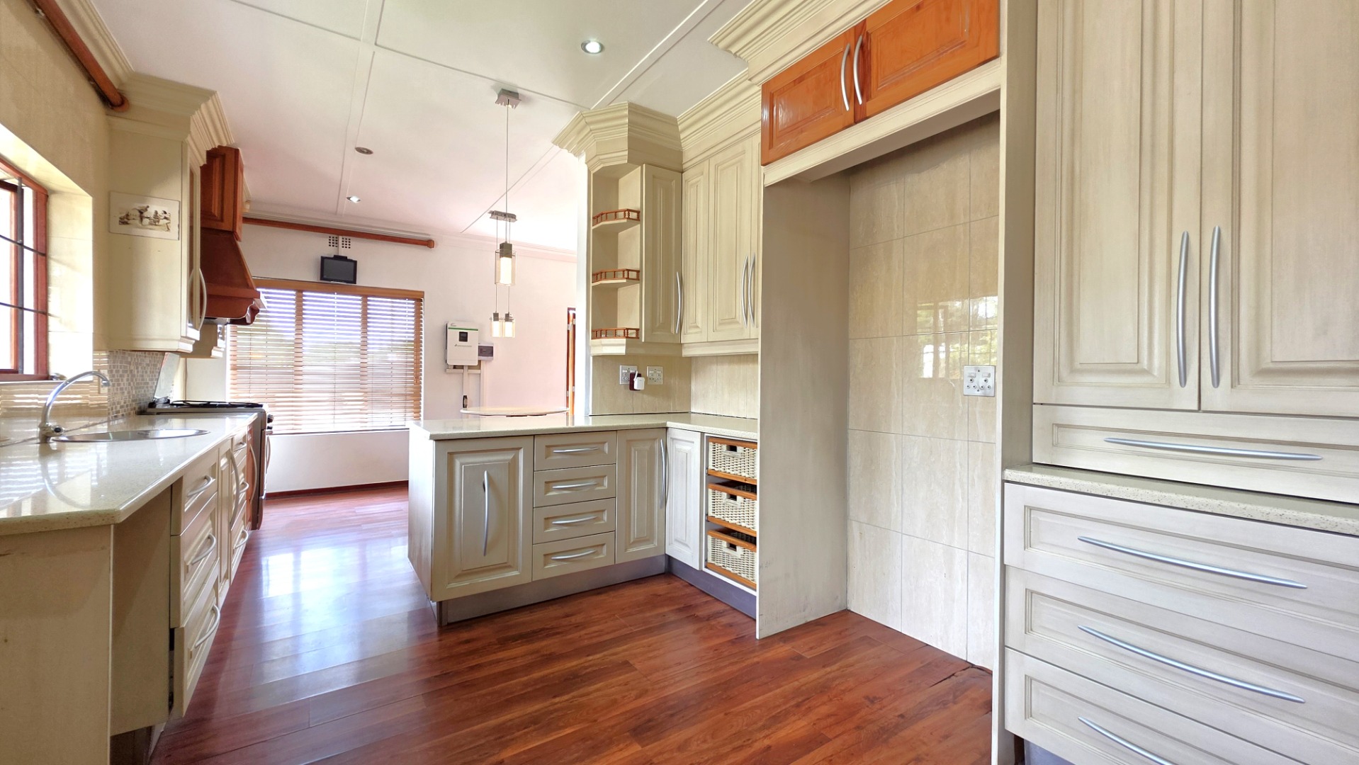 This spacious and well-designed property offers a seamless blend of comfort and functionality, beginning with a large open-plan living area that features a cozy fireplace, sizeable enough for a lounge and TV room... and flows effortlessly into the dining room and kitchen, creating an ideal space for both everyday living and entertaining. The home comprises four generously sized bedrooms, with the main bedroom boasting a full en suite bathroom, while the remaining bedrooms are serviced by a shared family bathroom and guest toilet, ensuring convenience for family and guests alike. Enhancing the indoor-outdoor lifestyle, one of the bedrooms / or study, as well as the lounge, opens directly onto the wrap-around garden, allowing for natural light and easy access to the outdoor space. The exterior of the property is equally impressive, featuring a swimming pool and a covered patio, perfect for relaxation and hosting gatherings.