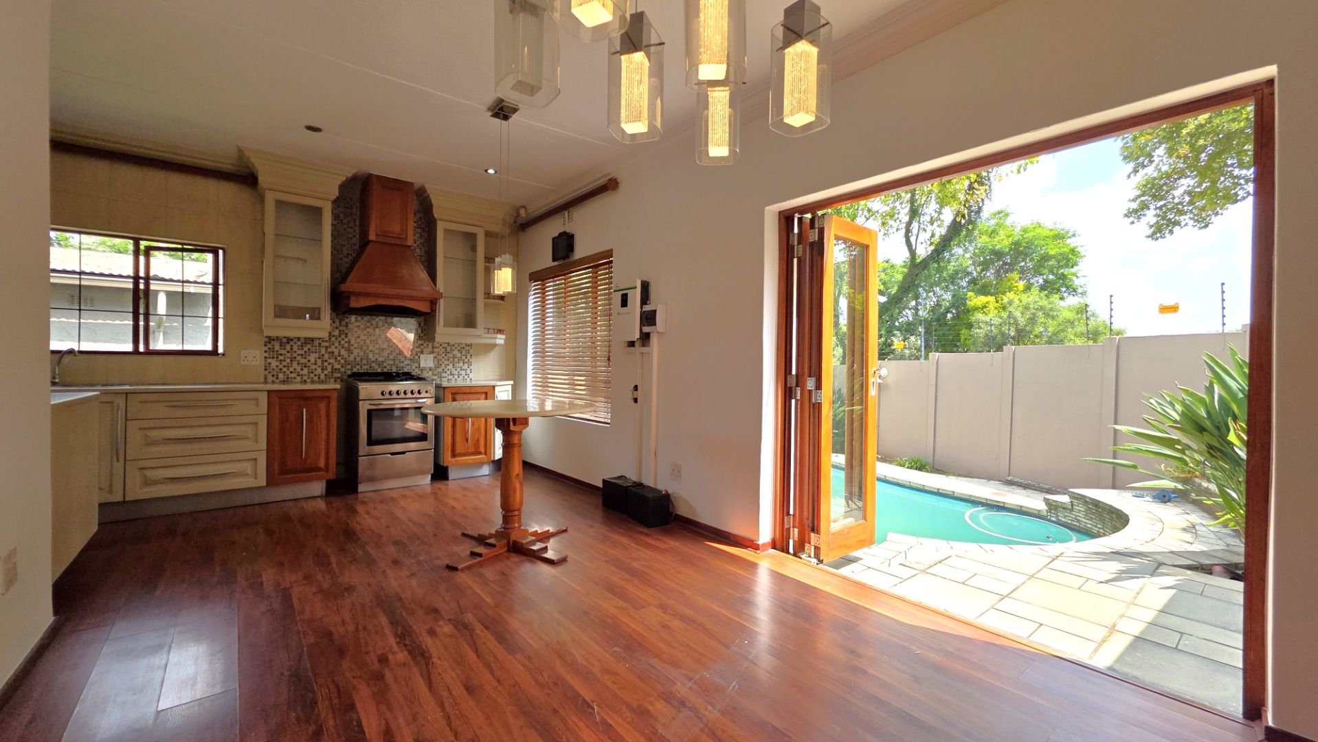 Additional features include a double garage providing secure parking, as well as a self-contained cottage equipped with a bedroom, bathroom, and kitchen area—ideal for extended family. The property is further supported by an inverter system, offering added reliability and peace of mind during power outages. Brilliantly located, incredibly close to Sandton CBD.