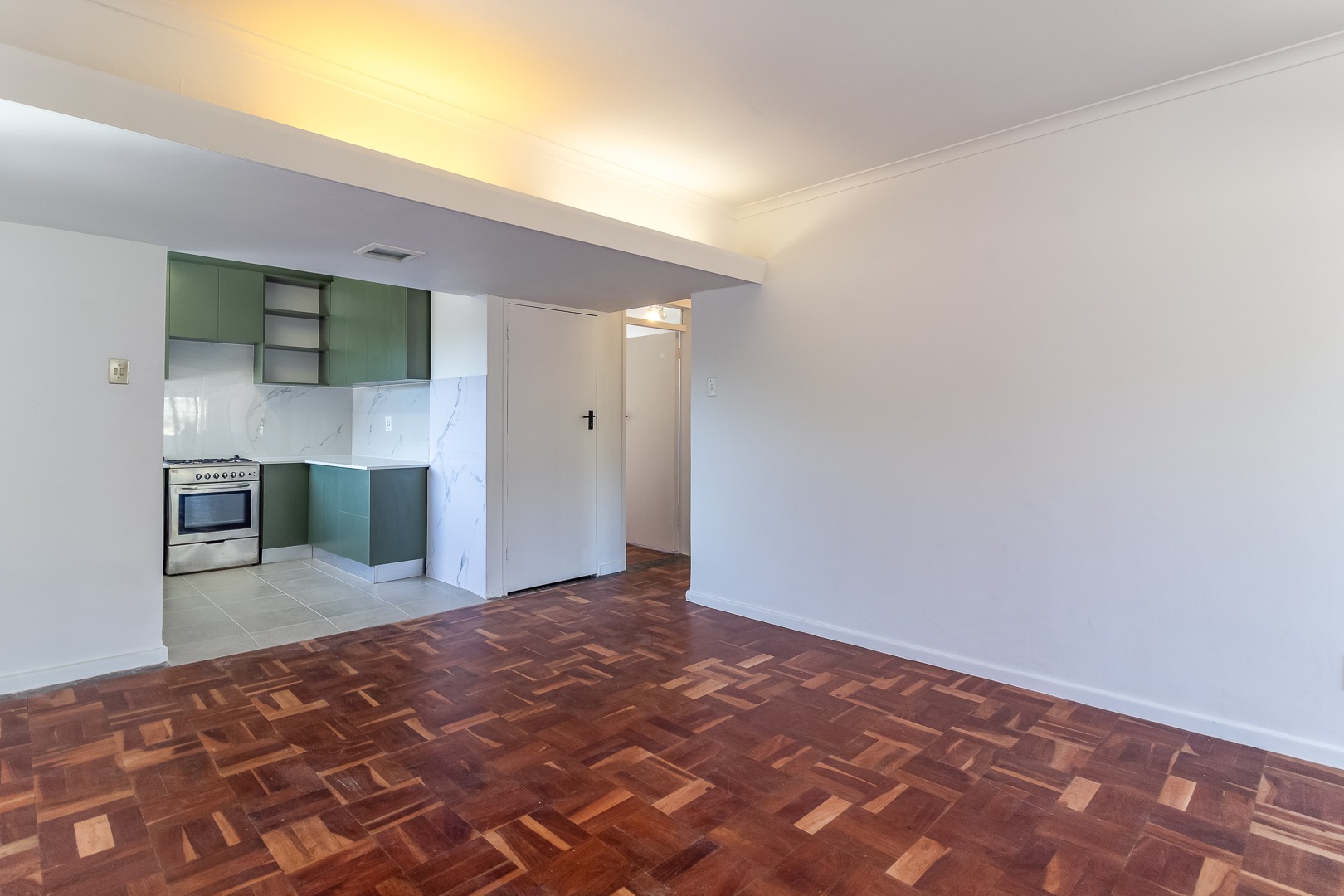 The unfurnished interior provides a blank canvas for personalisation, featuring a well-appointed kitchen equipped with a stove and oven, perfect for culinary enthusiasts. The open-plan lounge and dining room create an inviting atmosphere for relaxation and entertaining. Natural light fills the living spaces, enhancing the contemporary feel and offering a comfortable environment for everyday living.