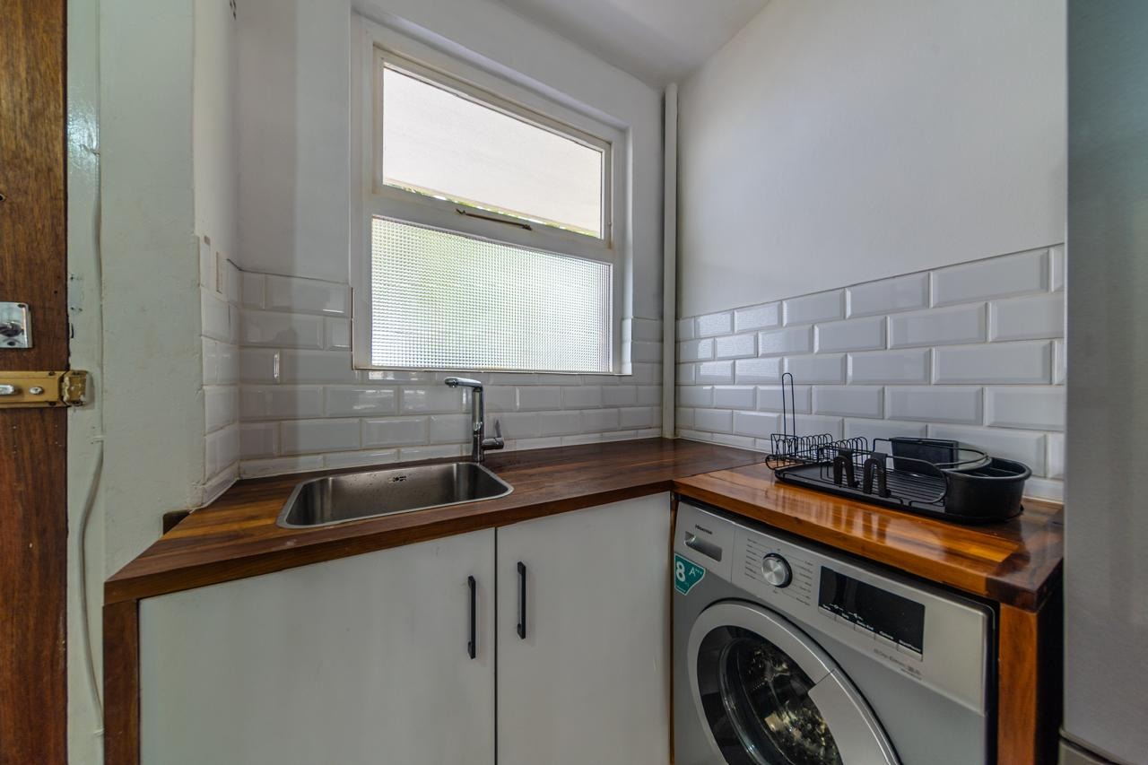 The apartment features a thoughtfully designed living space, complete with a comfortable built-in corner couch and comprehensive TV facilities, creating an inviting atmosphere. The full self-catering kitchen is equipped with modern appliances, including a washing machine and portable AC, ensuring convenience. A stylish breakfast bar provides a perfect spot for casual dining, complemented by scenic views.