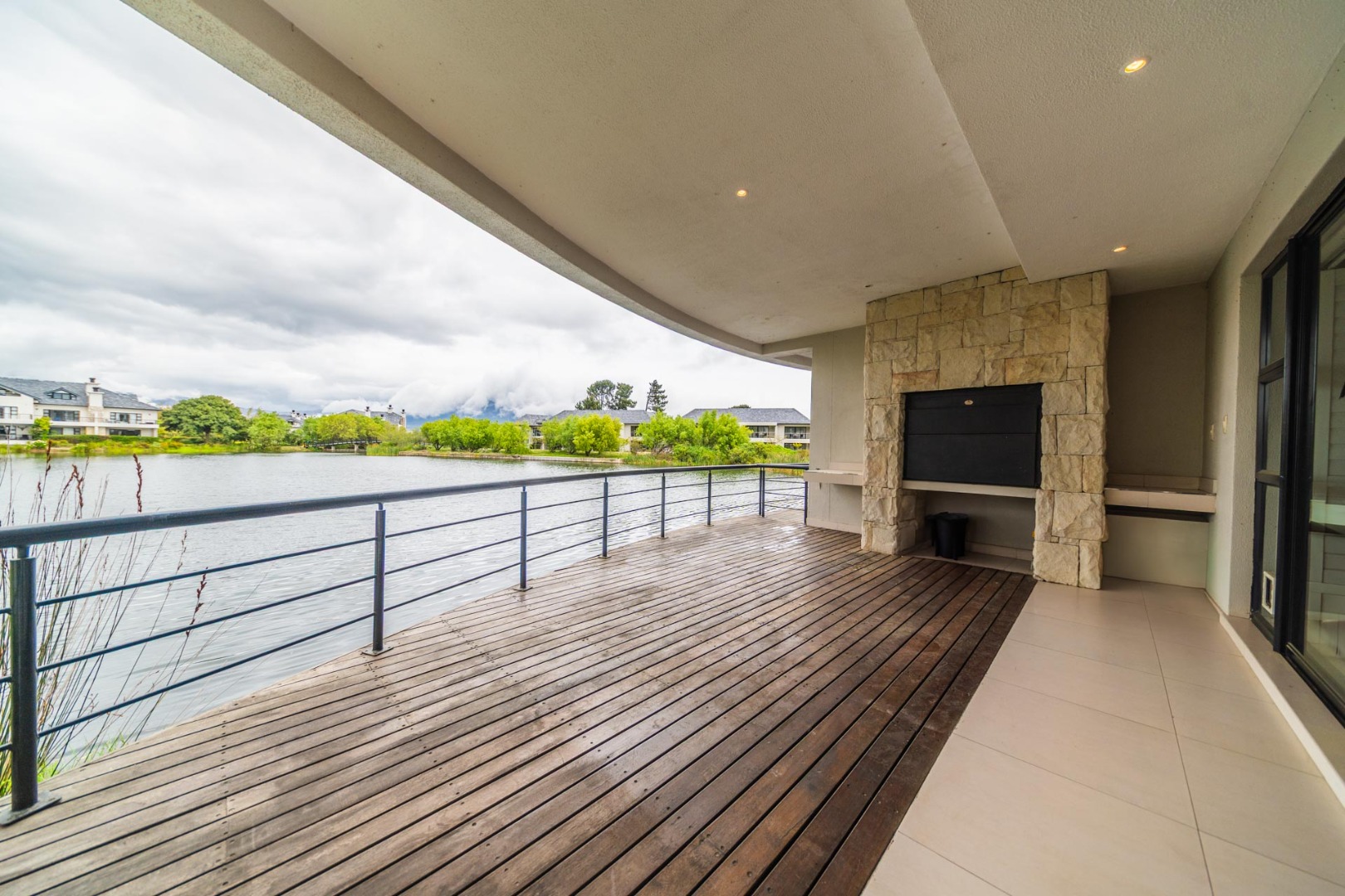 Sliding doors leading to a generous covered patio with built-in braai and spectacular lake views