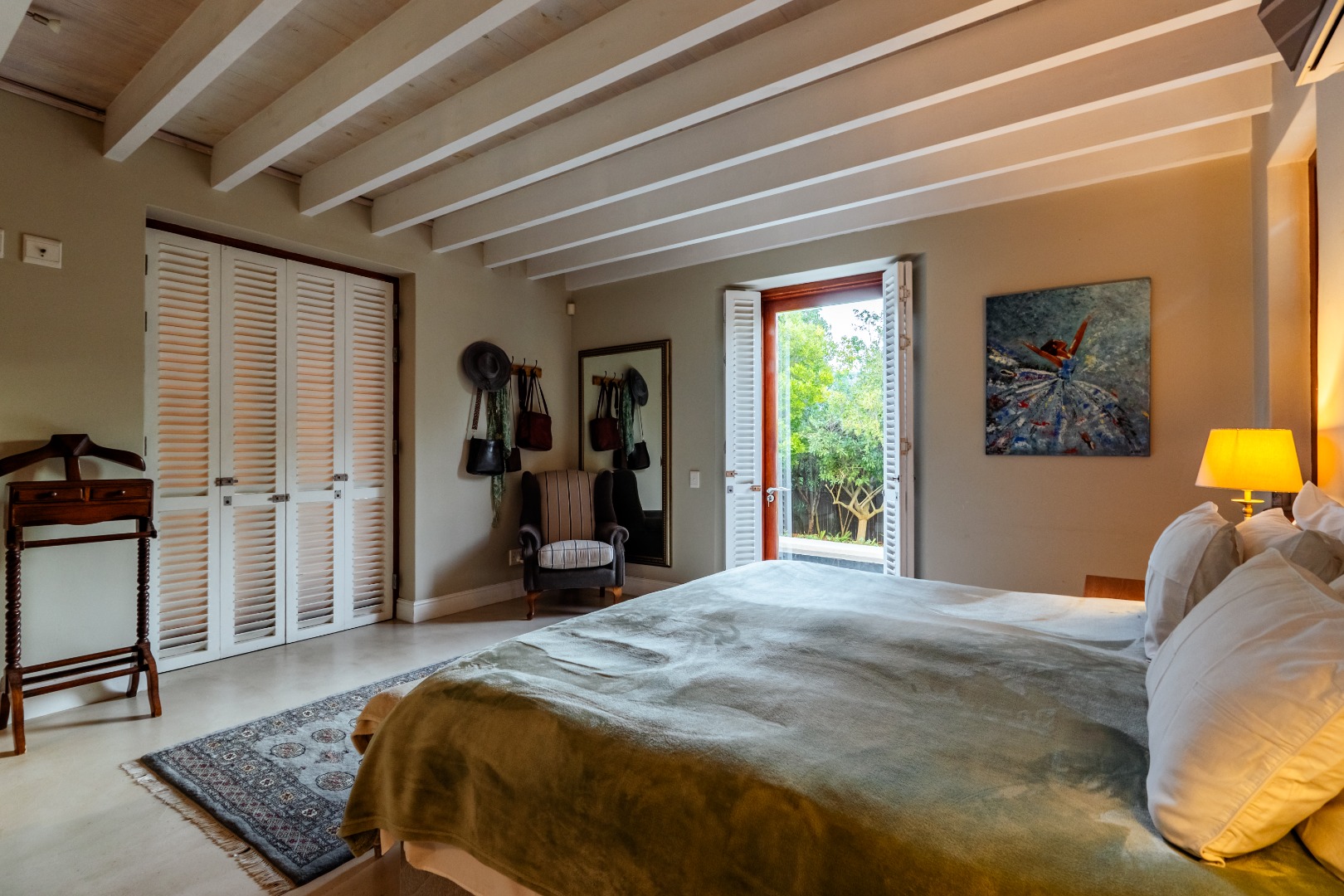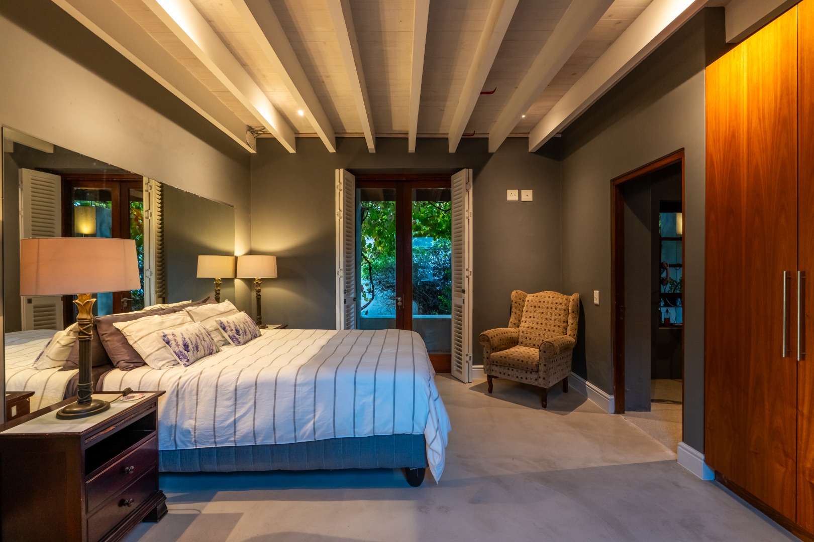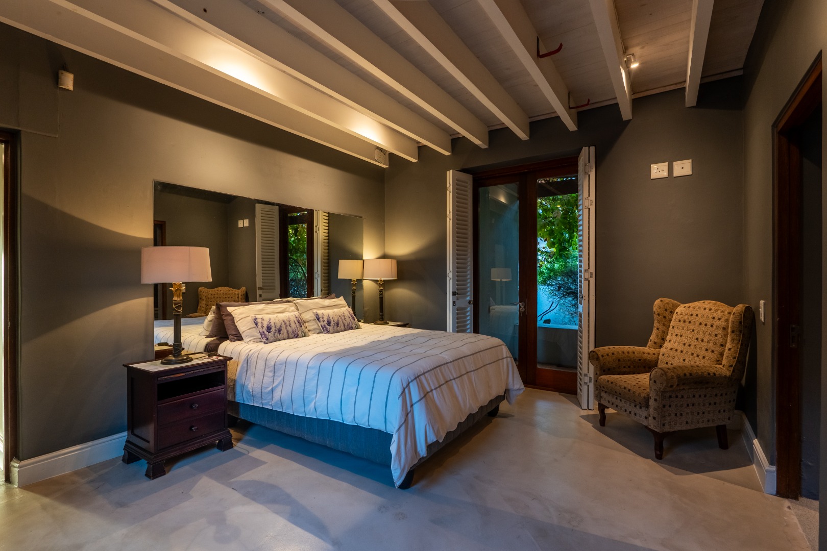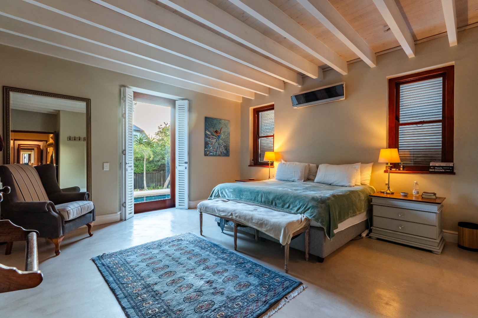 The accommodation is generous and thoughtfully laid out, offering five spacious bedrooms and four bathrooms, including three en-suite. The main suite is a private sanctuary, complete with a walk-in closet, outdoor shower, and its own sauna, creating a true retreat within the home. Additional features such as a separate flatlet and domestic quarters provide flexibility for extended family or guests.