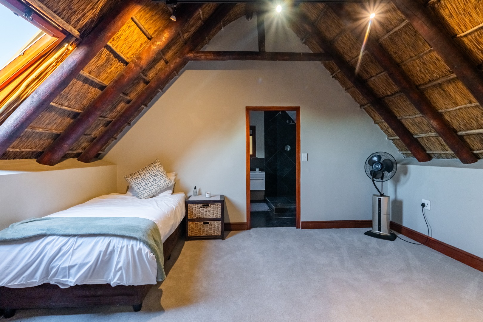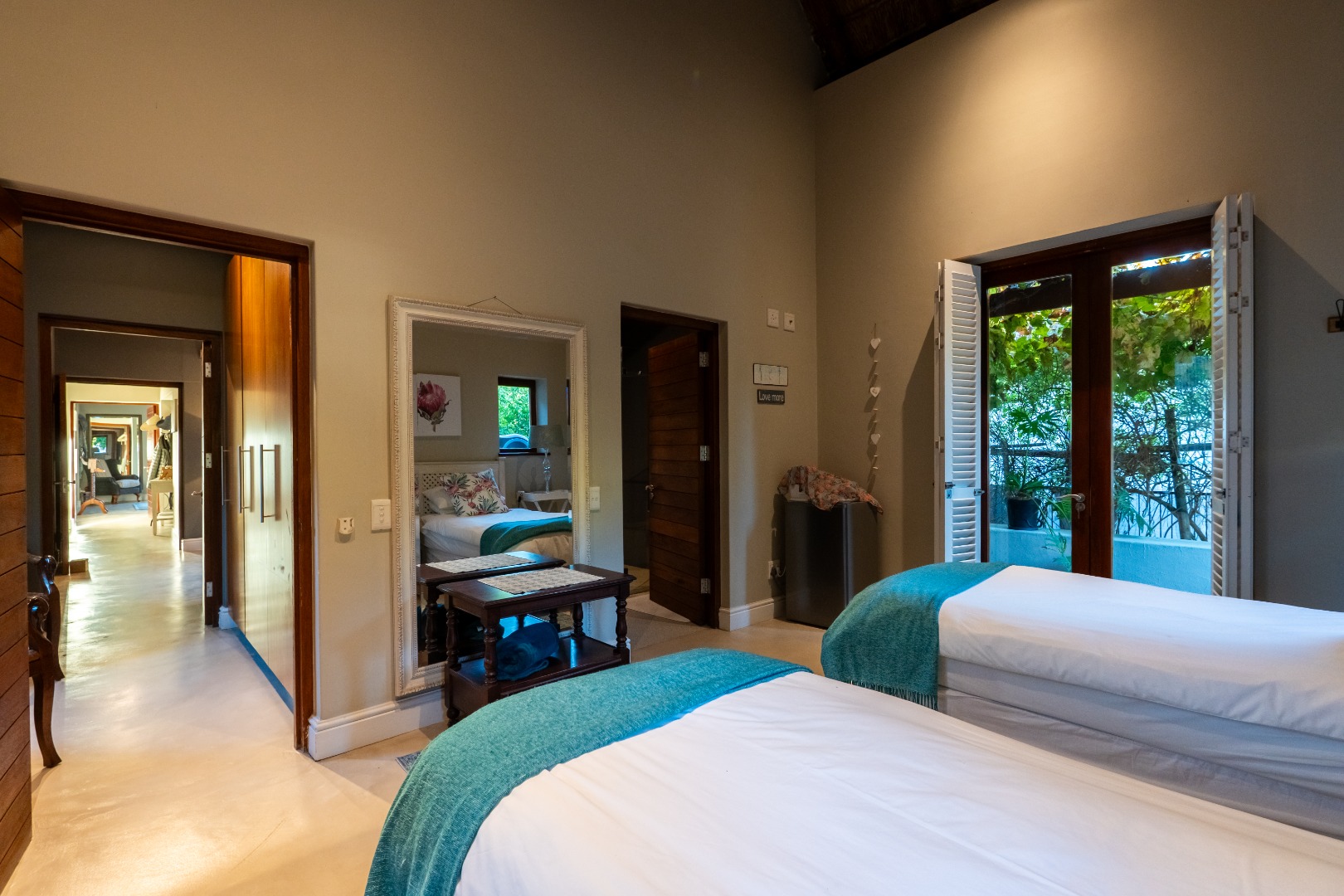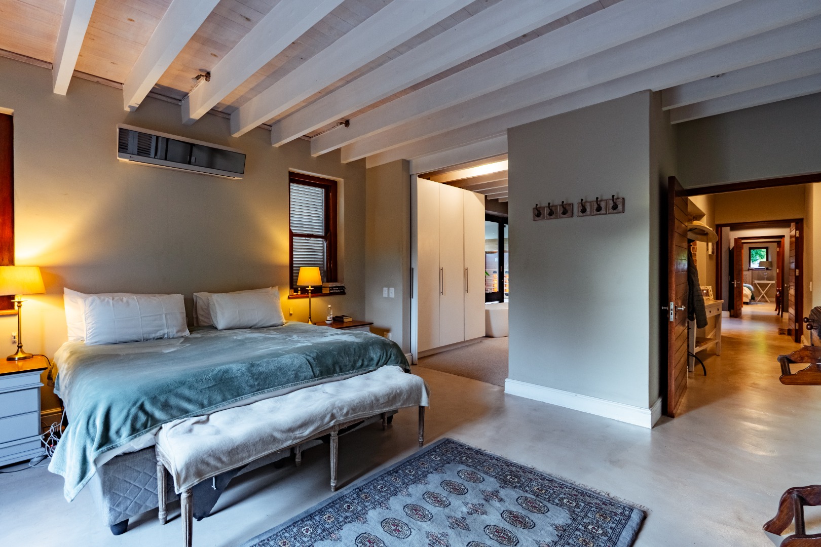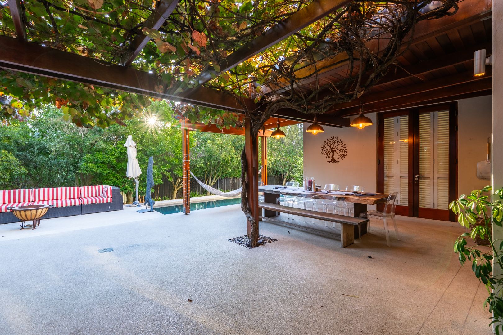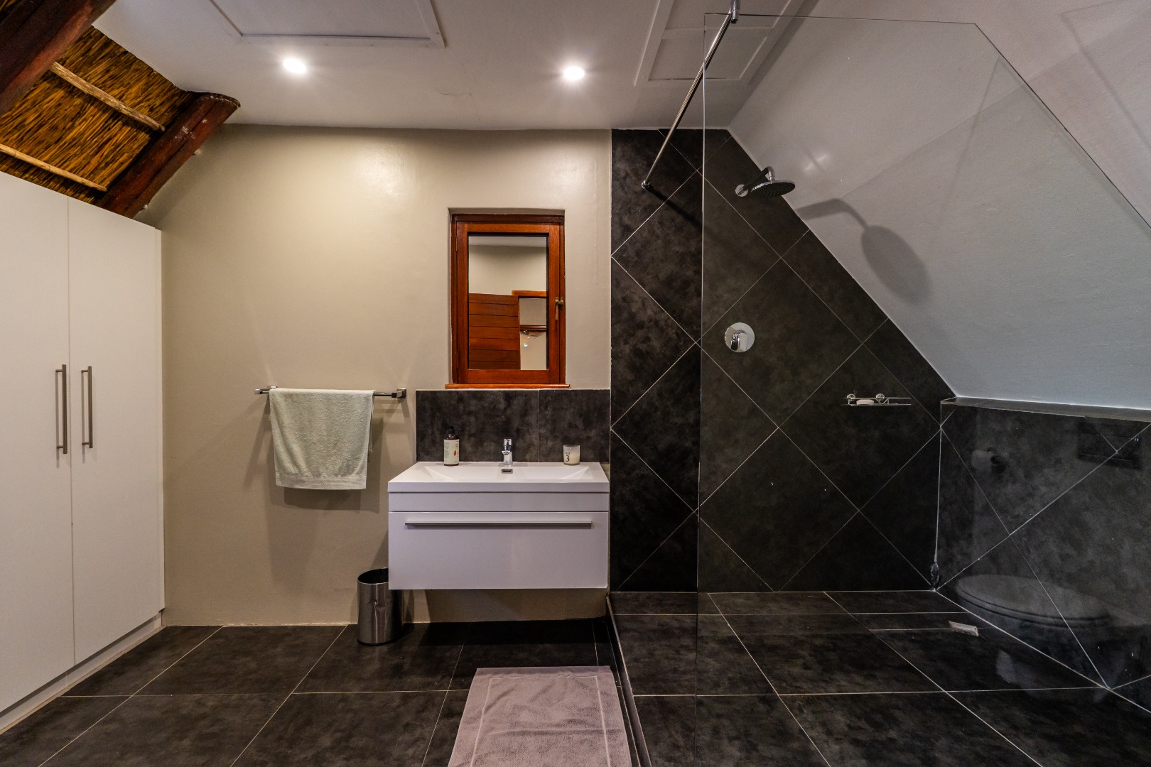 The accommodation is generous and thoughtfully laid out, offering five spacious bedrooms and four bathrooms, including three en-suite. The main suite is a private sanctuary, complete with a walk-in closet, outdoor shower, and its own sauna, creating a true retreat within the home. Additional features such as a separate flatlet and domestic quarters provide flexibility for extended family or guests.