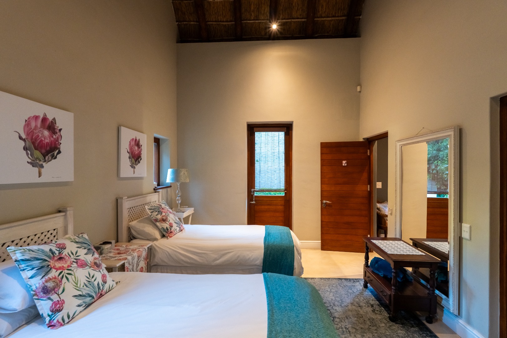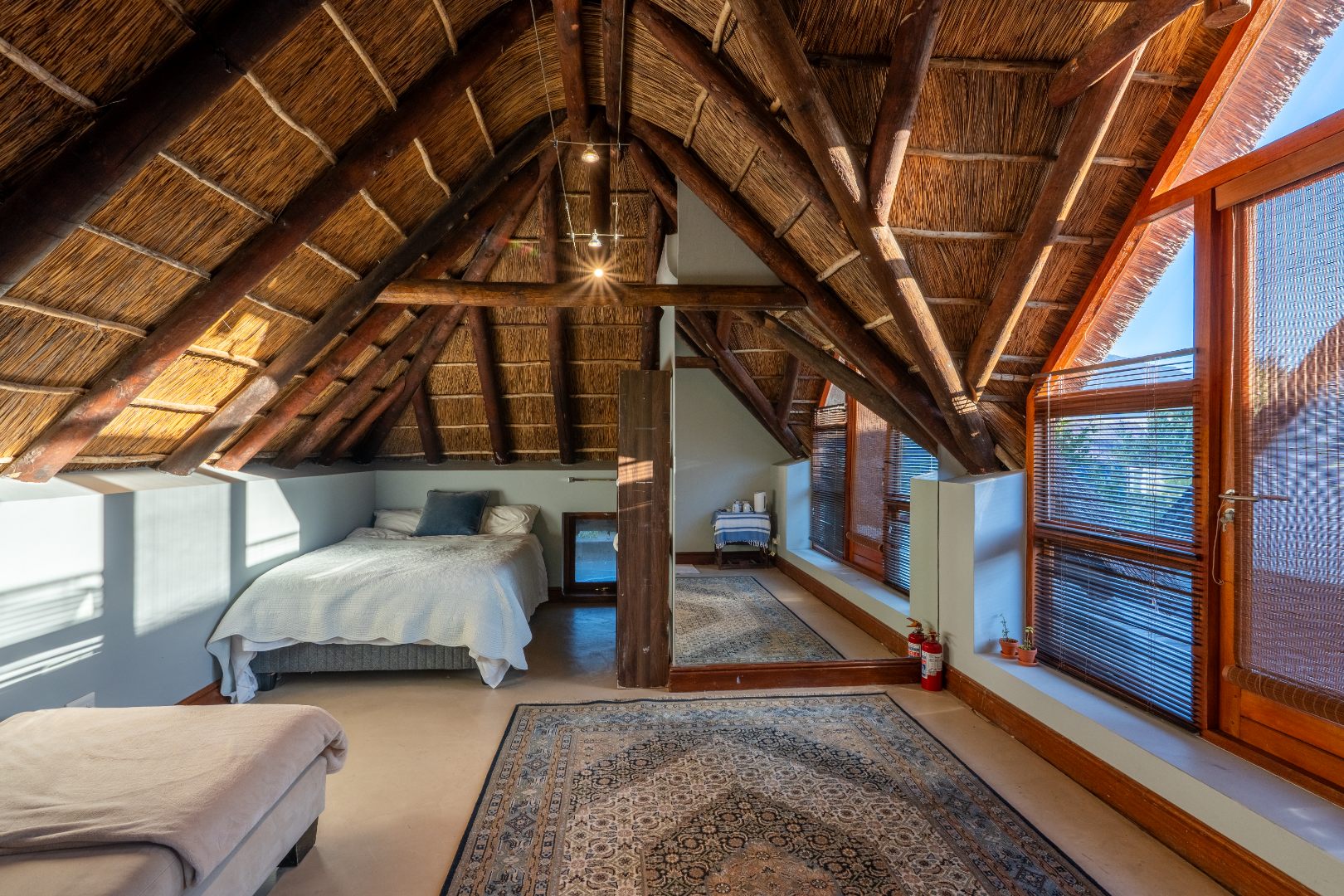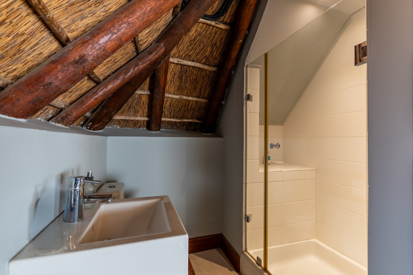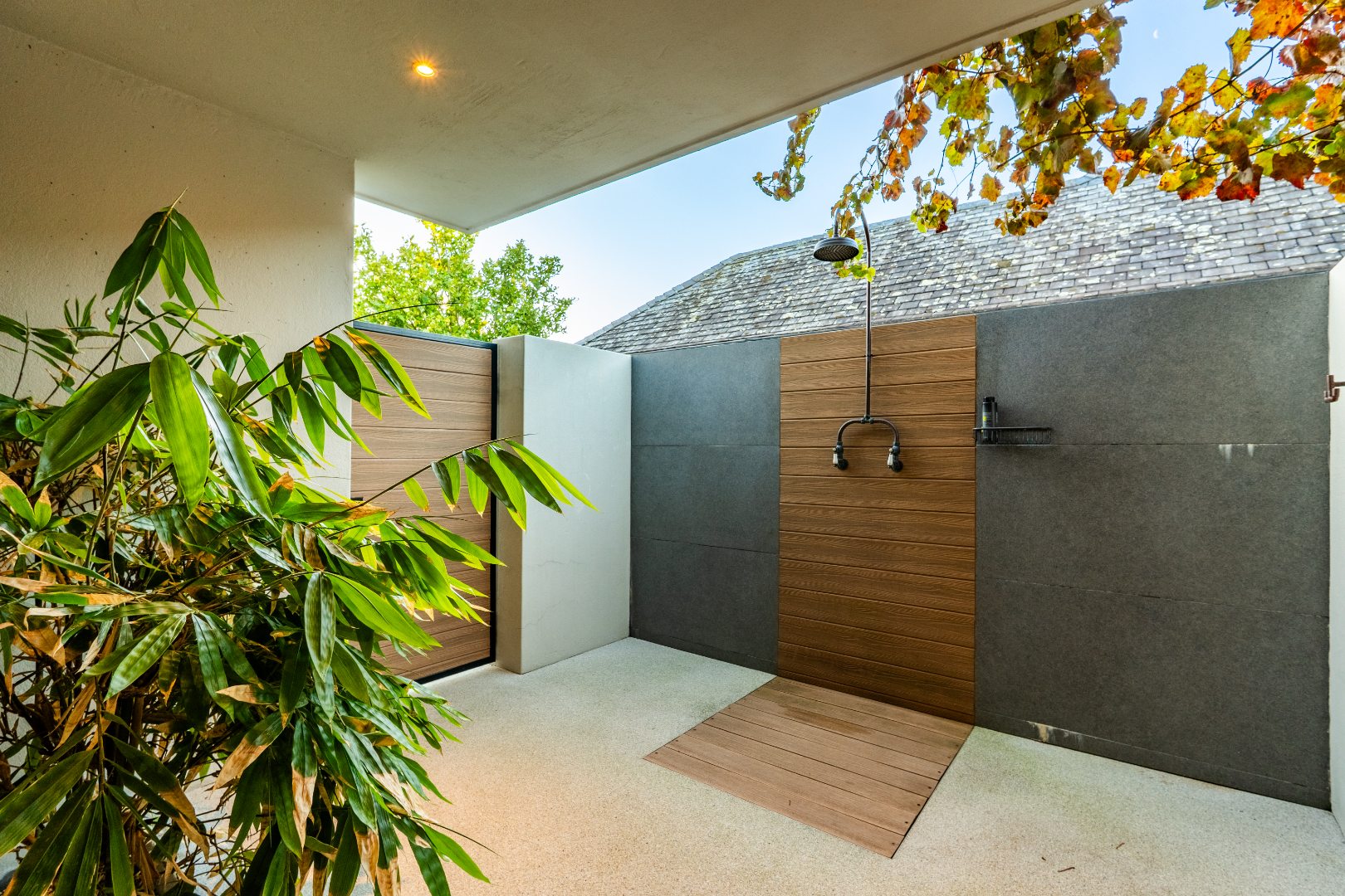 The accommodation is generous and thoughtfully laid out, offering five spacious bedrooms and four bathrooms, including three en-suite. The main suite is a private sanctuary, complete with a walk-in closet, outdoor shower, and its own sauna, creating a true retreat within the home. Additional features such as a separate flatlet and domestic quarters provide flexibility for extended family or guests.