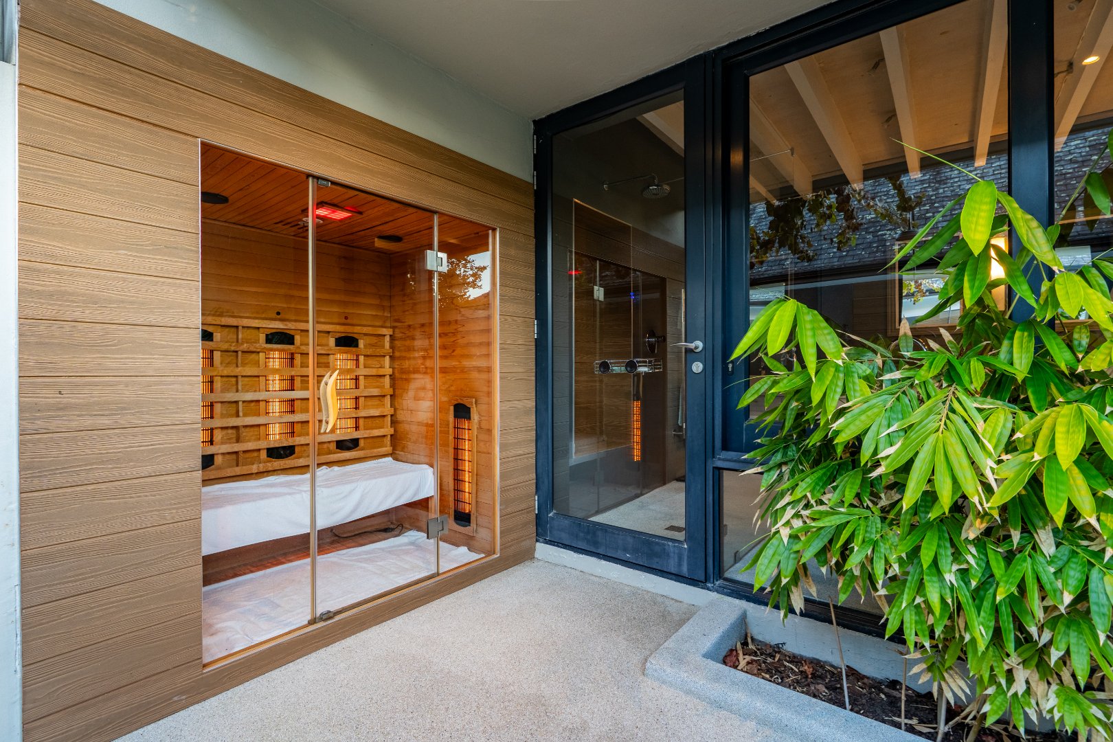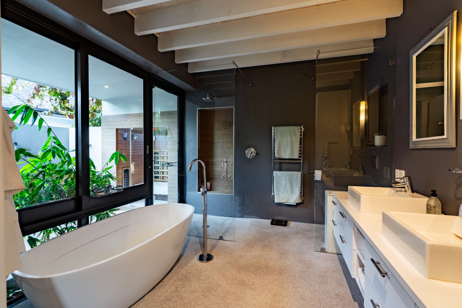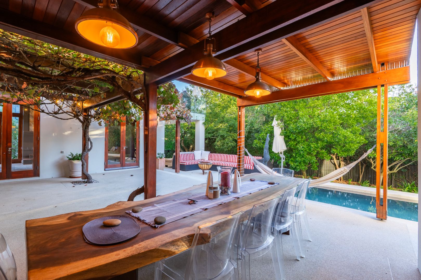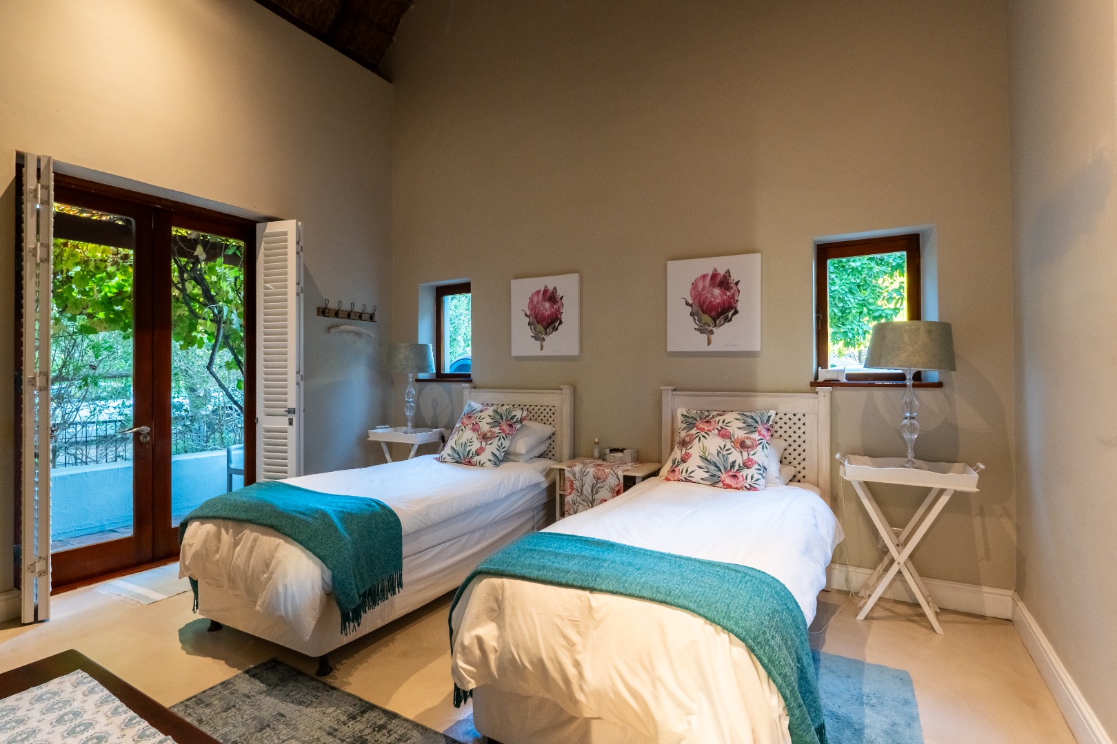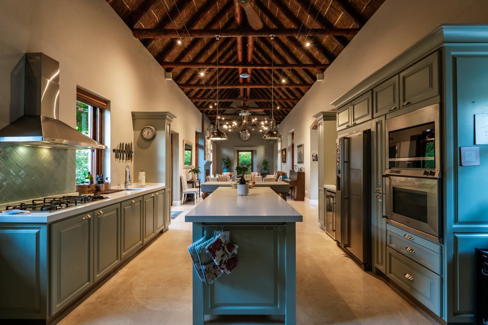 The accommodation is generous and thoughtfully laid out, offering five spacious bedrooms and four bathrooms, including three en-suite. The main suite is a private sanctuary, complete with a walk-in closet, outdoor shower, and its own sauna, creating a true retreat within the home. Additional features such as a separate flatlet and domestic quarters provide flexibility for extended family or guests.