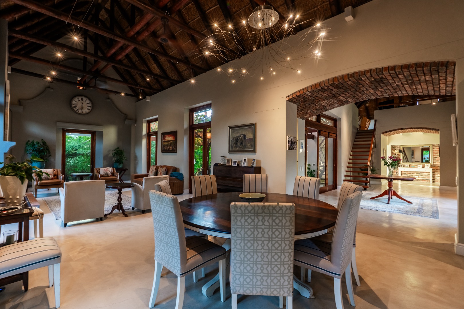 Designed with both family living and entertaining in mind, the home opens into expansive, light-filled living areas where high ceilings, elegant finishes, and natural flow create a warm yet sophisticated atmosphere. The open-plan lounge, dining area, and modern kitchen—with a separate scullery and pantry—connect seamlessly, making everyday living as comfortable as hosting guests on a grand scale. A dedicated study and TV room add to the versatility of the space, while the interiors extend beautifully to the outdoor entertainment areas.
