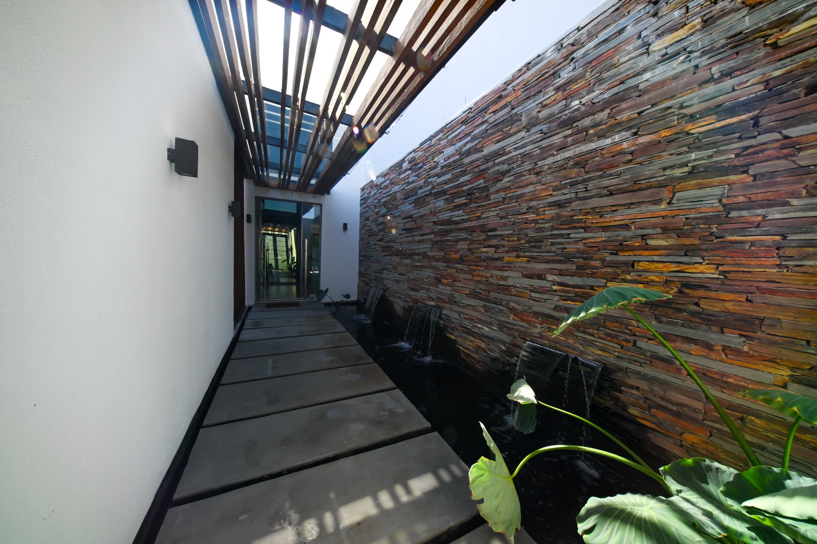 From the moment you arrive, the home makes a striking impression. Floating pavers lead you across a tranquil koi pond, framed by a calming water feature, creating a serene and memorable entrance.