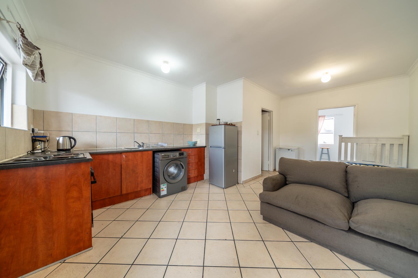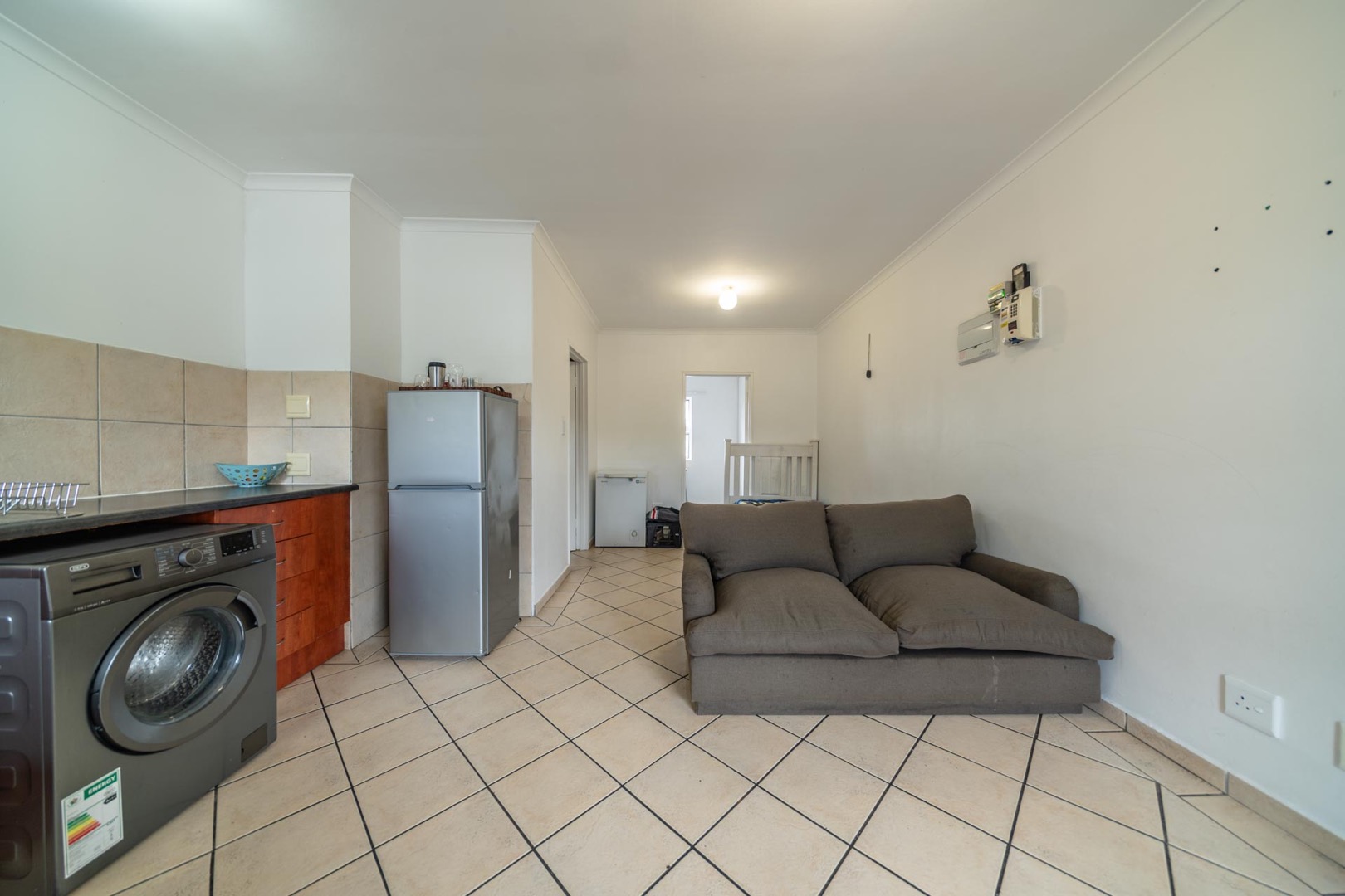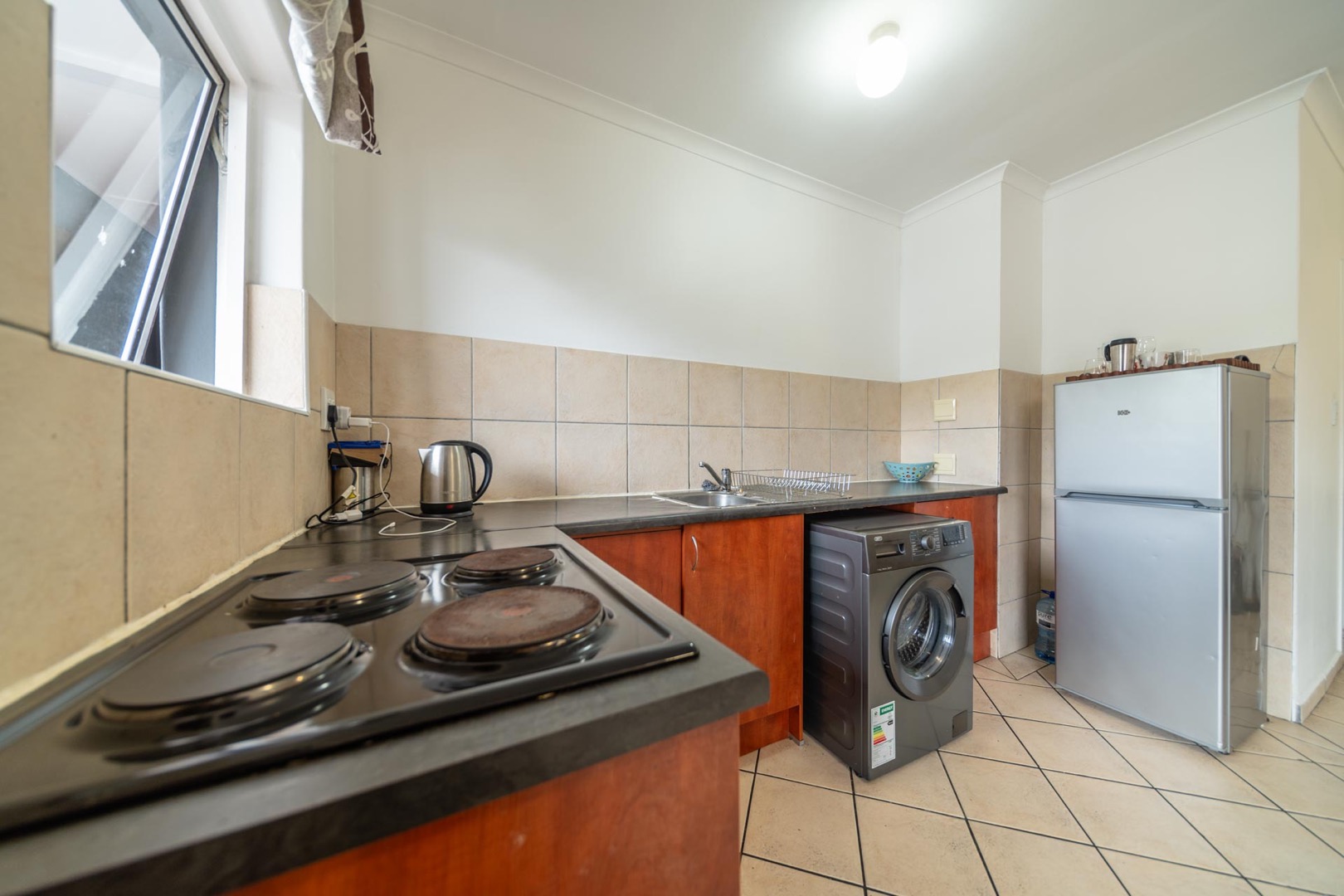 This modern 1-bedroom, 1-bathroom apartment presents an ideal living solution for students or young professionals seeking convenience and security in Stellenbosch. The thoughtfully designed open-plan layout maximizes space, seamlessly connecting the comfortable lounge area with a highly functional kitchen. The kitchen is equipped with essential amenities, including an integrated oven and hob, ample countertop space, and provisions for a washing machine and refrigerator, ensuring a practical and efficient culinary experience.