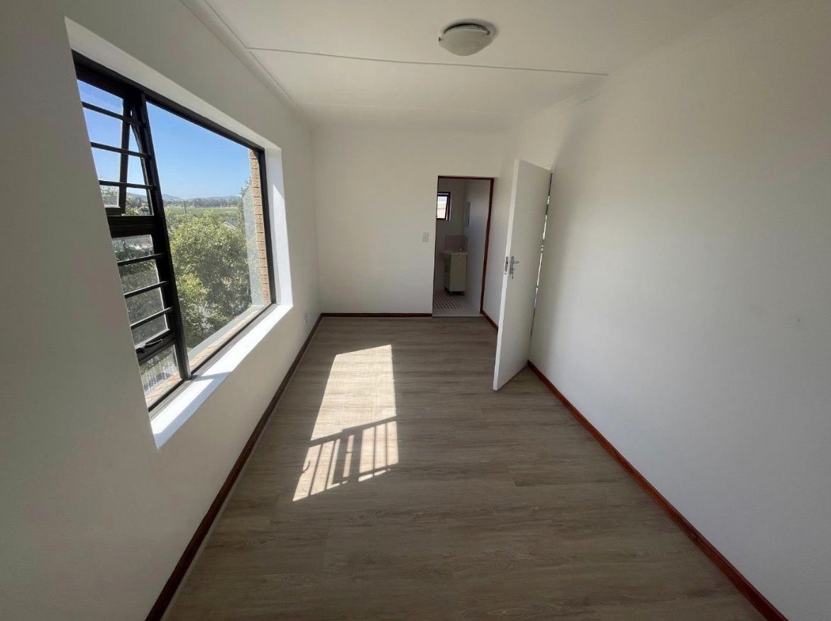 Discover modern living in this inviting 1-bedroom, 1-bathroom rental property located in Jamestown, Stellenbosch. This newly renovated unit features an open-plan layout, seamlessly connecting the lounge and a contemporary kitchen. The kitchen is well-appointed with sleek grey cabinetry, a freestanding stove, and a stylish tile backsplash, complemented by modern wood-look flooring throughout the living areas. The interior boasts bright white walls, an exposed brick accent wall, and a distinctive wooden slatted ceiling, adding character and warmth. Designed for a comfortable lifestyle, the property includes a private balcony, perfect for enjoying the scenic surroundings. Security is enhanced with a robust security gate at the entrance, providing peace of mind for residents. This lock-up-and-go unit is ideal for professionals or individuals seeking a low-maintenance home. Situated in the charming suburb of Jamestown, Stellenbosch, this property offers the unique appeal of being nestled within a mountain and winelands setting. Enjoy the tranquility and natural beauty of the area, with convenient access to local amenities. Key Features: * 1 Bedroom, 1 Bathroom * Modern Open-Plan Living * Contemporary Kitchen with Balcony Access * Exposed Brick Accent Wall * Wooden Slatted Ceiling * Security Gate * Paved Exterior * Located in Winelands & Mountain Area