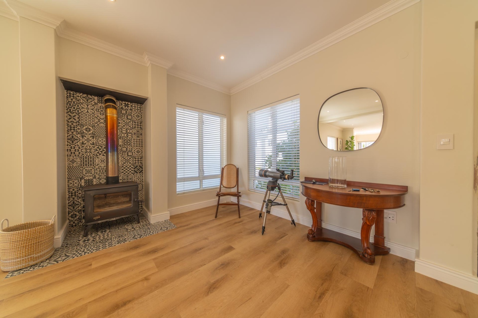This beautifully designed 3-bedroom, 2.5-bathroom home offers stylish, comfortable living in a peaceful and secure estate just outside Stellenbosch. Ideal for families or professionals, the home features a spacious open-plan layout with a cosy fireplace for winter evenings, an indoor braai area for year-round entertaining, and a private swimming pool for summer days.