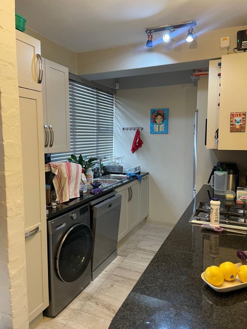 Discover this modern 1-bedroom, 1-bathroom furnished apartment, perfectly situated in a vibrant complex in Stellenbosch Central. Spanning 52 square meters, this thoughtfully designed unit offers a contemporary living experience. The sleek kitchen is a highlight, featuring integrated appliances including a washing machine, dishwasher, and gas hob, complemented by stylish light grey cabinetry and dark granite countertops. The open-plan layout seamlessly connects the kitchen to the dining and living areas, all adorned with modern tiled flooring and illuminated by ample natural light.