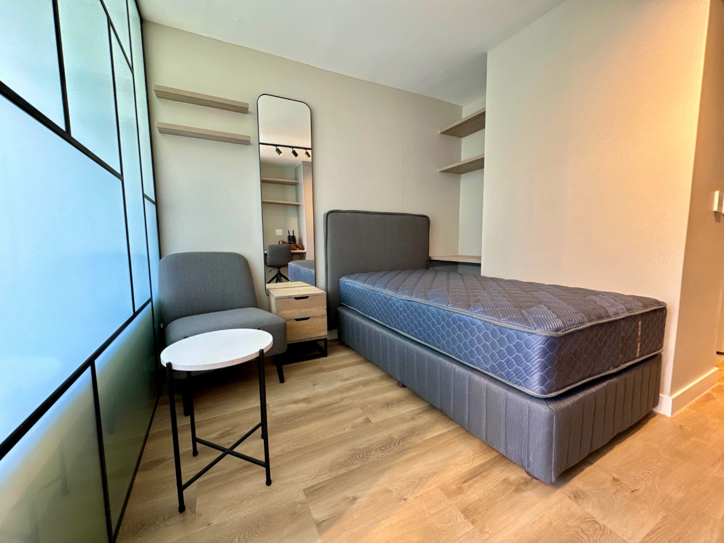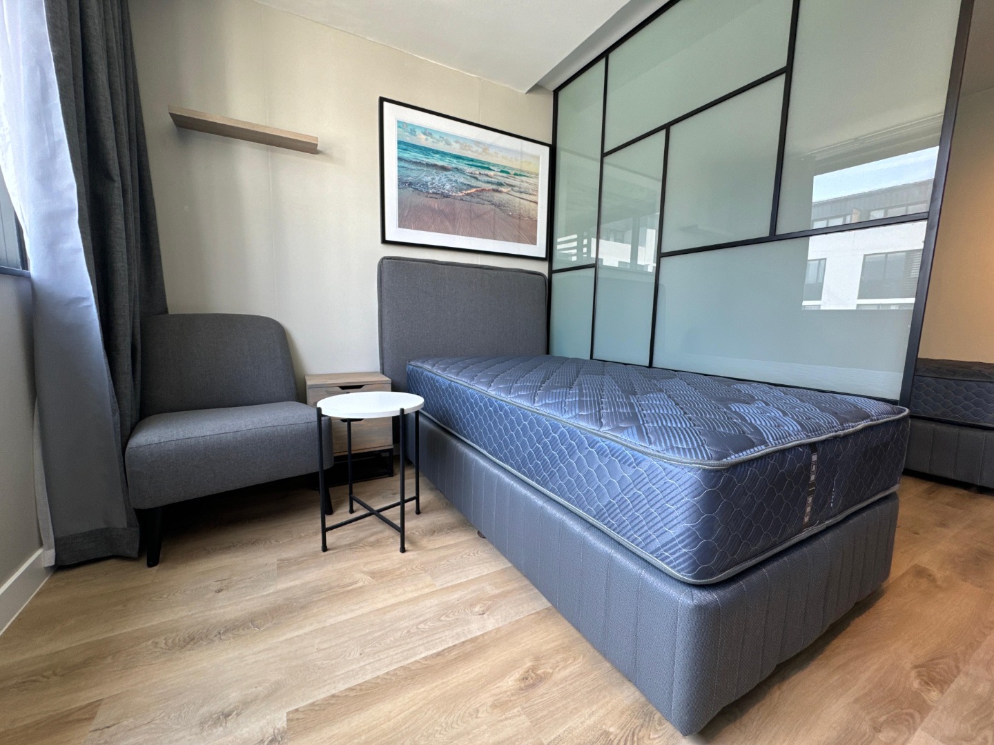 bedrooms divided by a glass pane and one bathroom, meticulously crafted to
