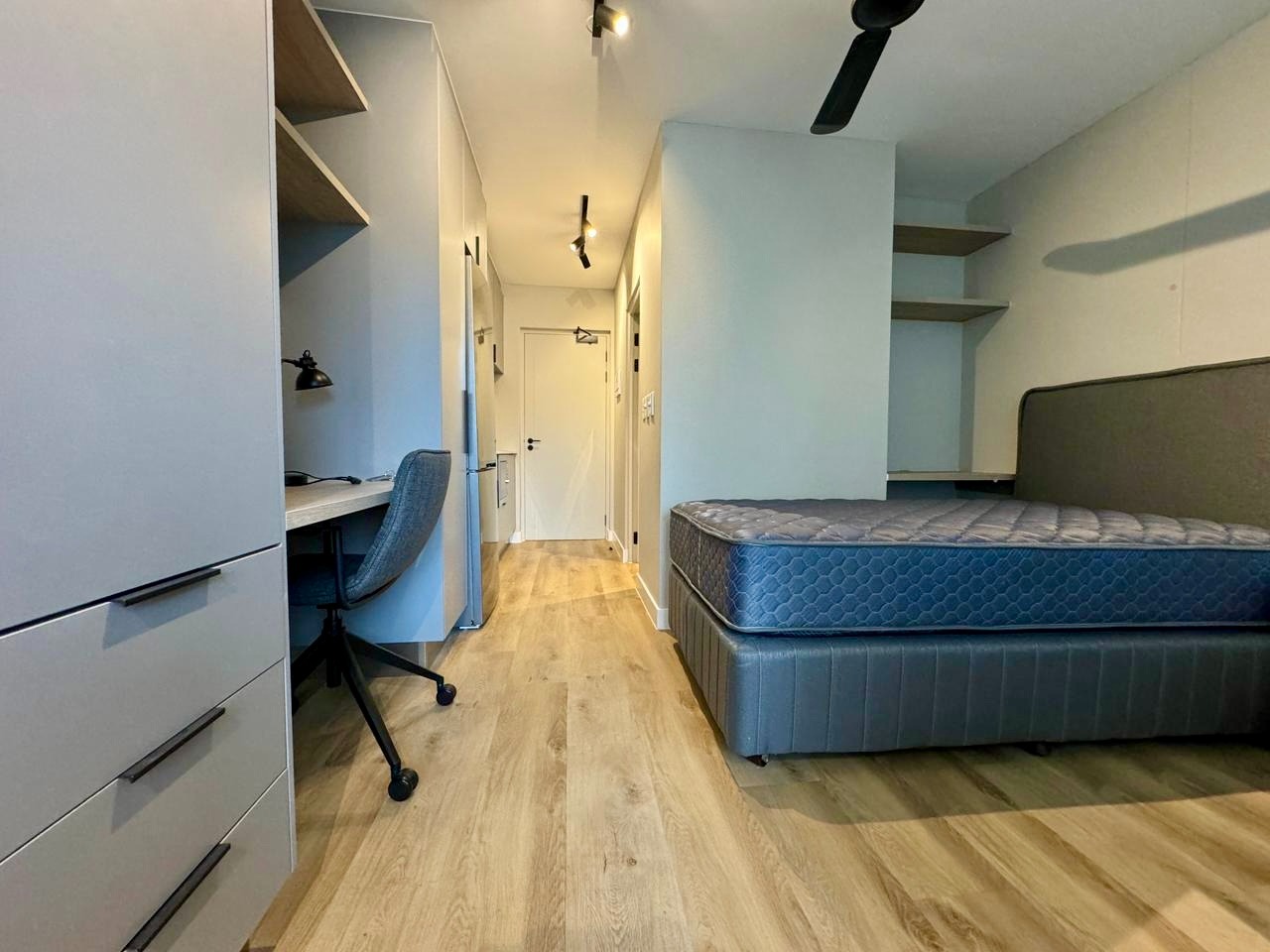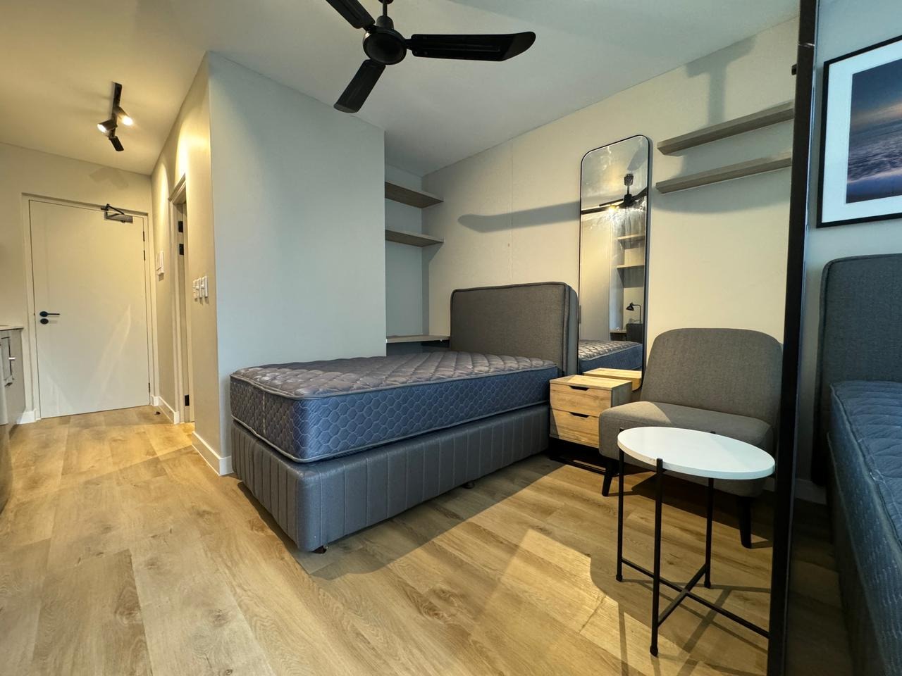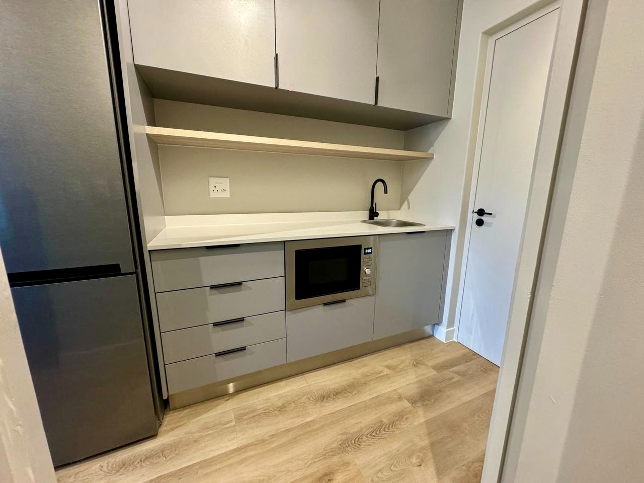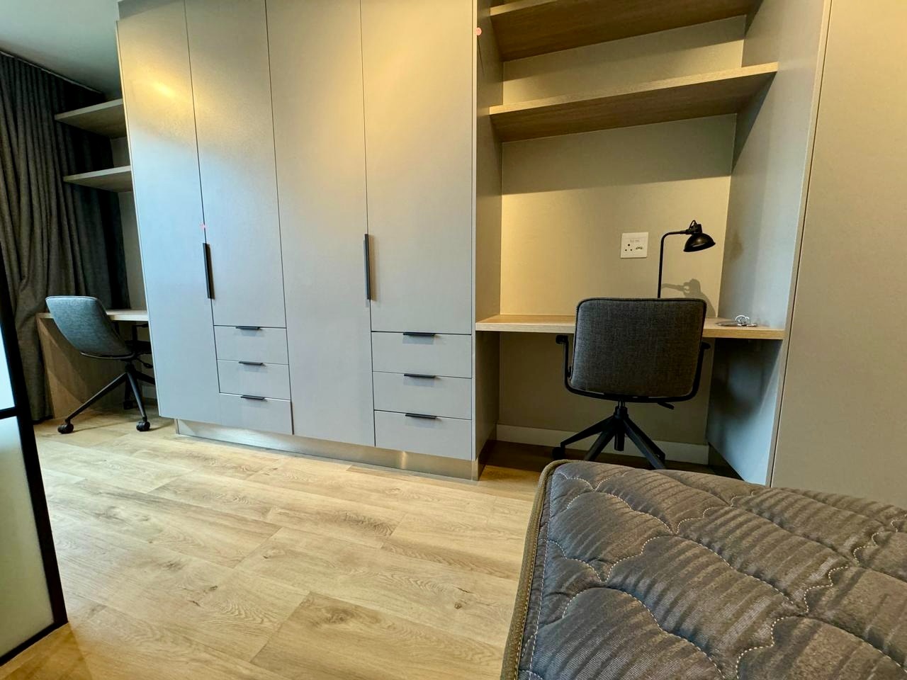 Discover modern student living in this well-appointed open plan 2-bedroom, 1-bathroom rental unit located in vibrant Stellenbosch Central. Spanning 30 square meters, this contemporary space is designed for efficiency and comfort. The building, 'THE ONE', presents a stylish facade with modern architecture, featuring clean lines and a welcoming glass-fronted entrance, setting the tone for sophisticated urban living.